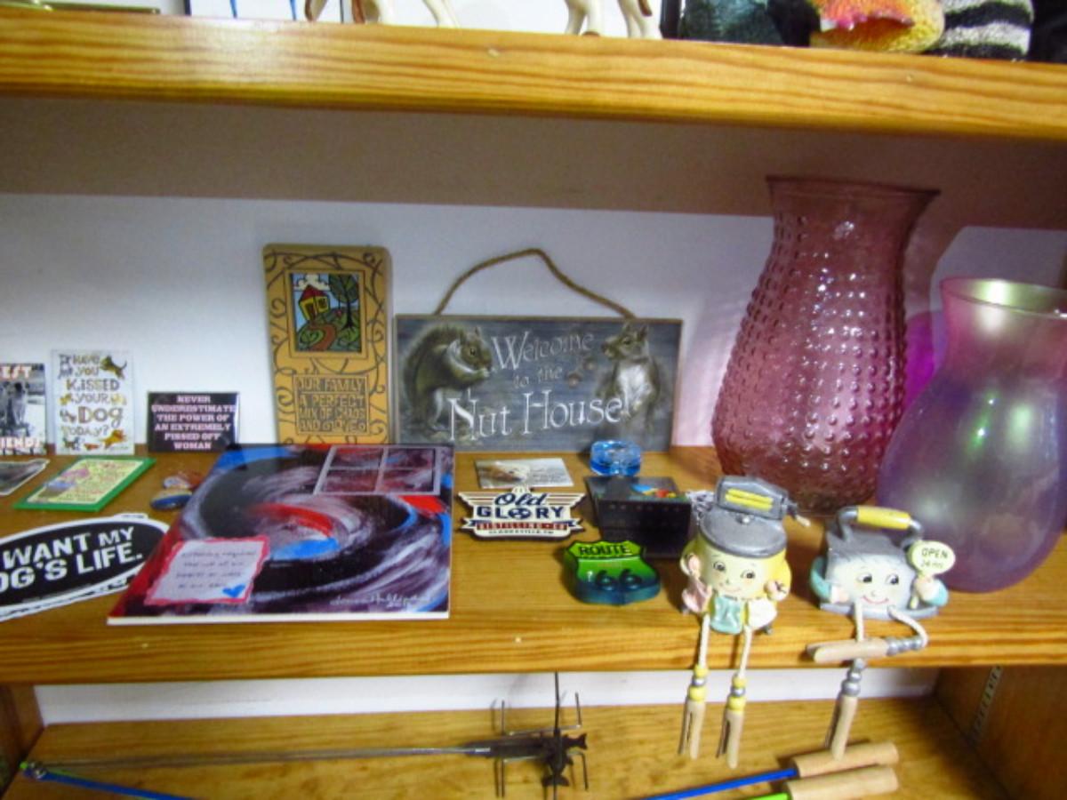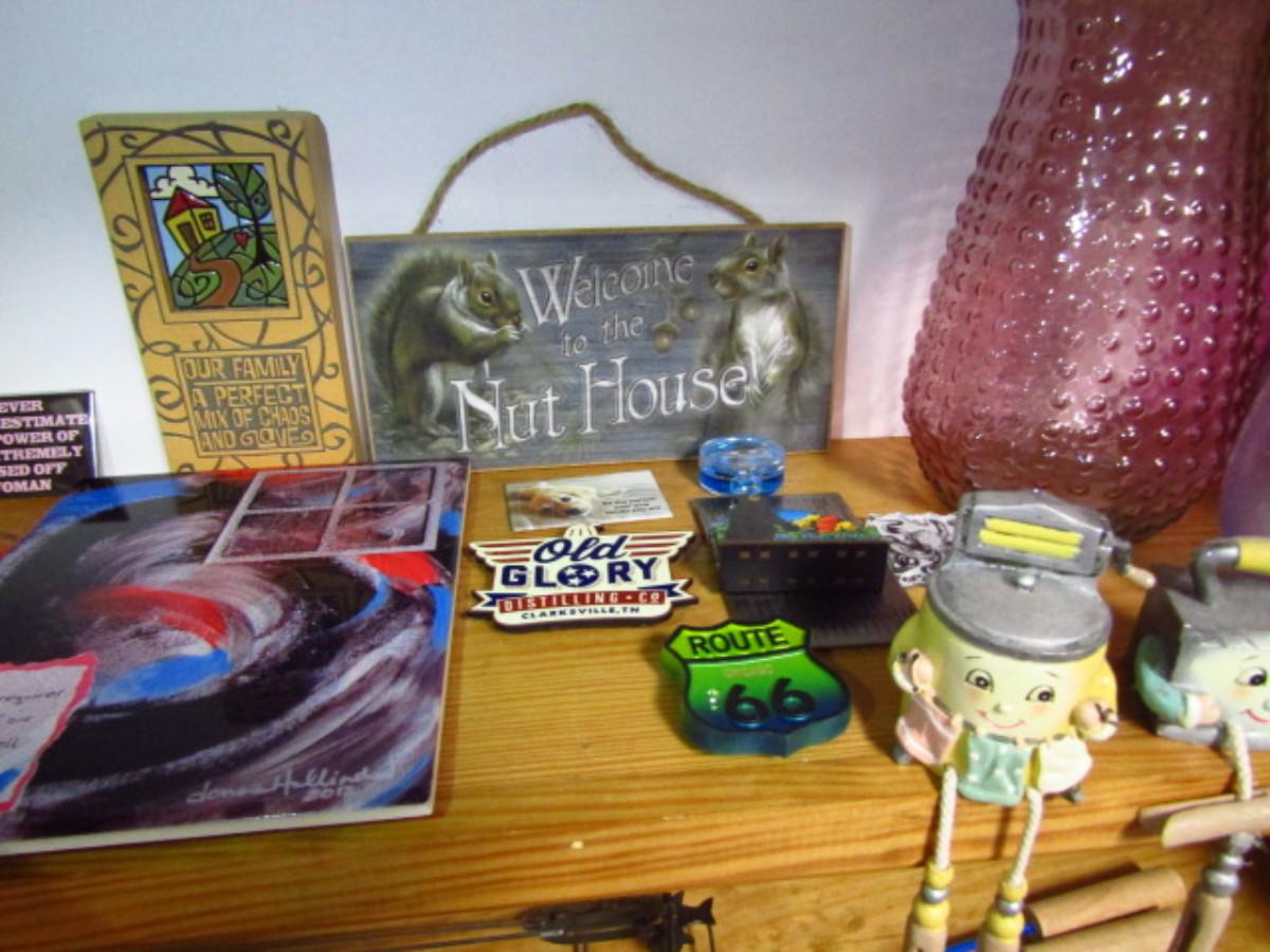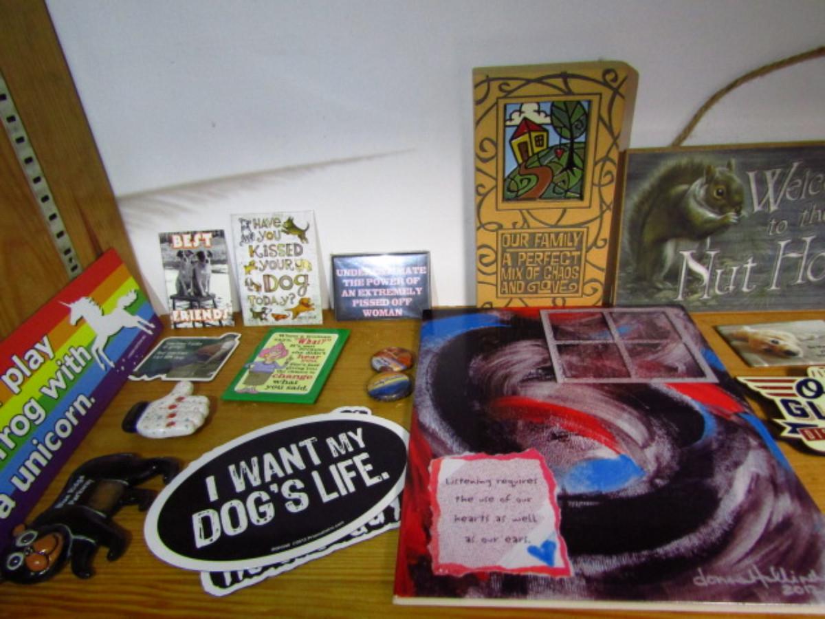 Assortment of Home Decor- Glass Vases, Magnets, Shelf-Sitters, Witty Signs, etc.