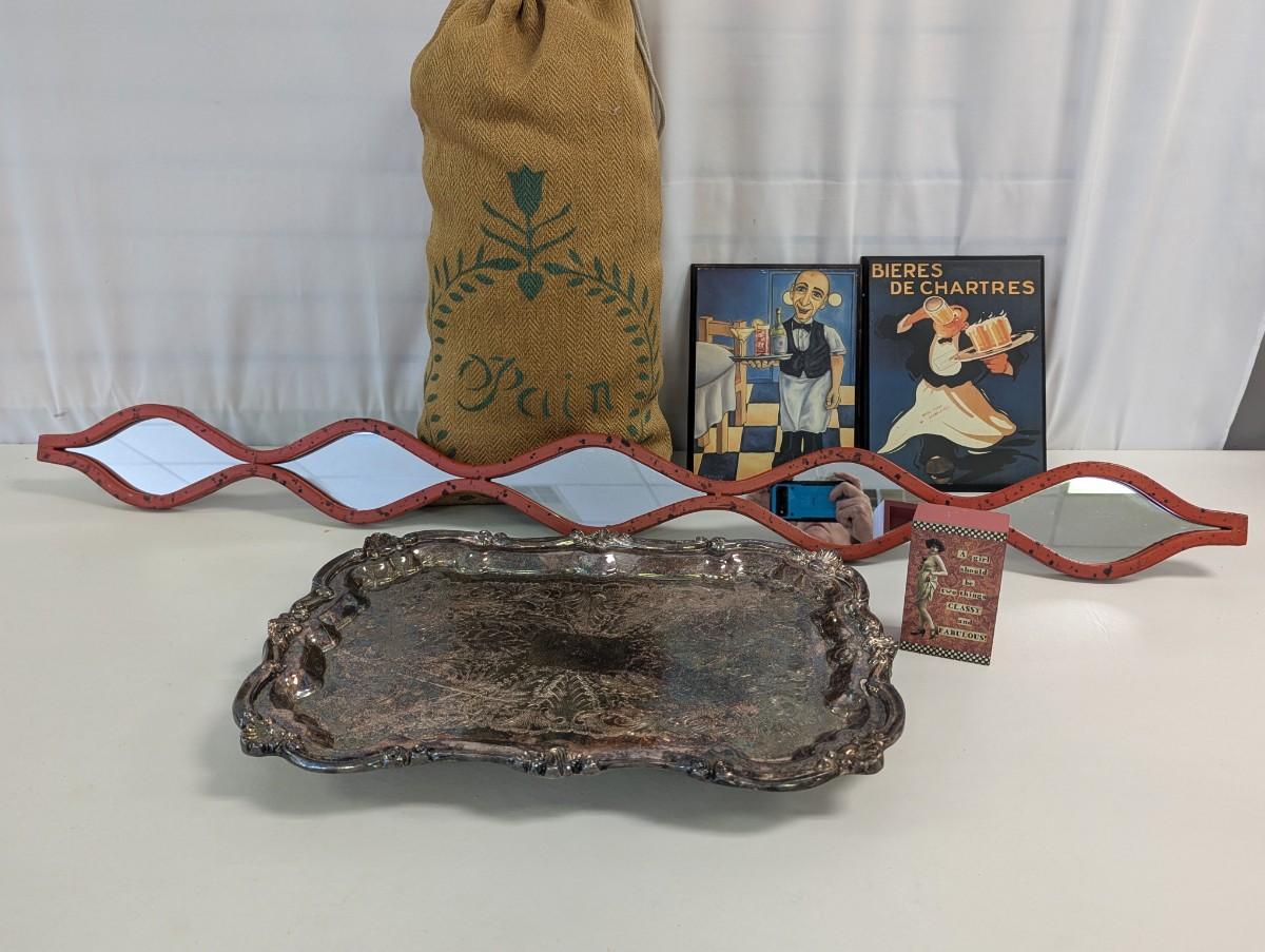 Assortment Of Home Decor Decoupage Lithographic Waiter Wall Decor Mirror & Tray