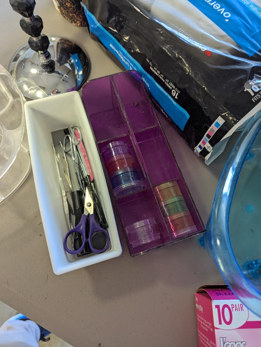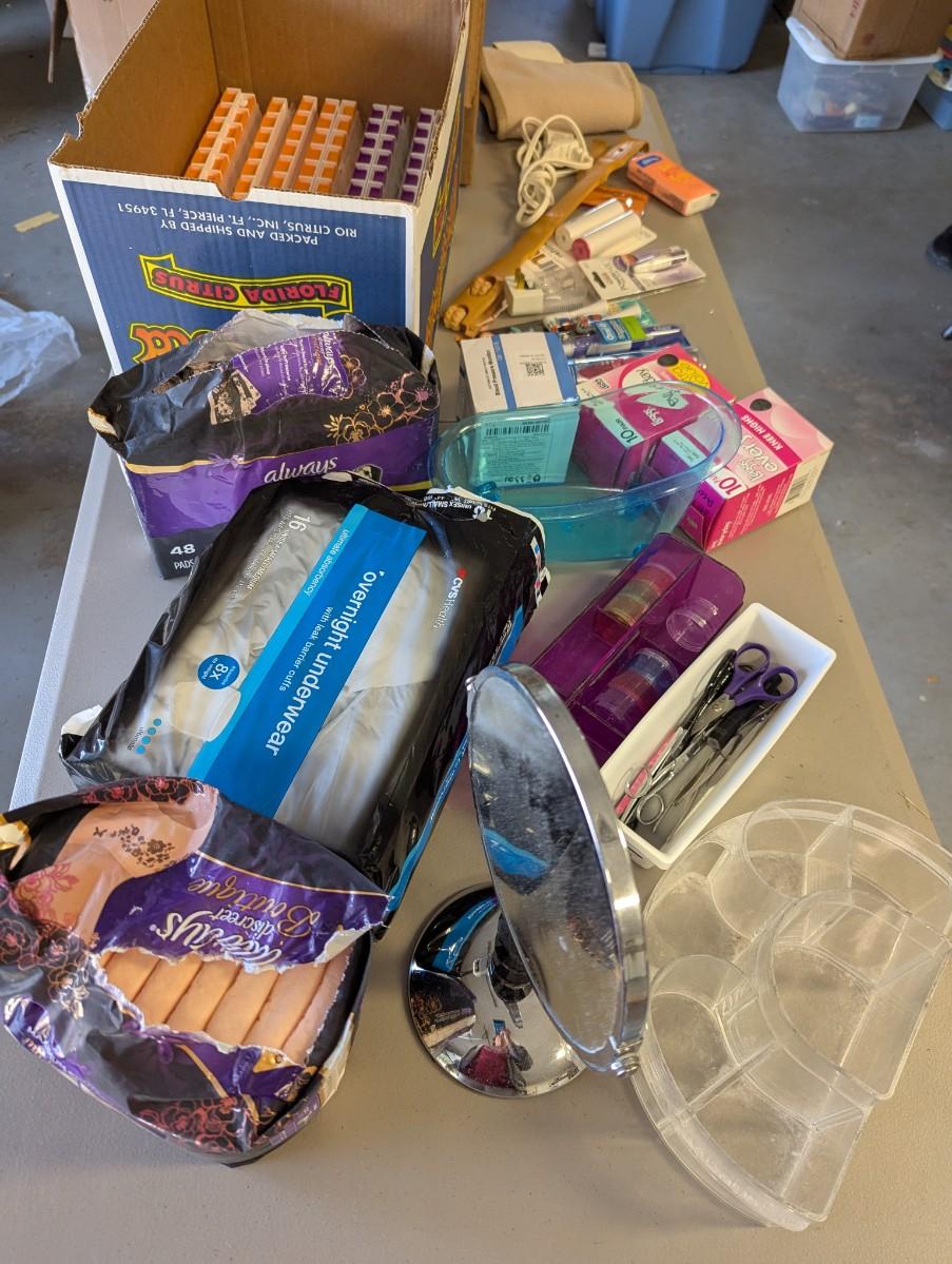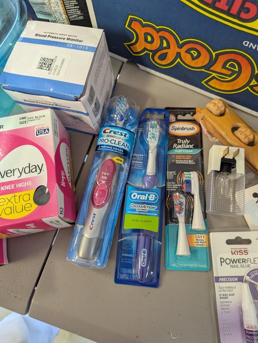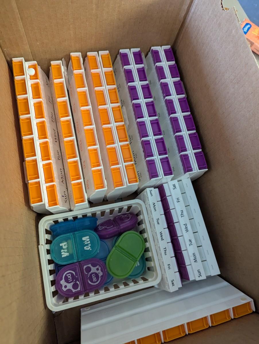Assortment Of Home Health Care Items Pill Boxes Compact Bags Tooth Brushes