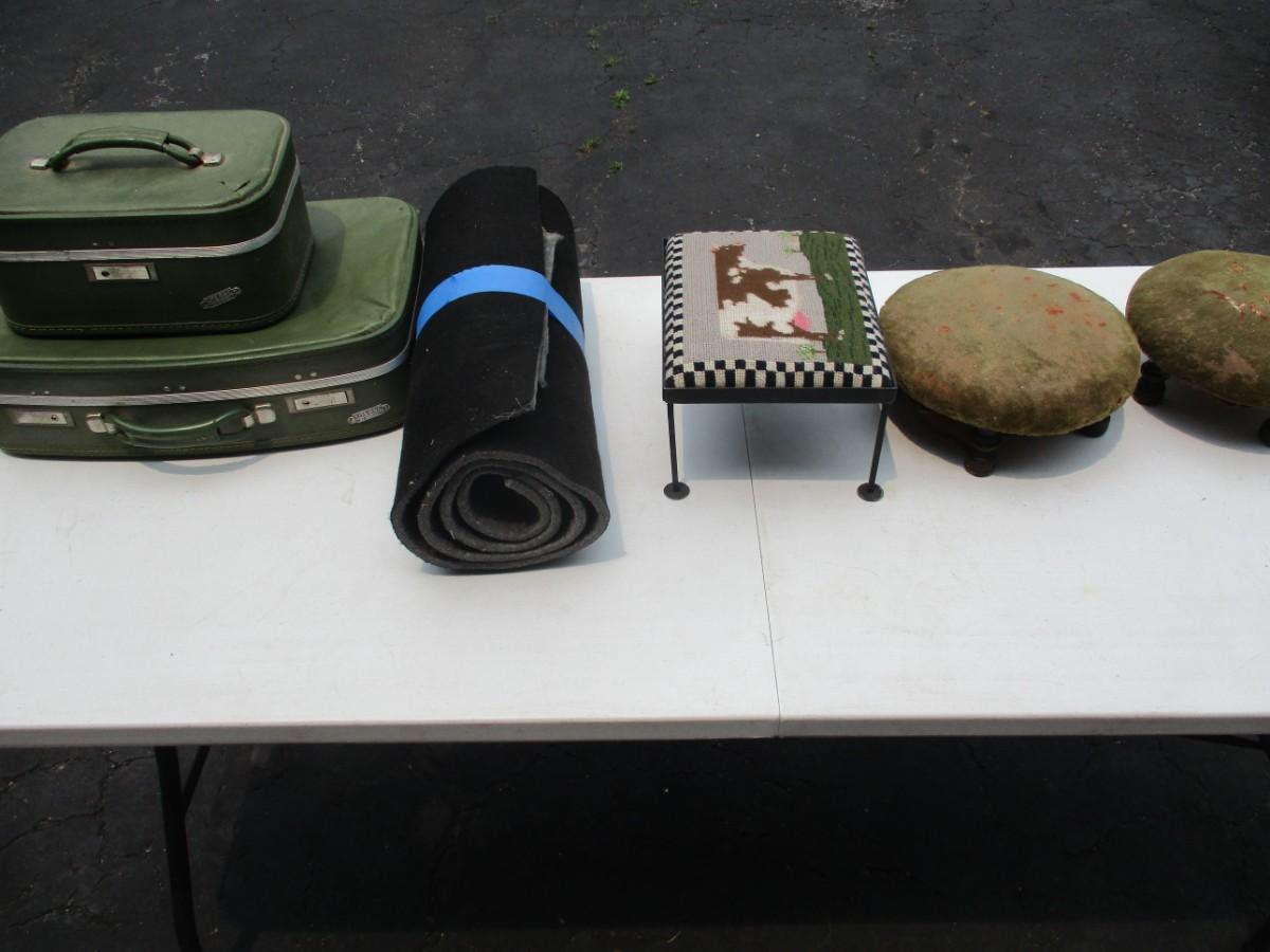 Assortment Of Household Items Vintage Foot Stools Suitcases