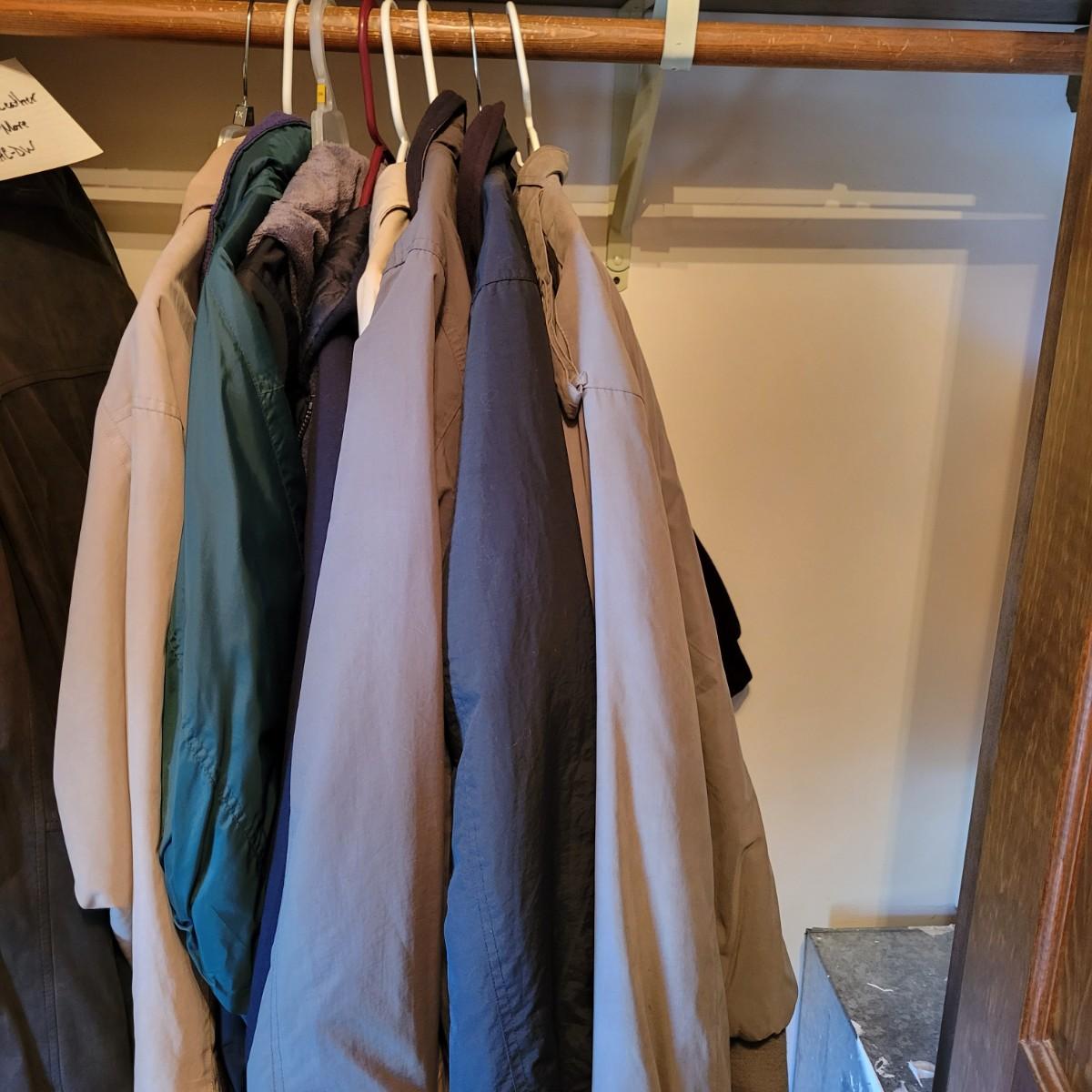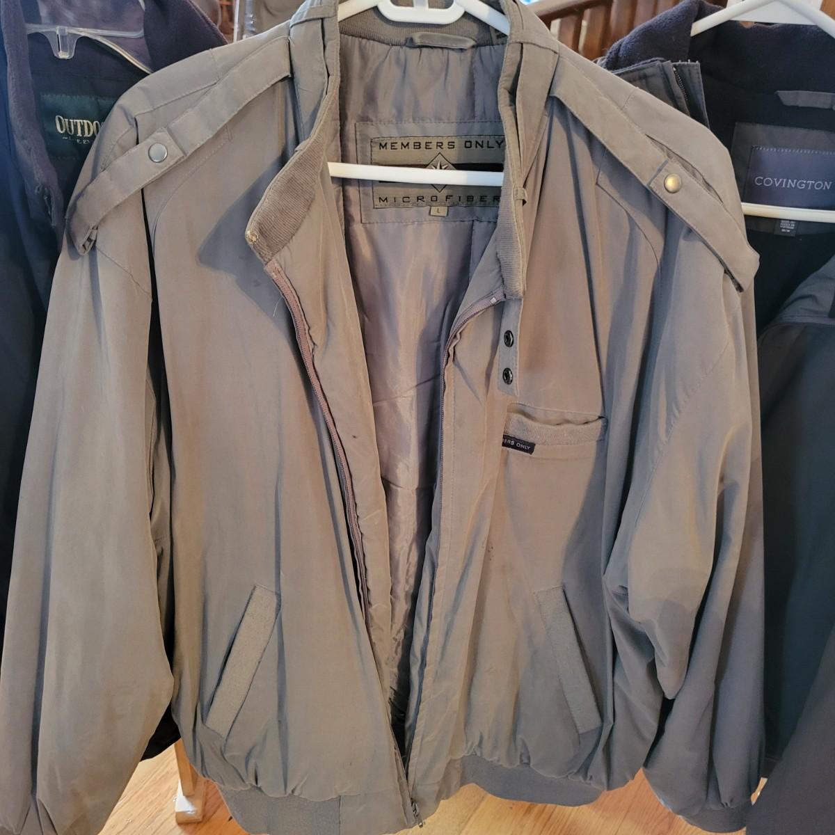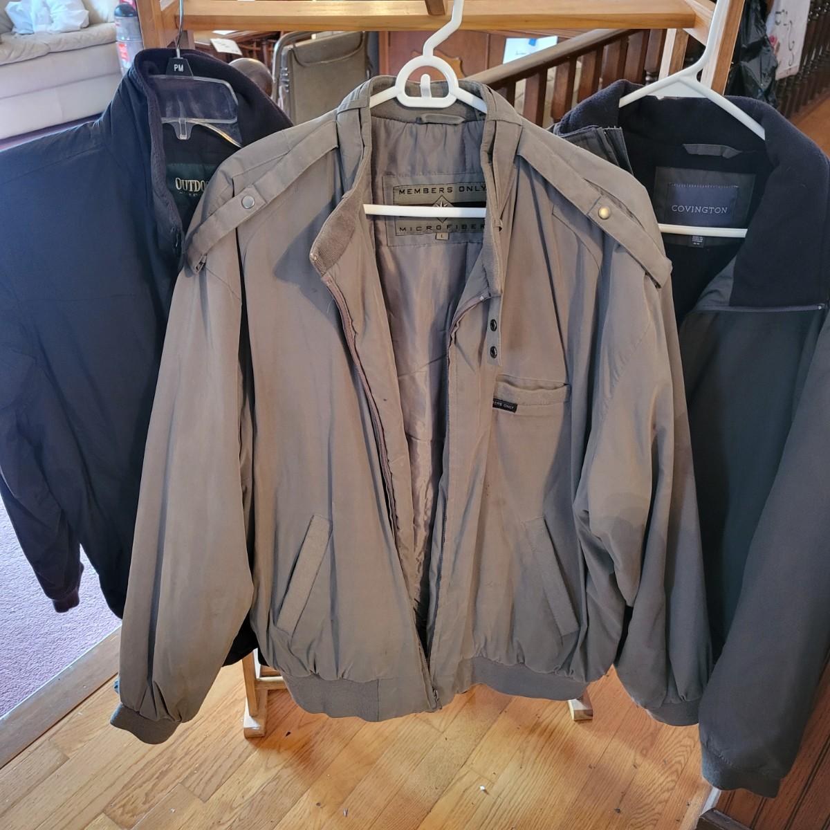 A collection of men's insulated jackets, most are sz M, but there is a random xl. Manufacturers include Members Only, Covington, WeatherTamer and more. Local pickup only