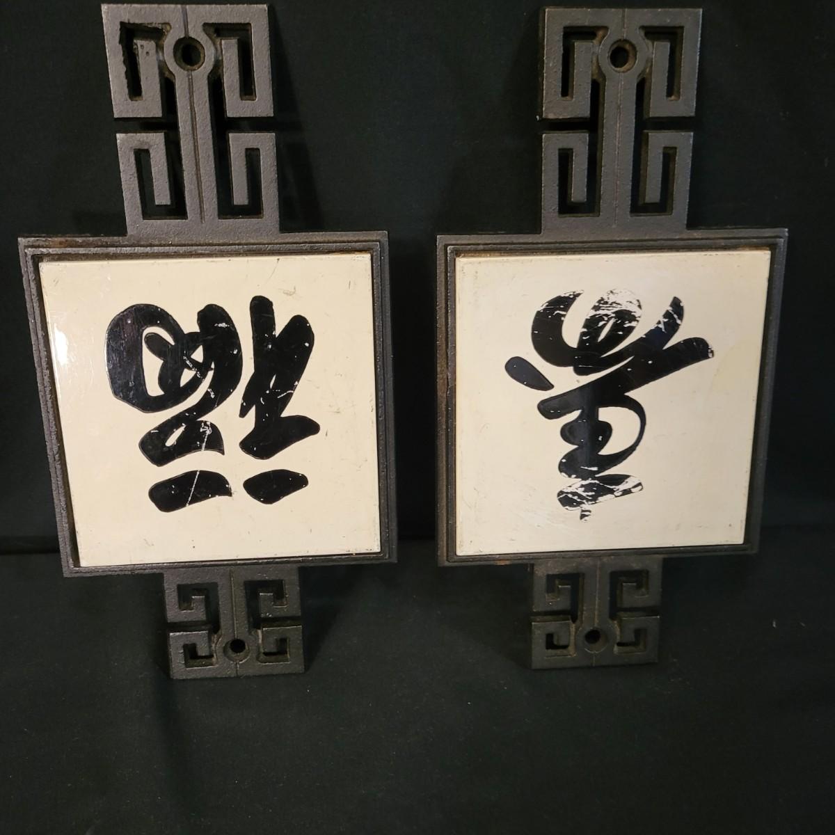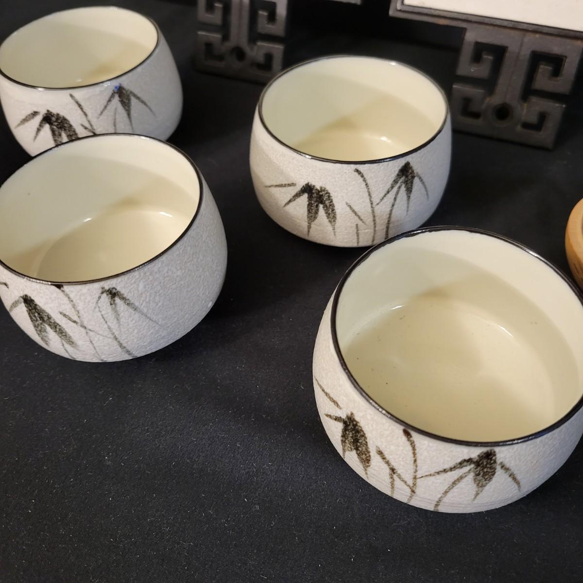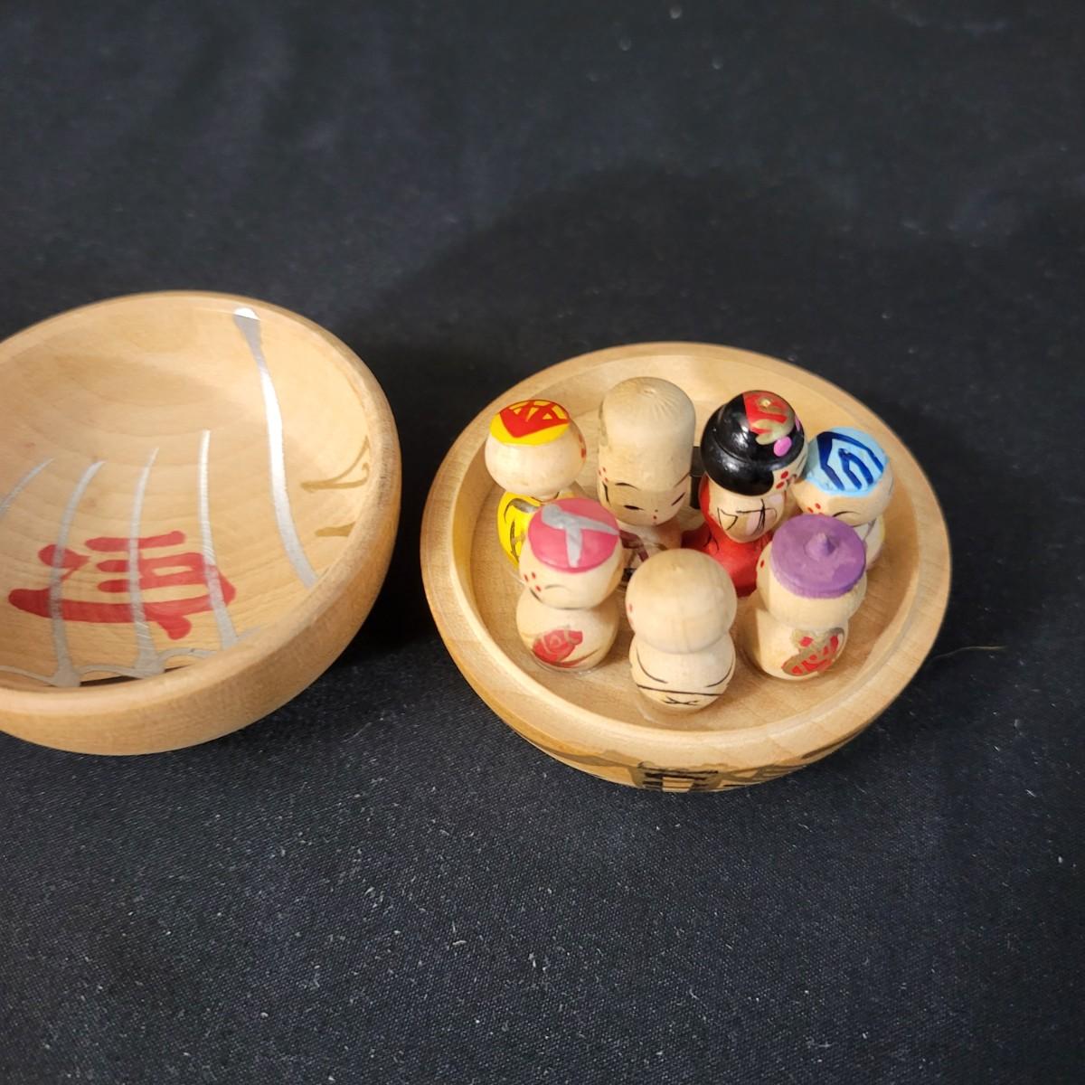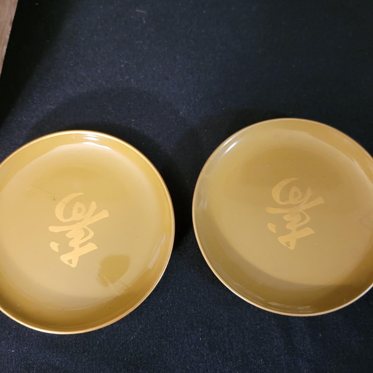 A collection of items manufactured in Japan that are in good condition with no notable damage. This lot includes four glazed ceramic tea cups, two Trivets with iron hangers, two small plates made of plastic and a small wooden ball that opens to reveal a small group of painted figurines. Trivets measure approximately 9.5" x 5" Shipping available