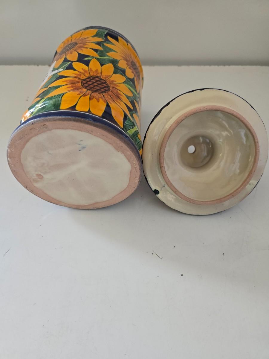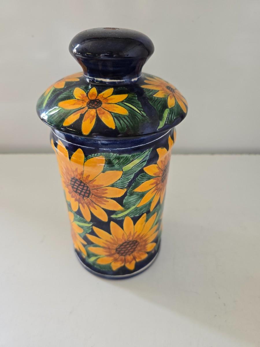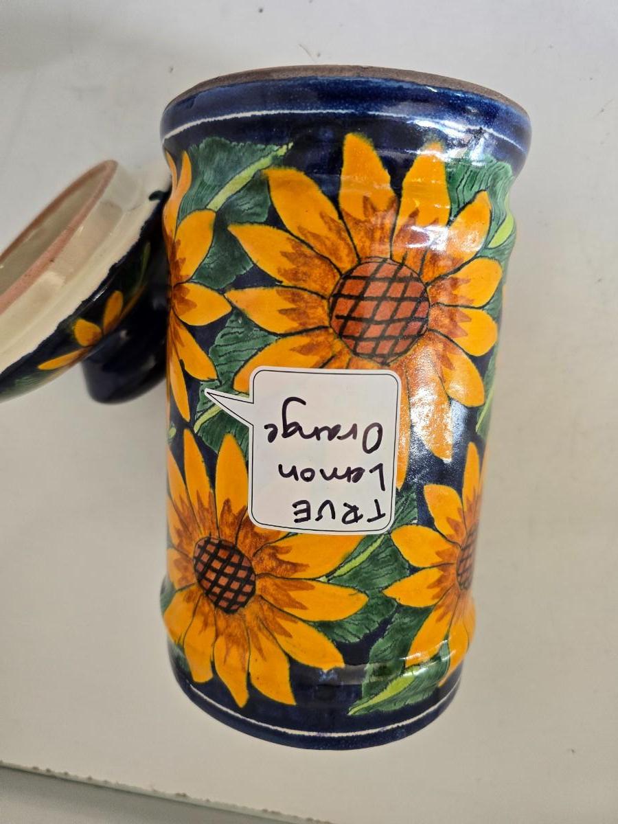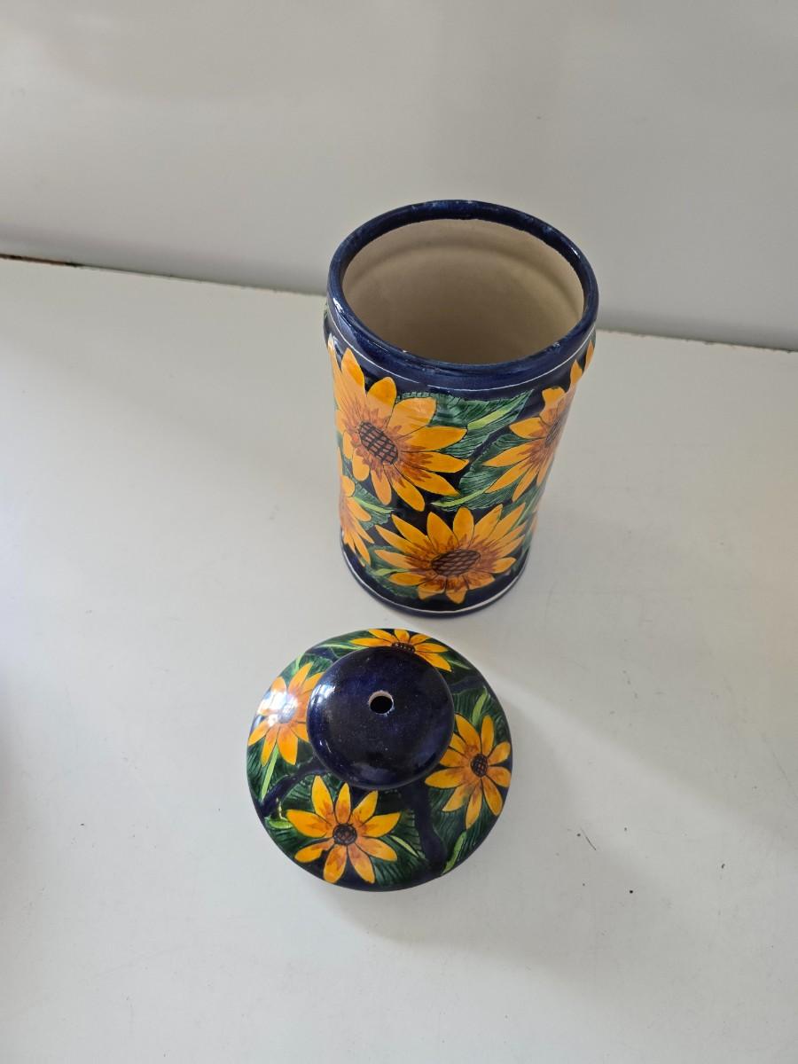 1 ceramic sunflower canister – bold hand-painted floral design, perfect for counter display or utensil storage