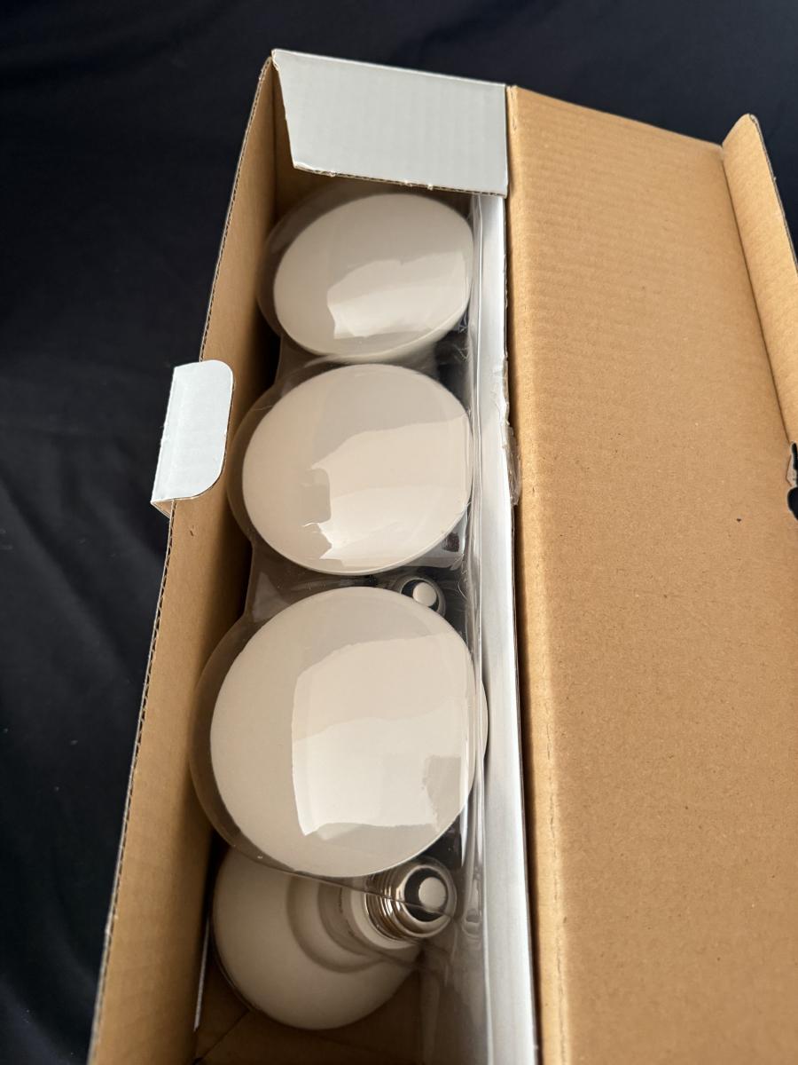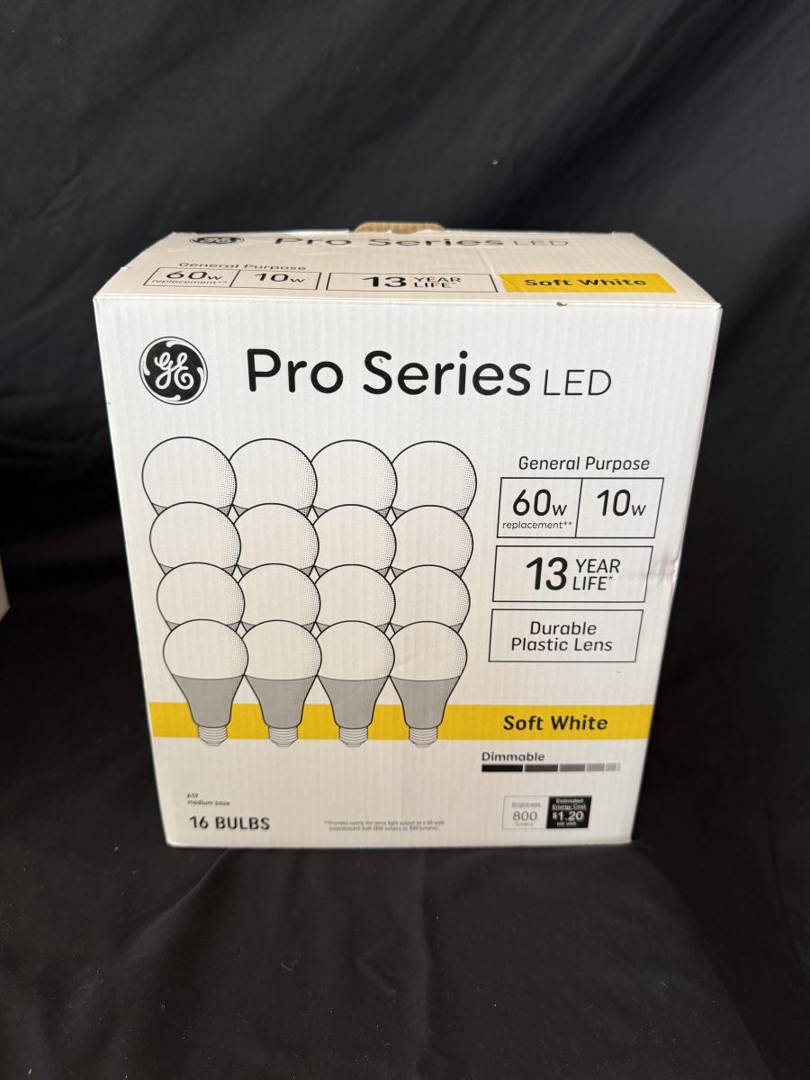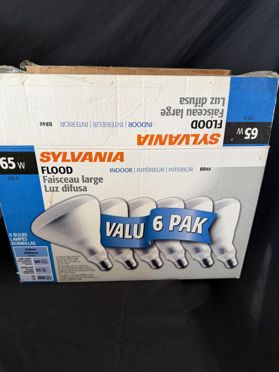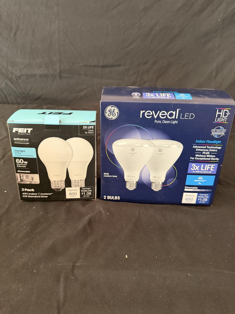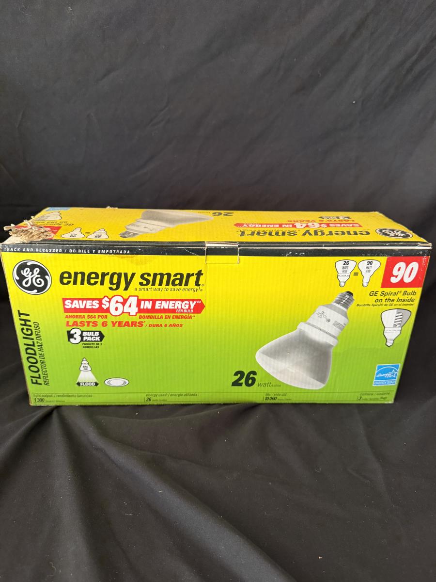 Lot contains an assortment of light bulbs including LED, CFL & Incandescent. Bulbs are floodlights, globe bulbs, heat lamp and more.