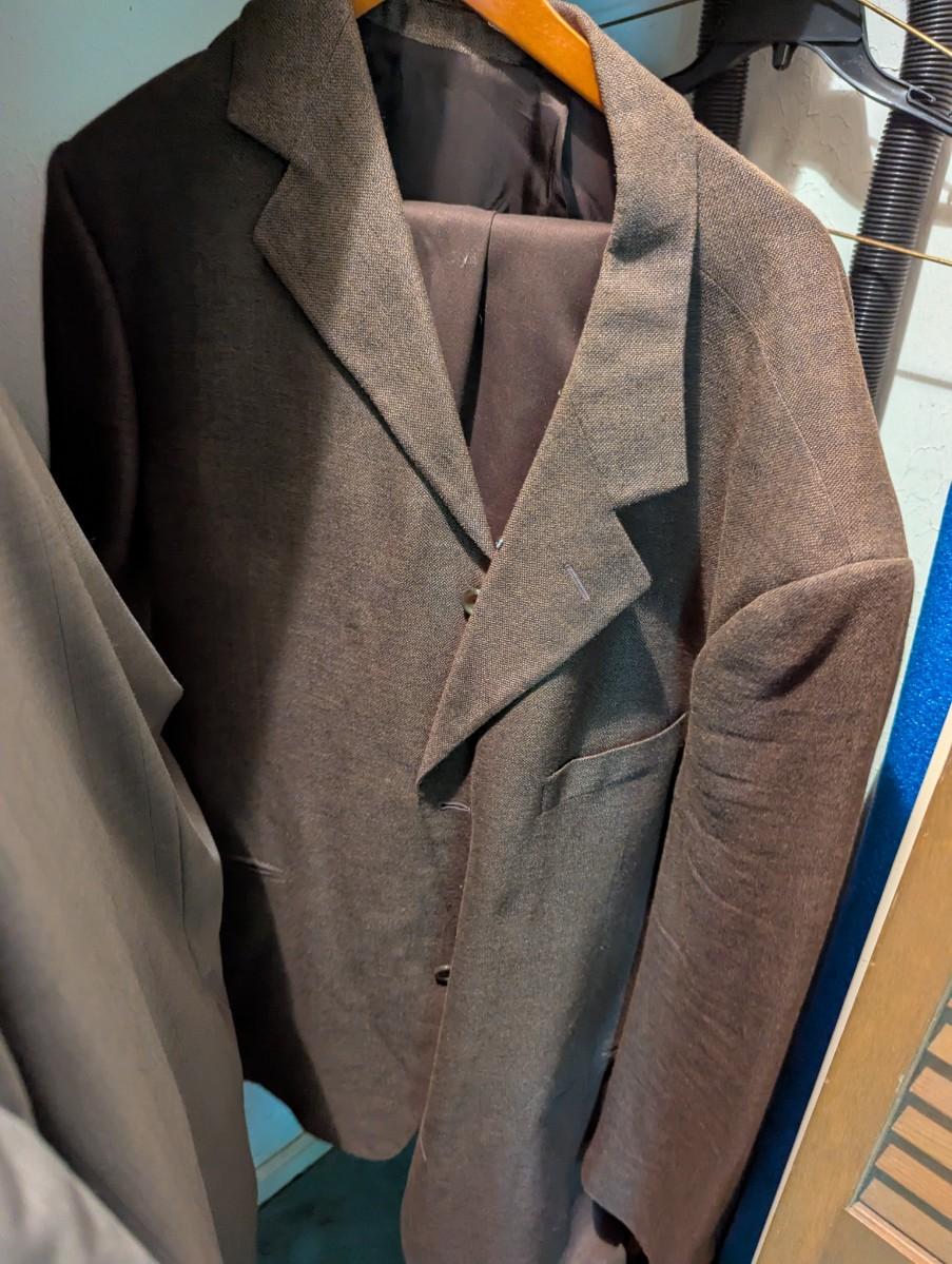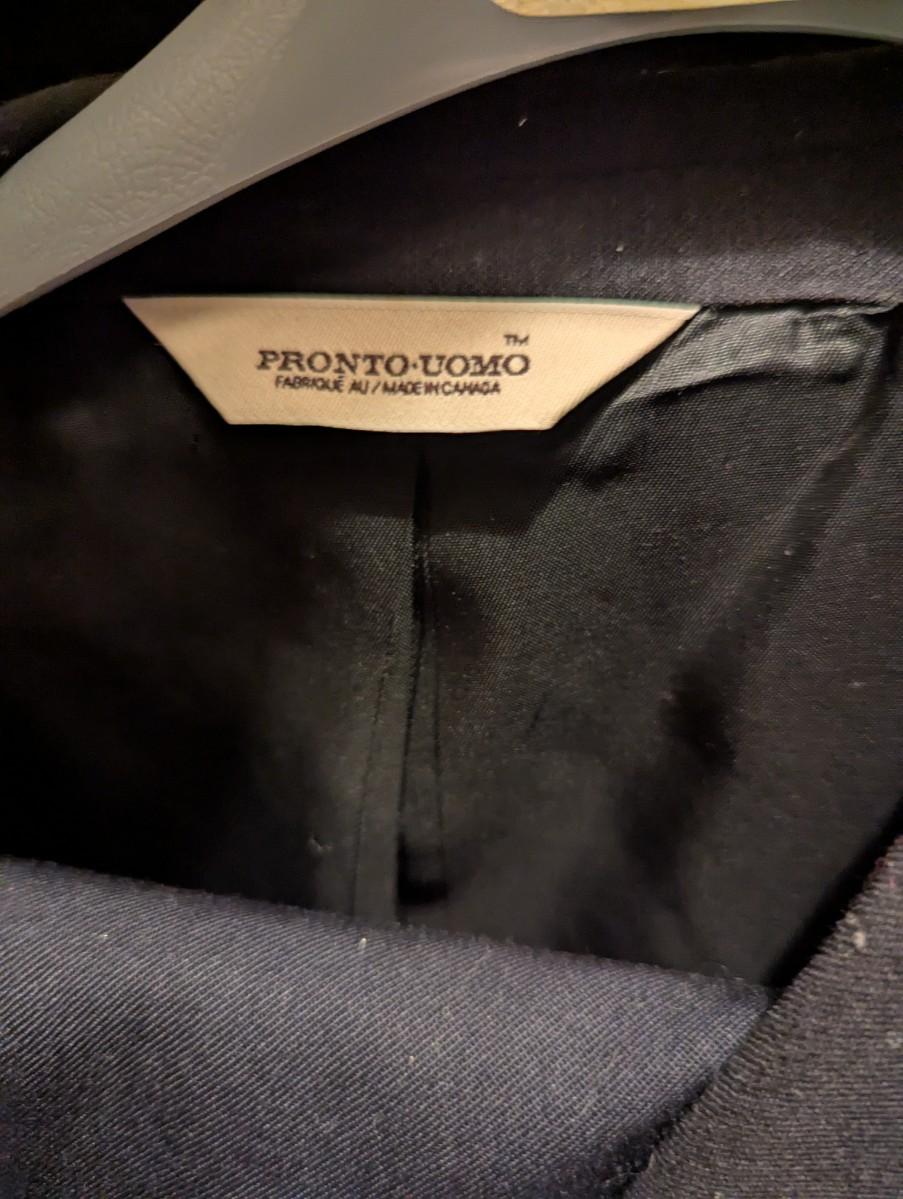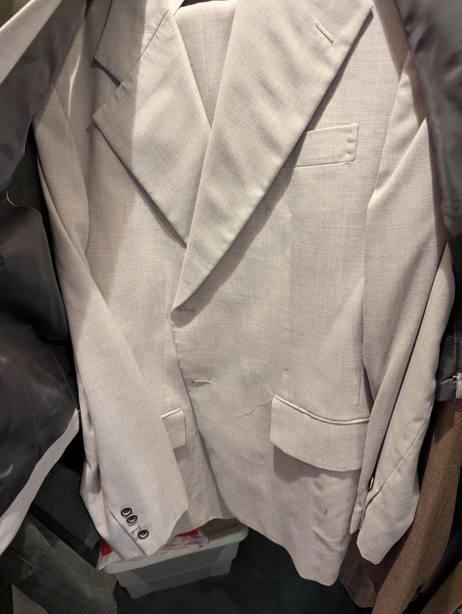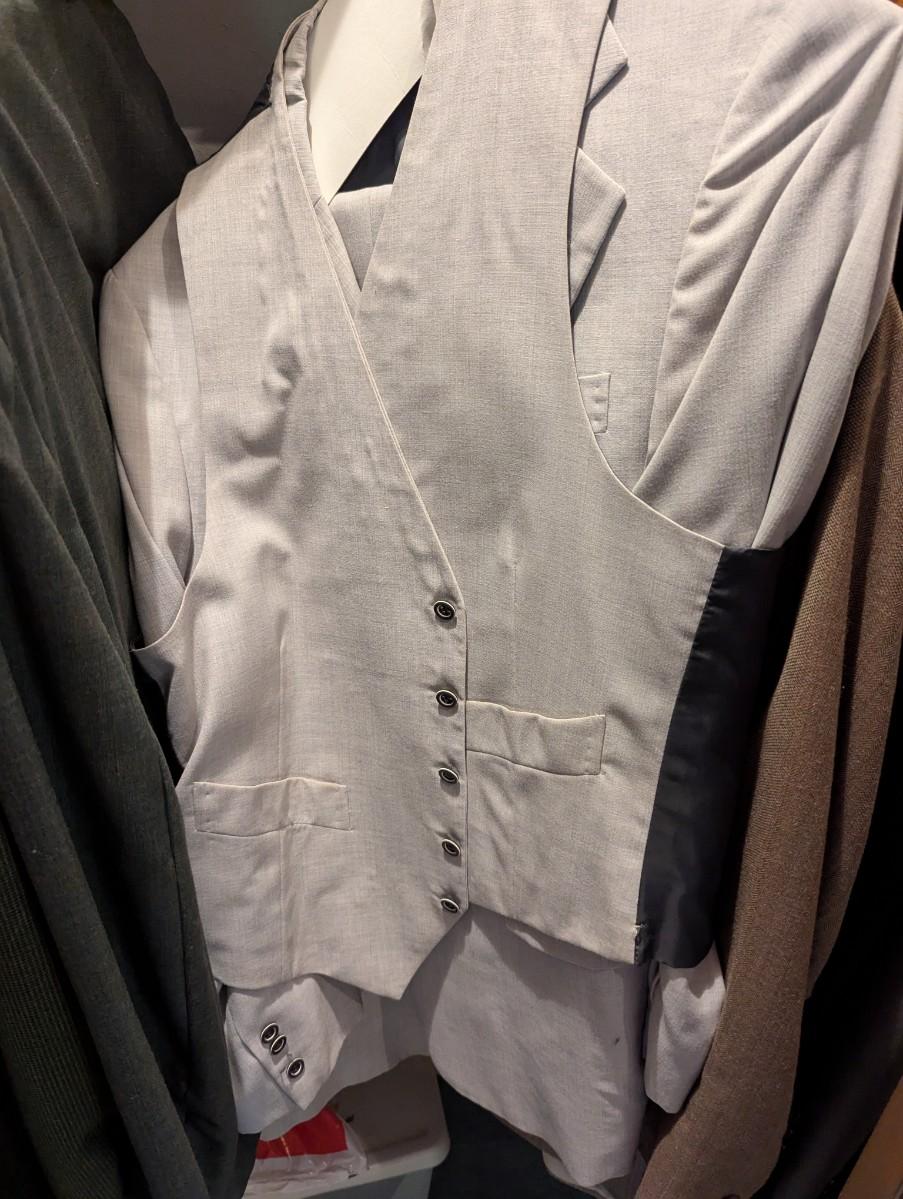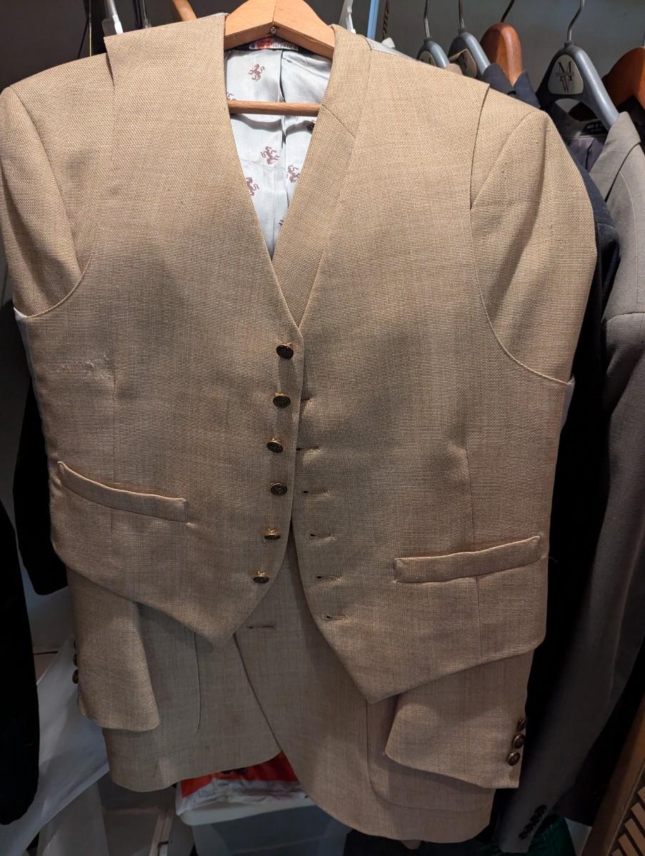 I did not see any sizes in the suits. He wore a size 38 on his other pants. The only sizes I found on a couple of pants were 32 and 42