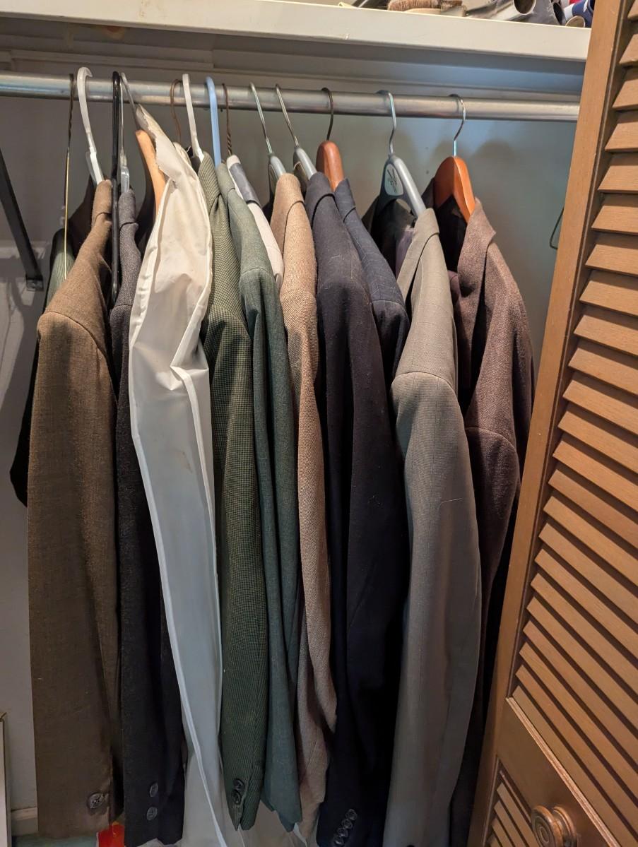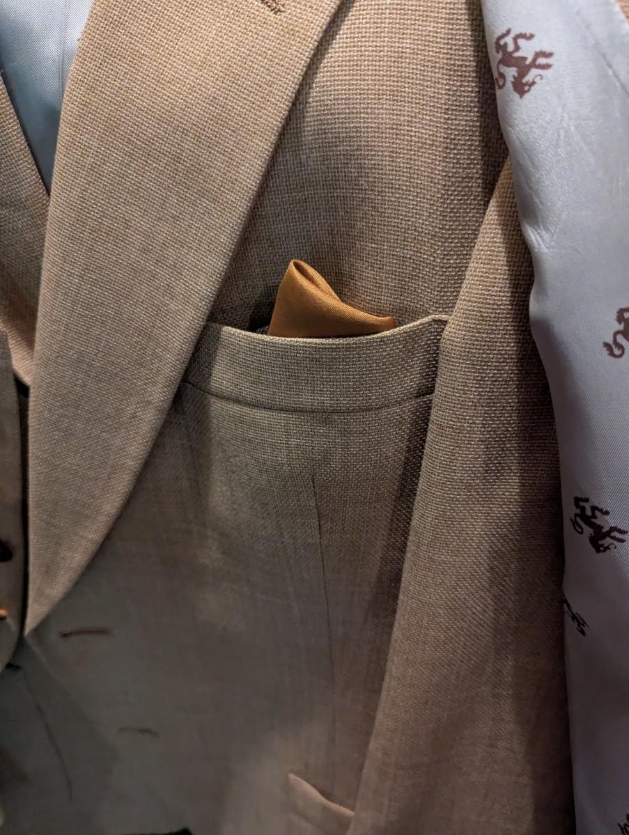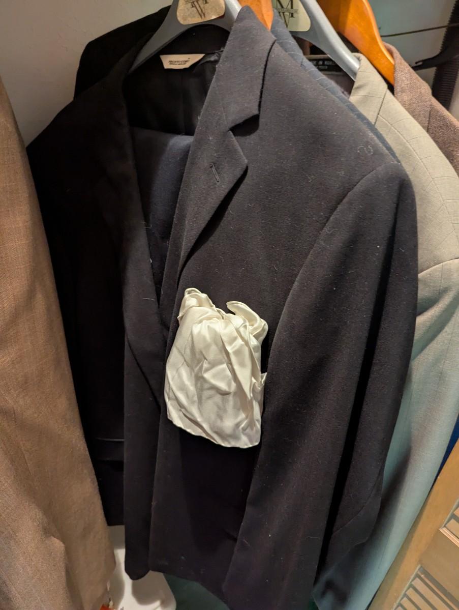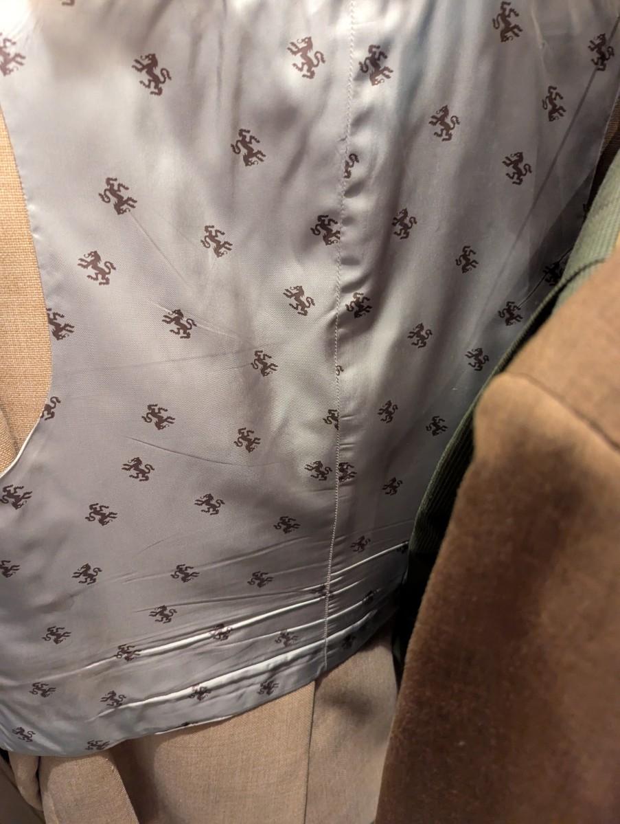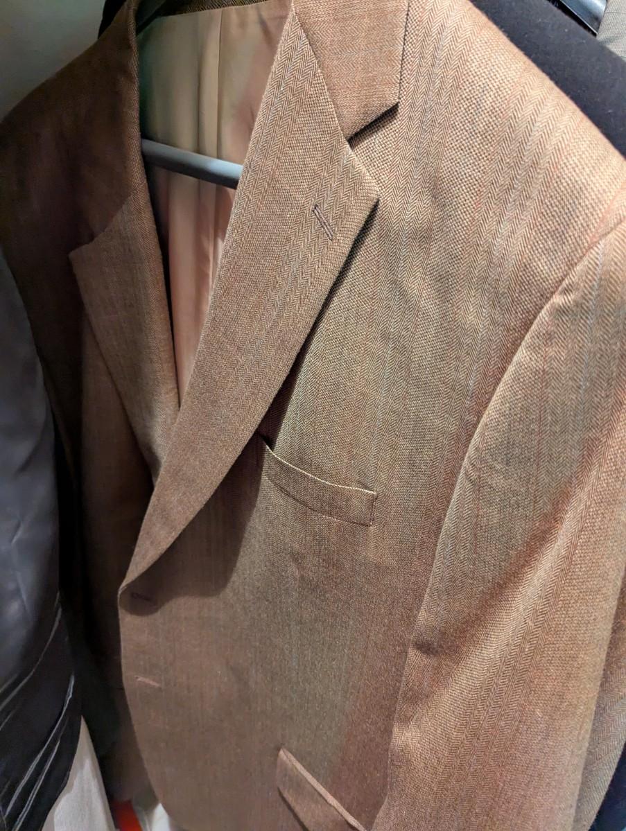 I did not see any sizes in the suits. He wore a size 38 on his other pants. The only sizes I found on a couple of pants were 32 and 42