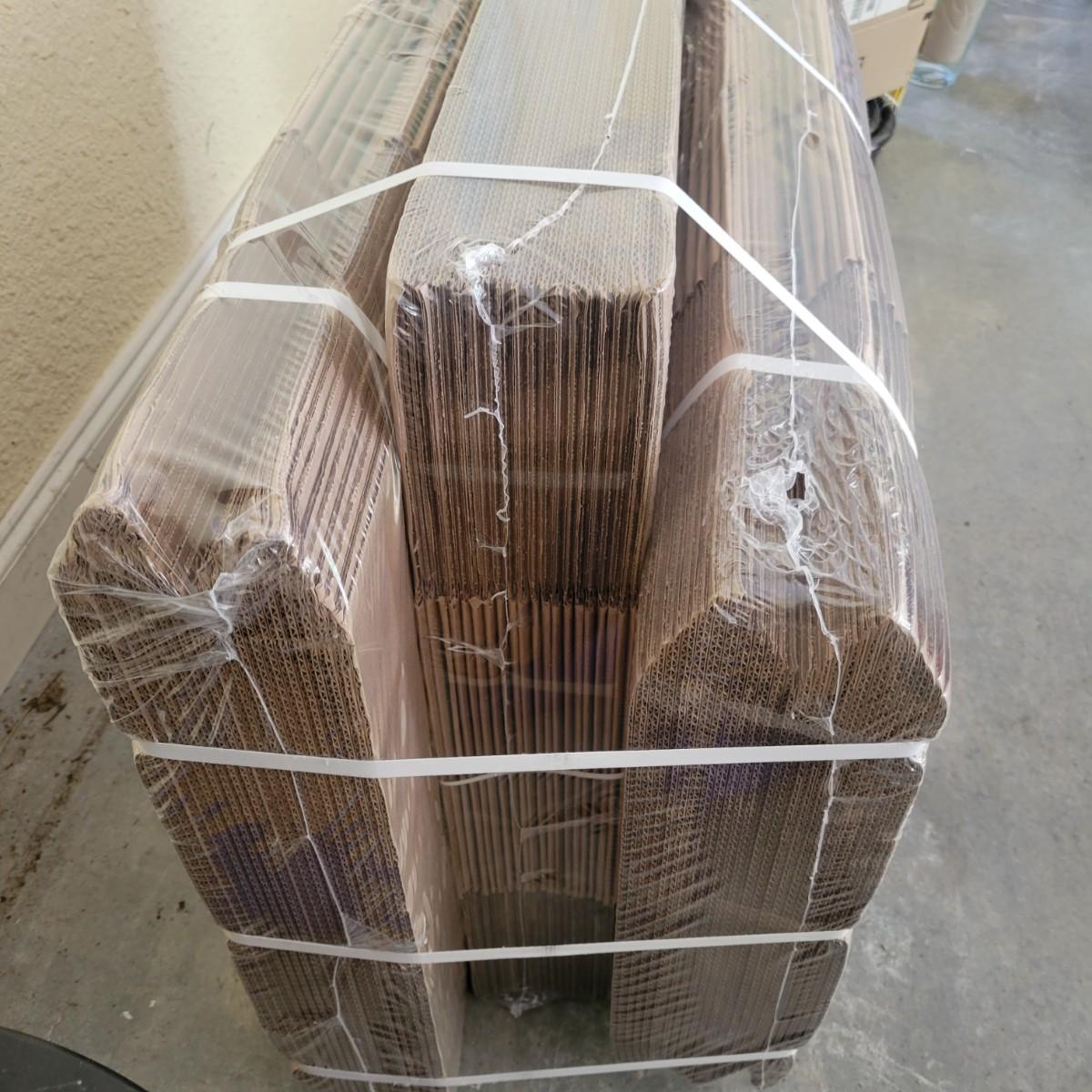 An assortment of unused moving boxes still wrapped and bound together. There appears to be approximately 72 small to medium sized boxes in this package. Local pickup only