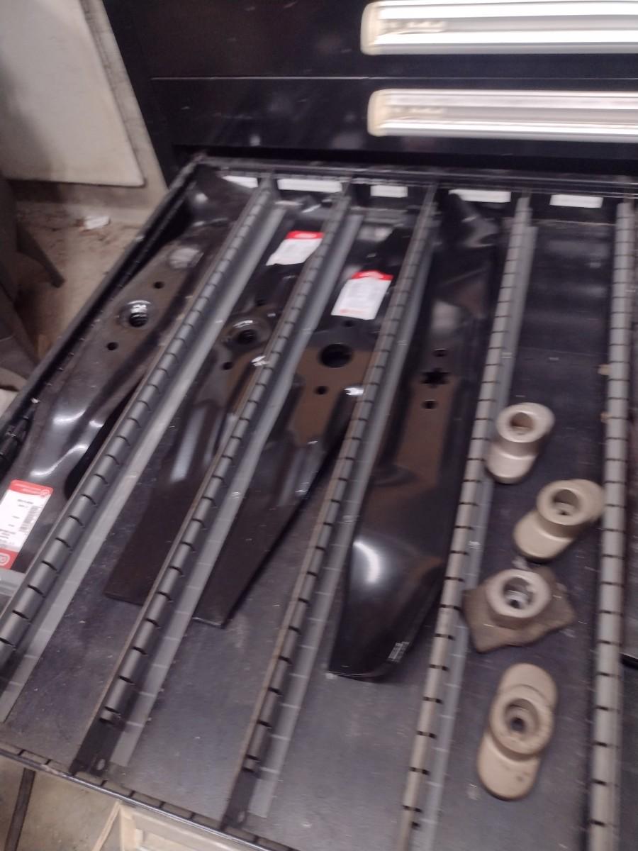 Assortment of New Lawn Mower Blades Various Sizes as Marked Choice C