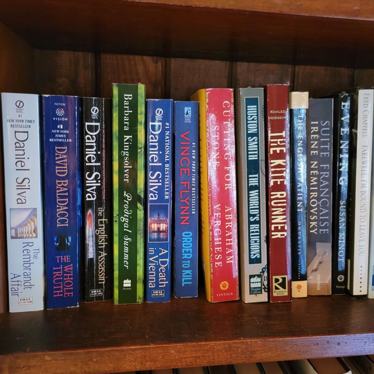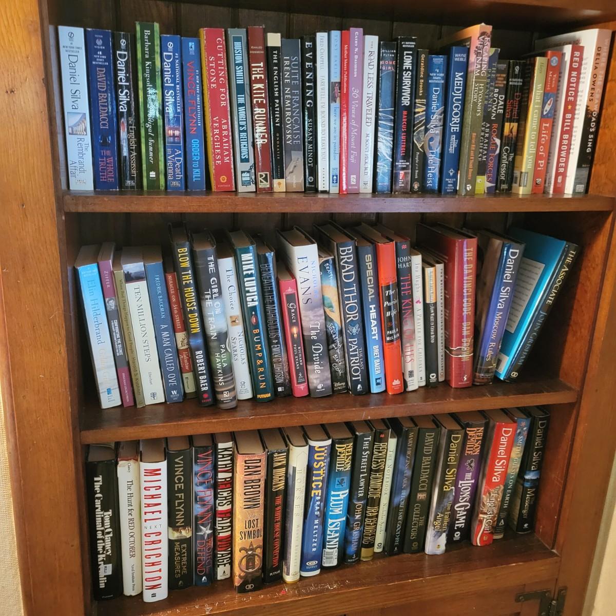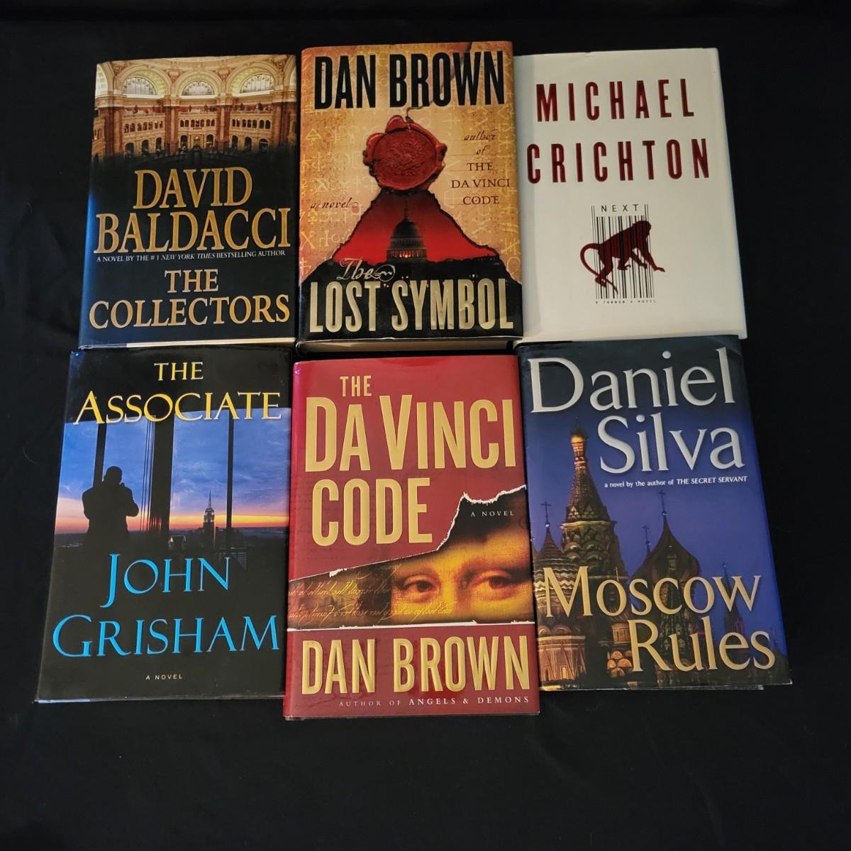 An assortment of novels that includes over 70 novels by authors such as Dan Brown. Michael Crichton, Daniel Silva and More. Local pickup only