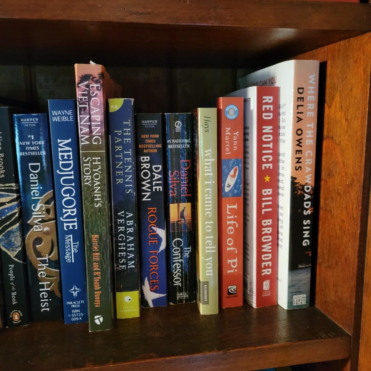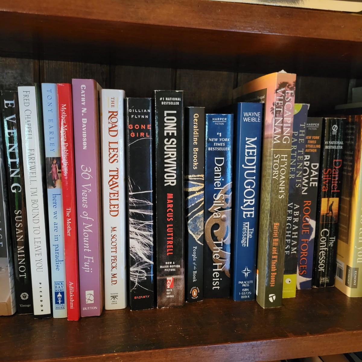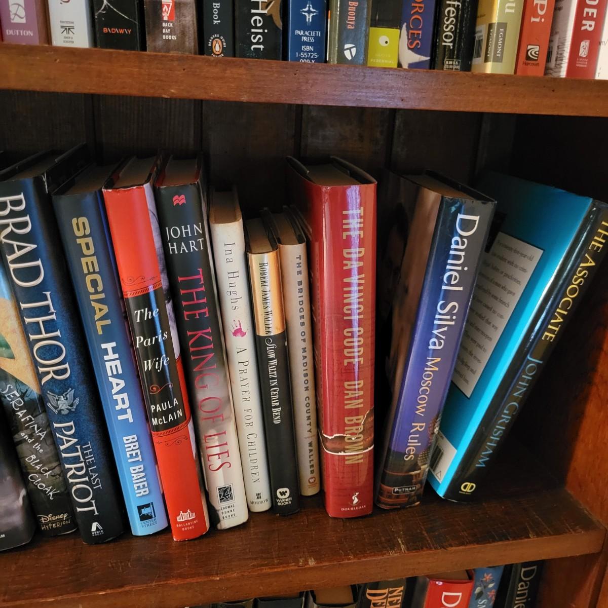 An assortment of novels that includes over 70 novels by authors such as Dan Brown. Michael Crichton, Daniel Silva and More. Local pickup only