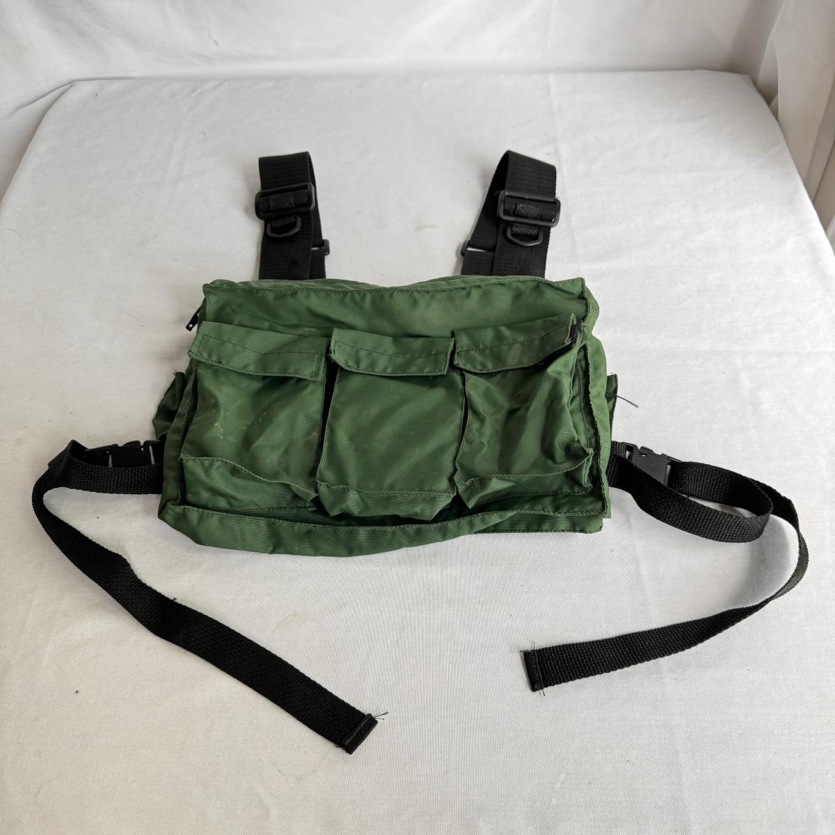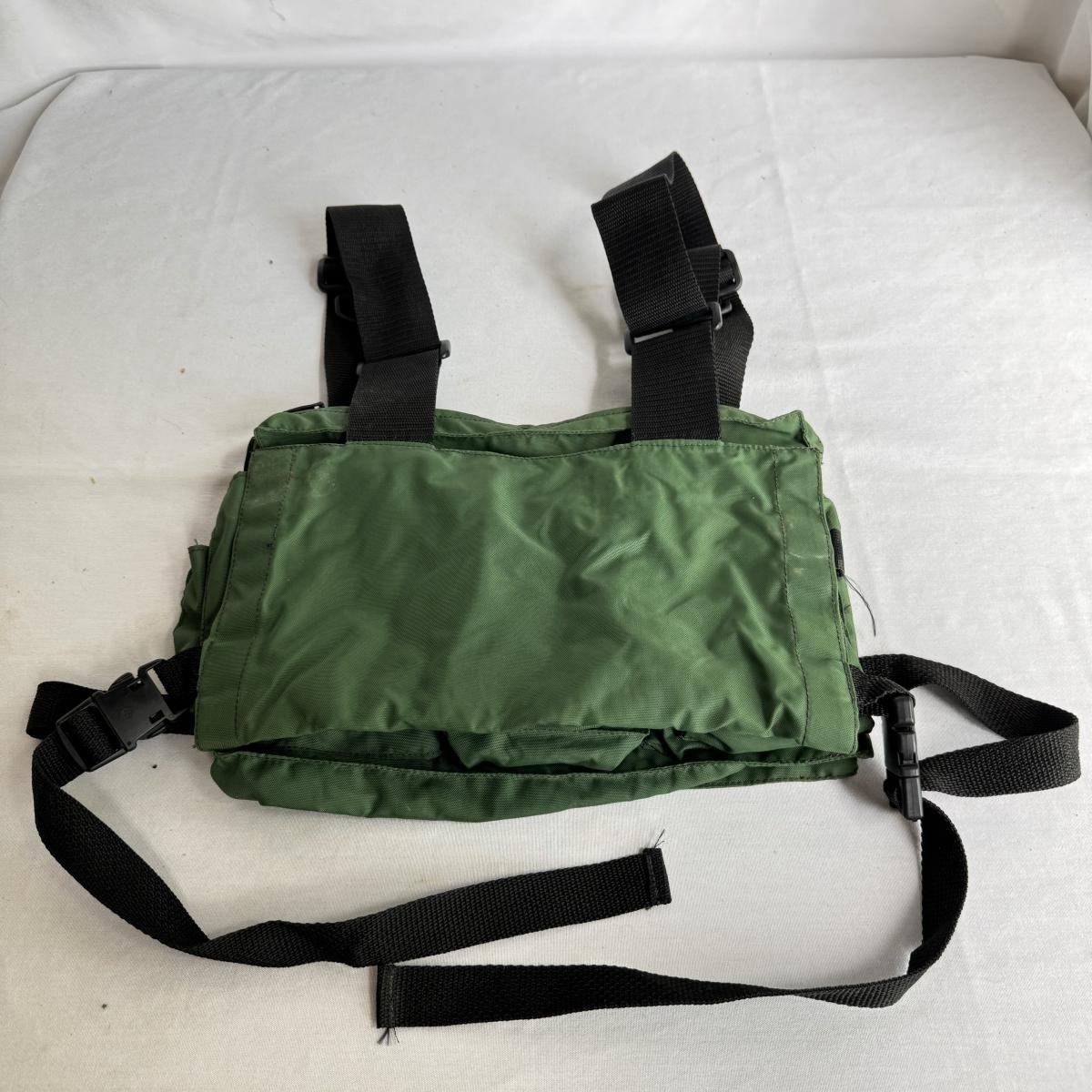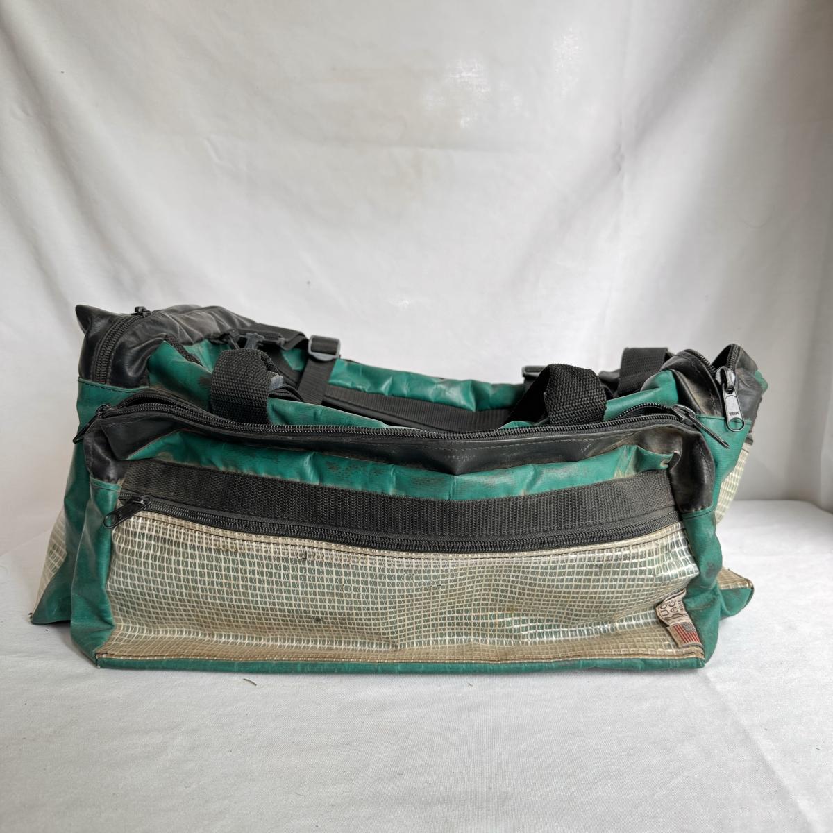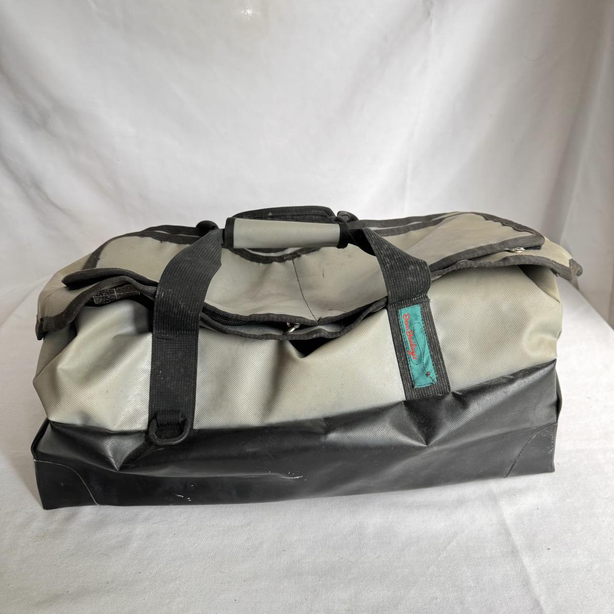 This lot includes one green bag from Bucks Bags, one grey bag from Dan Boiley’s, one small orange backpack from Fishpond, one black bag from Diamond Brand, one tote bag from Spartan Realtree, one waist bag with three pouches from the Charles Daly collection, and one green bag that goes over the shoulders. The largest bag is the first one pictured that measures 20” x 15” x 8”H. Some bags need cleaning.