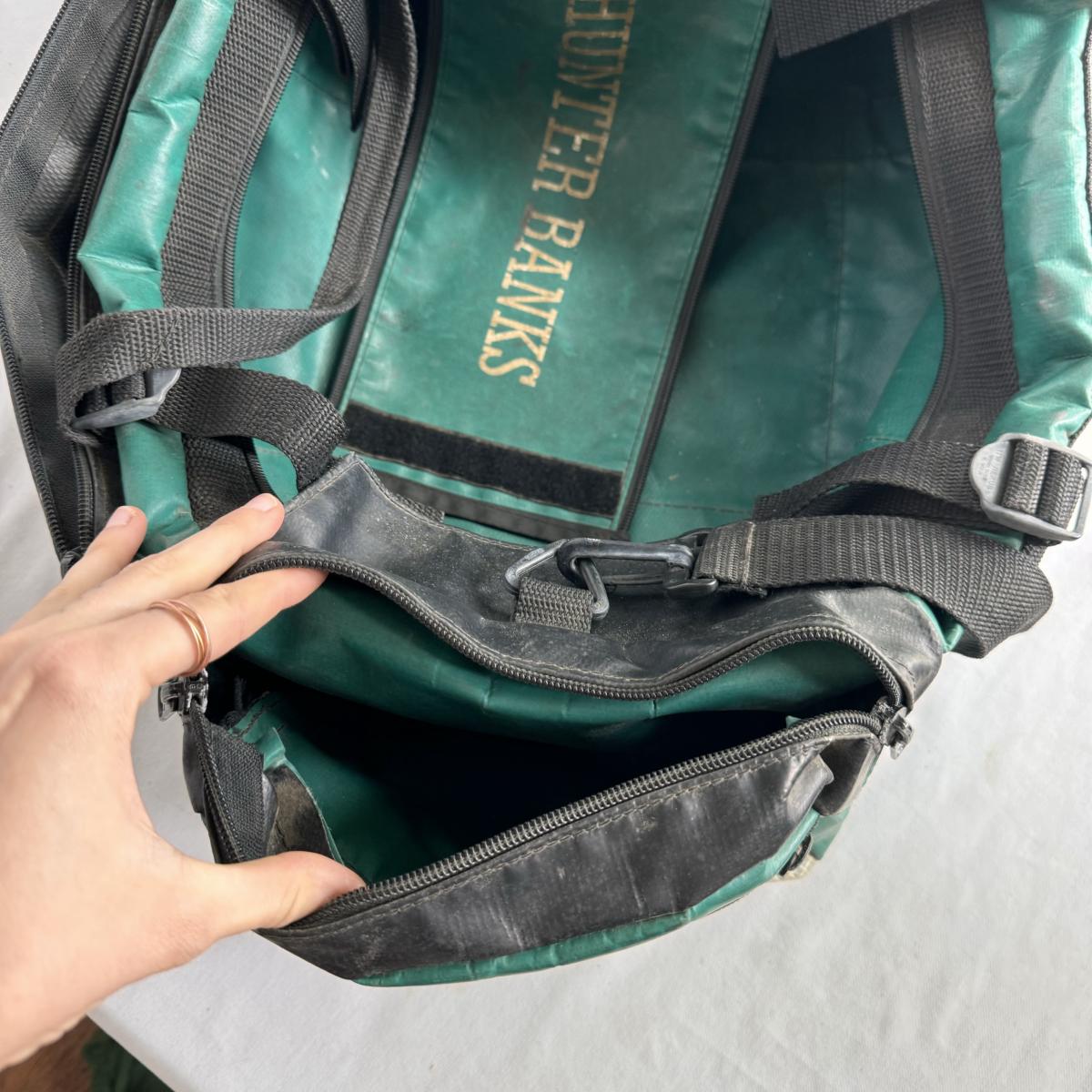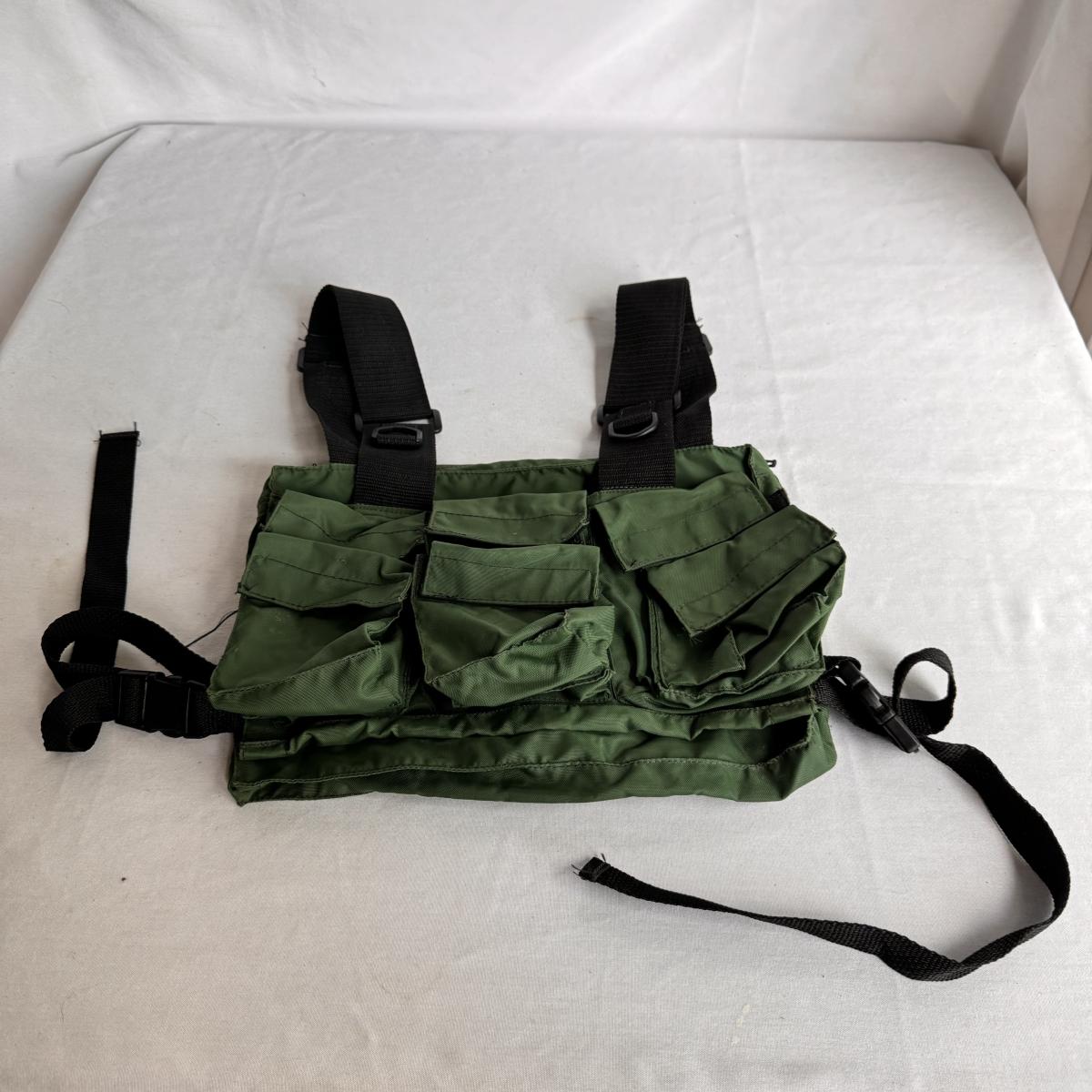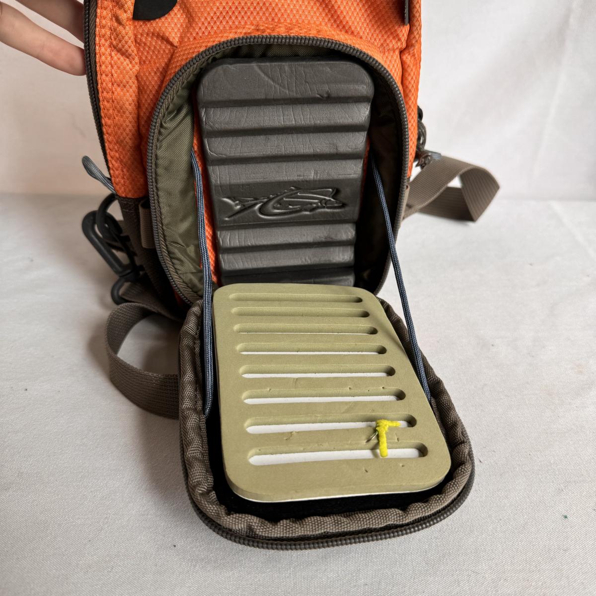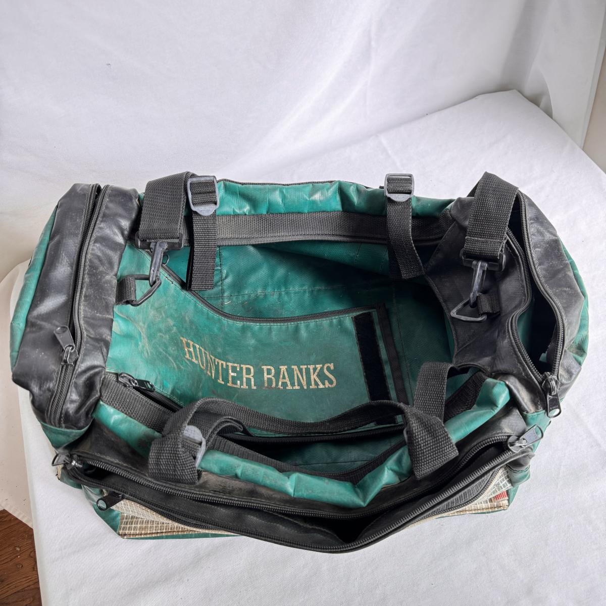 This lot includes one green bag from Bucks Bags, one grey bag from Dan Boiley’s, one small orange backpack from Fishpond, one black bag from Diamond Brand, one tote bag from Spartan Realtree, one waist bag with three pouches from the Charles Daly collection, and one green bag that goes over the shoulders. The largest bag is the first one pictured that measures 20” x 15” x 8”H. Some bags need cleaning.