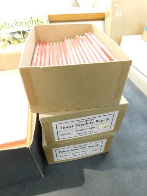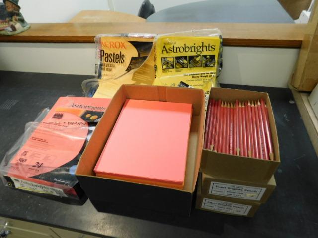 Assortment of Paper and Red Graphite Pencils