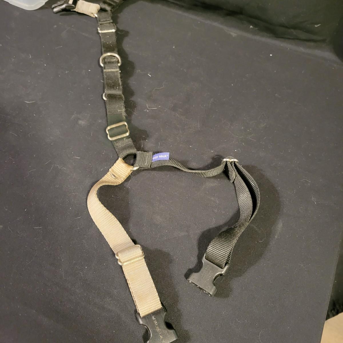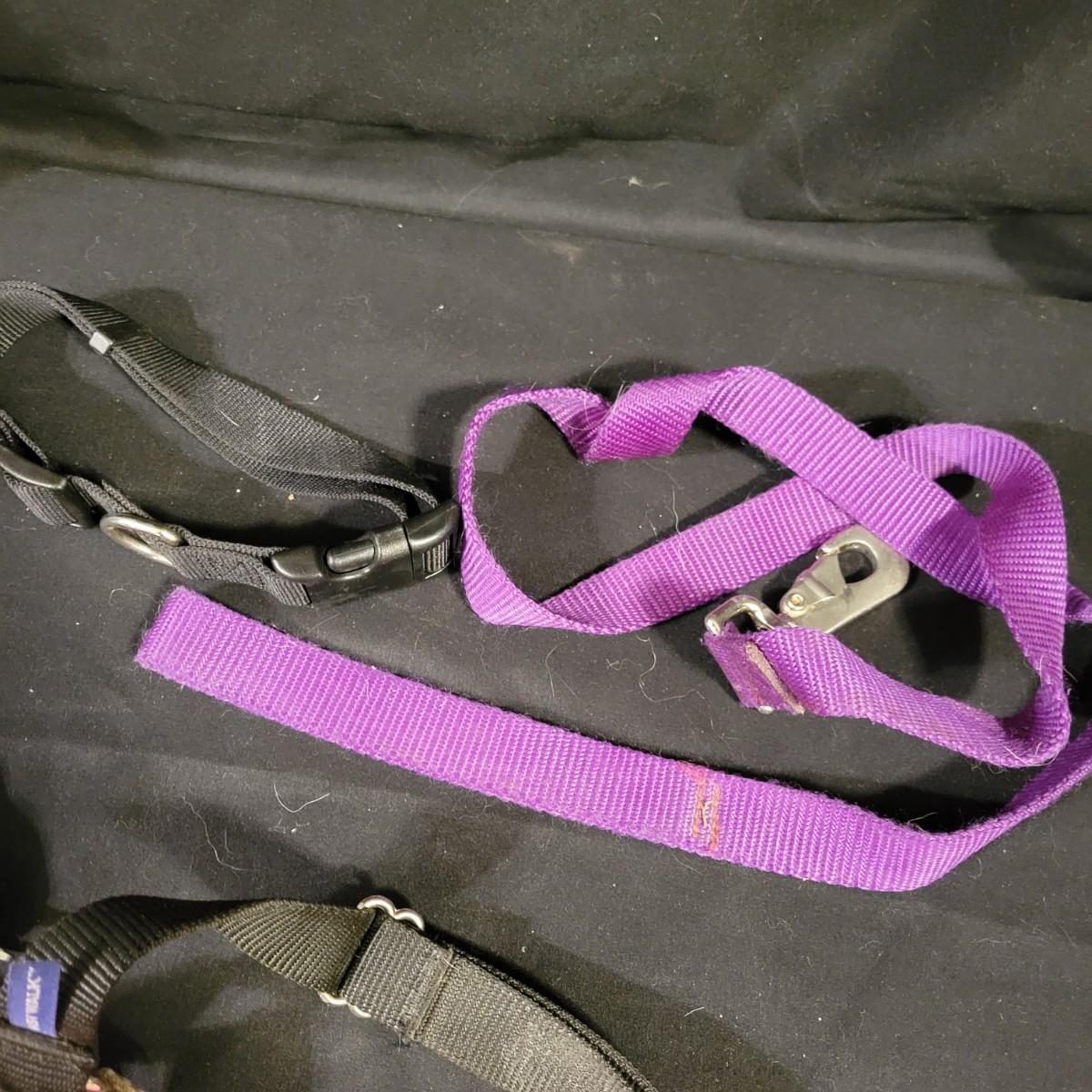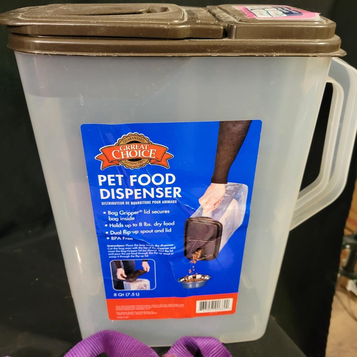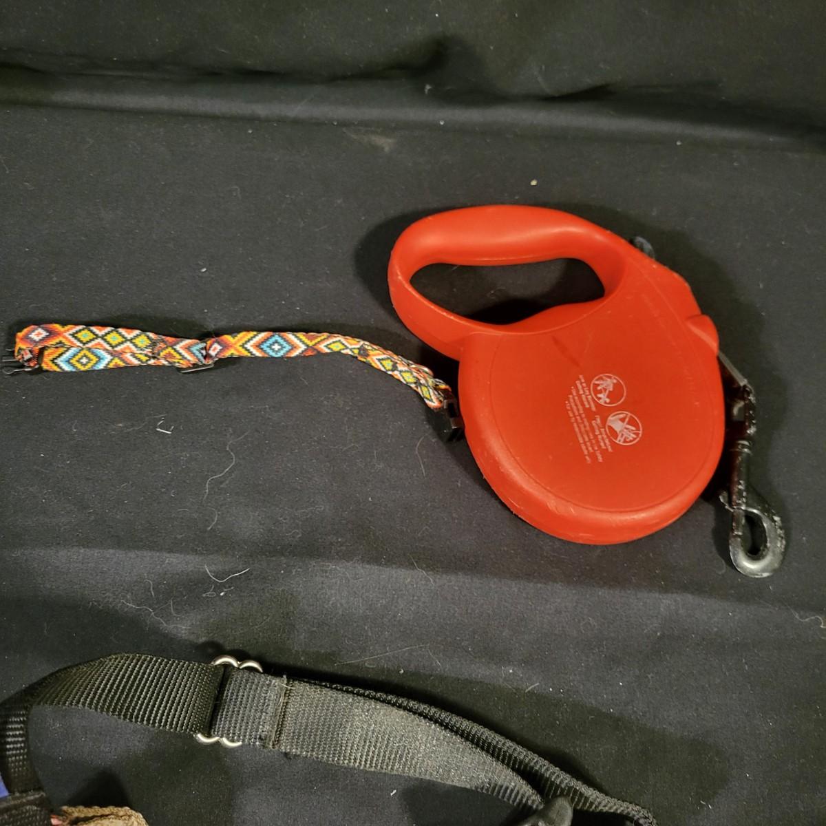 An assortment of pet accessories. Items range from harnesses, leashes, bowls, Neater Feeder raised feeders and more. The largest Neater Feeder measures approximately 17" x 11" x 6.5"H. Local pickup only