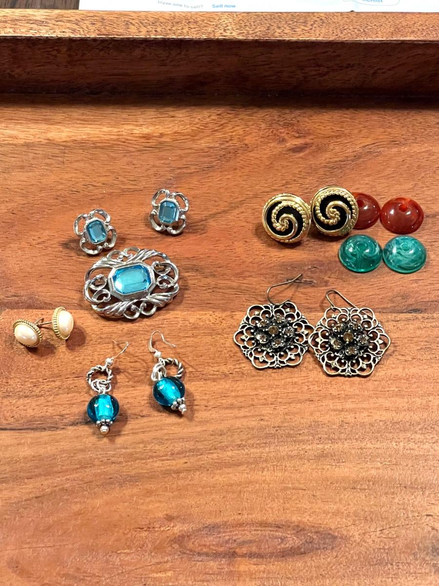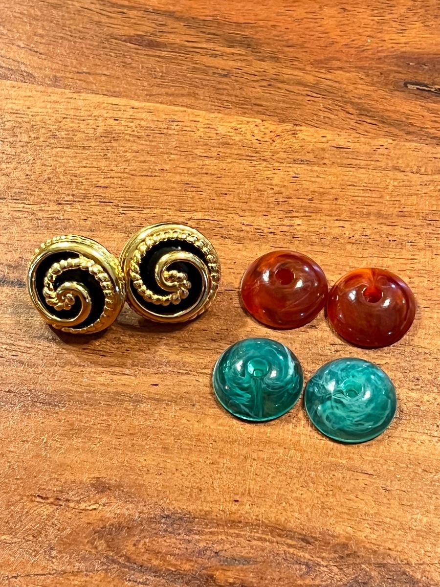 Assortment includes: 5 pairs of earrings & 1 pin ~ 1 pair of earrings has interchangeable colors (black, red, green)