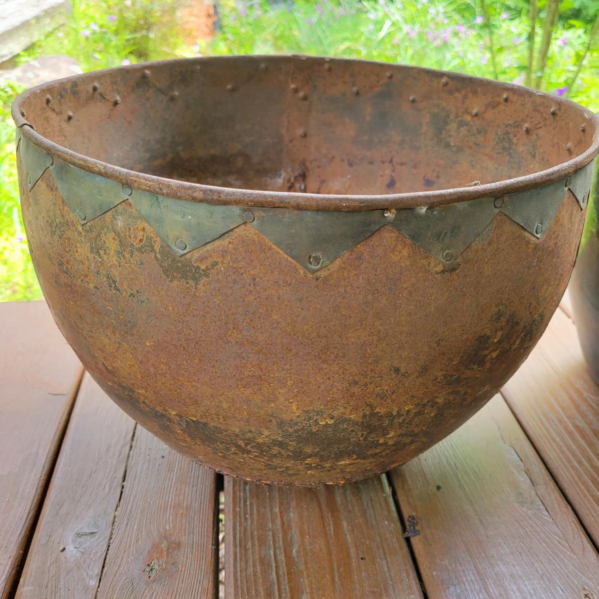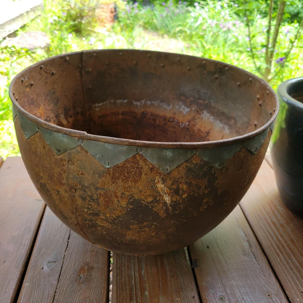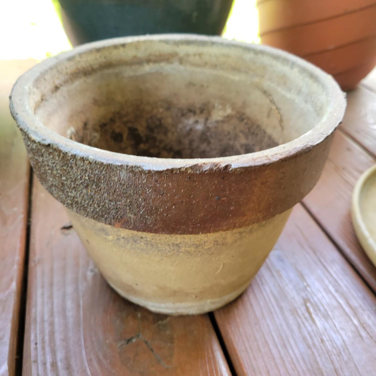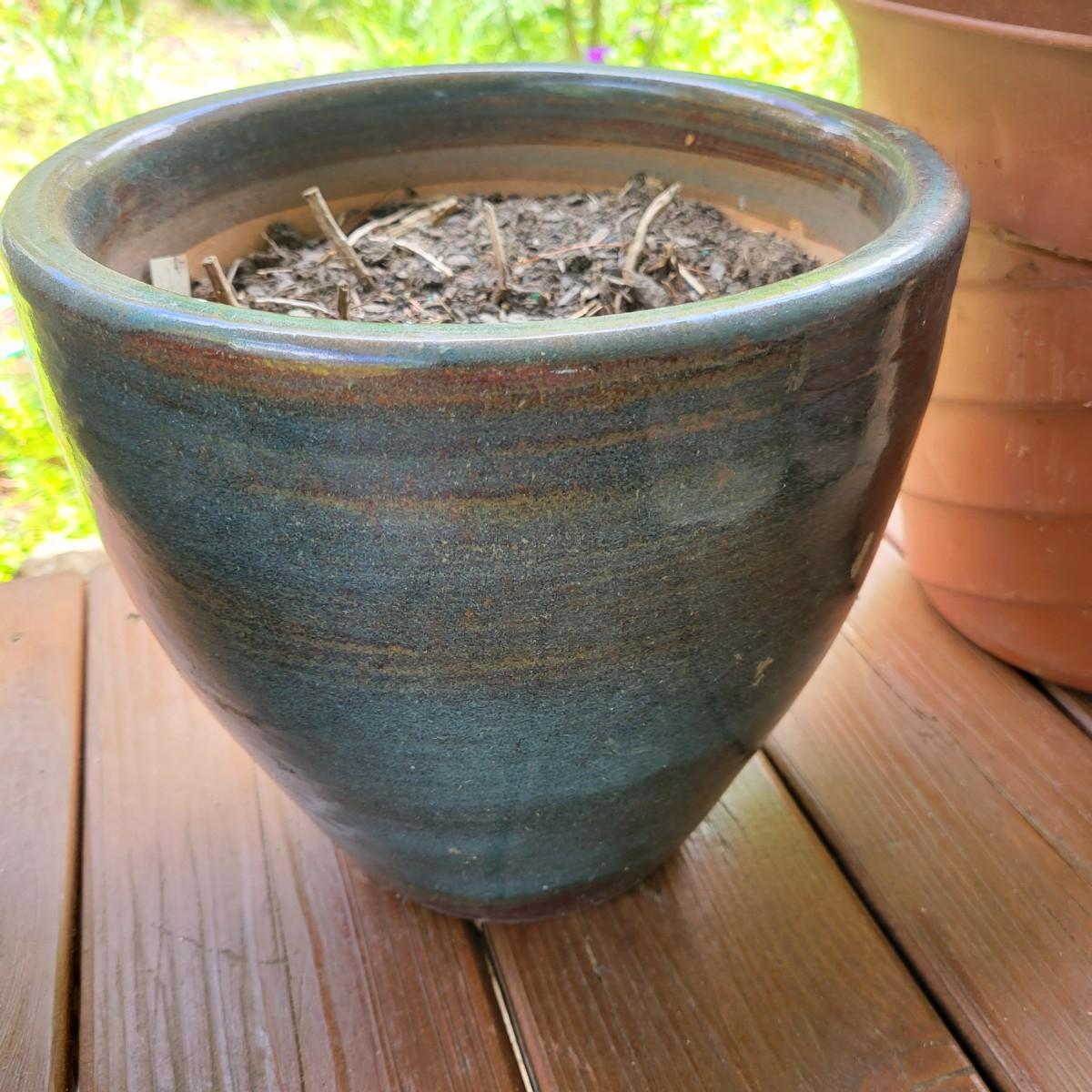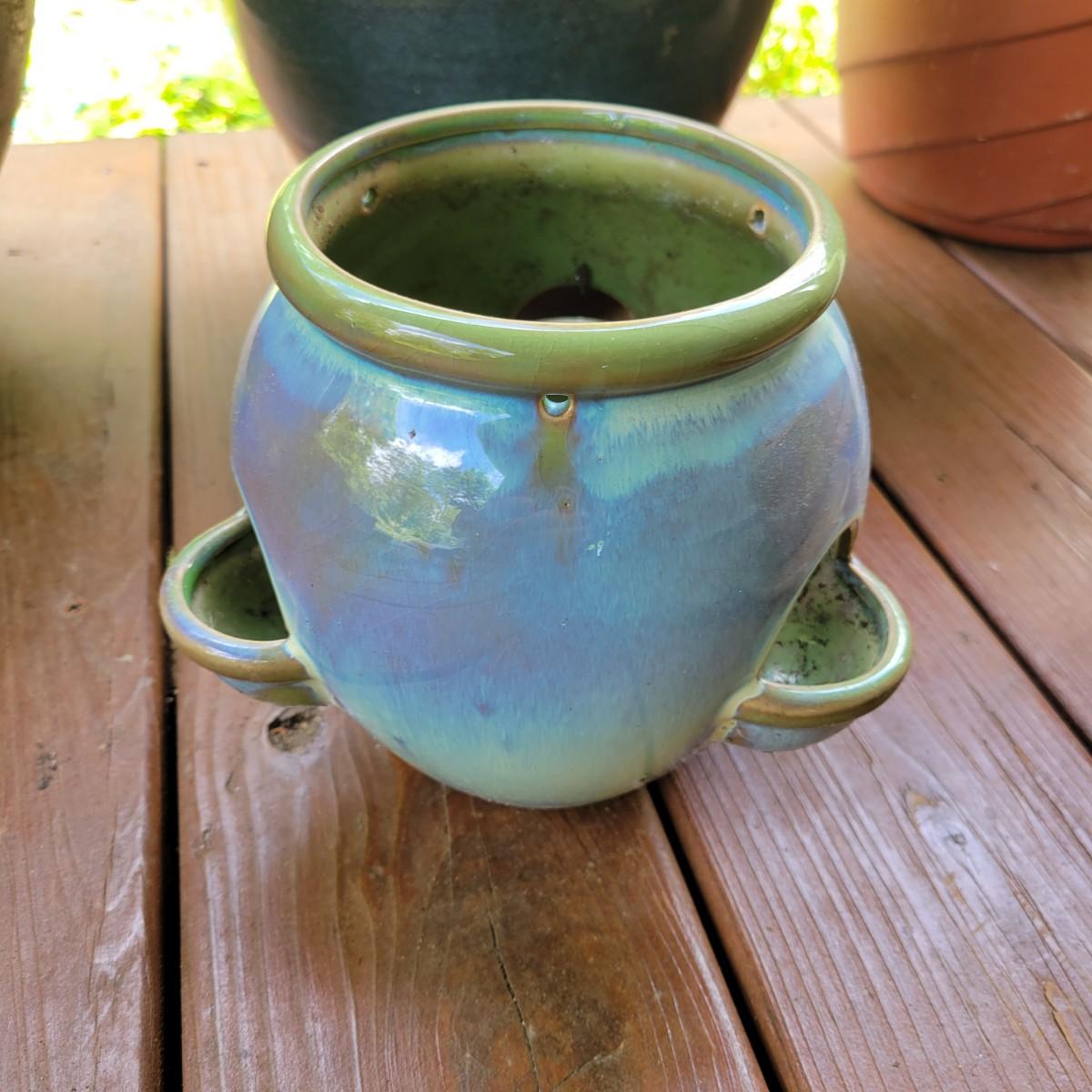 An assortment of over 20 pots and bases in a variety of sizes and materials. About half of them are plastic, but there is also ceramic, terracotta and one metal pot. The large metal pot pictured last measures approximately 16"D x 12"H. Local pickup only