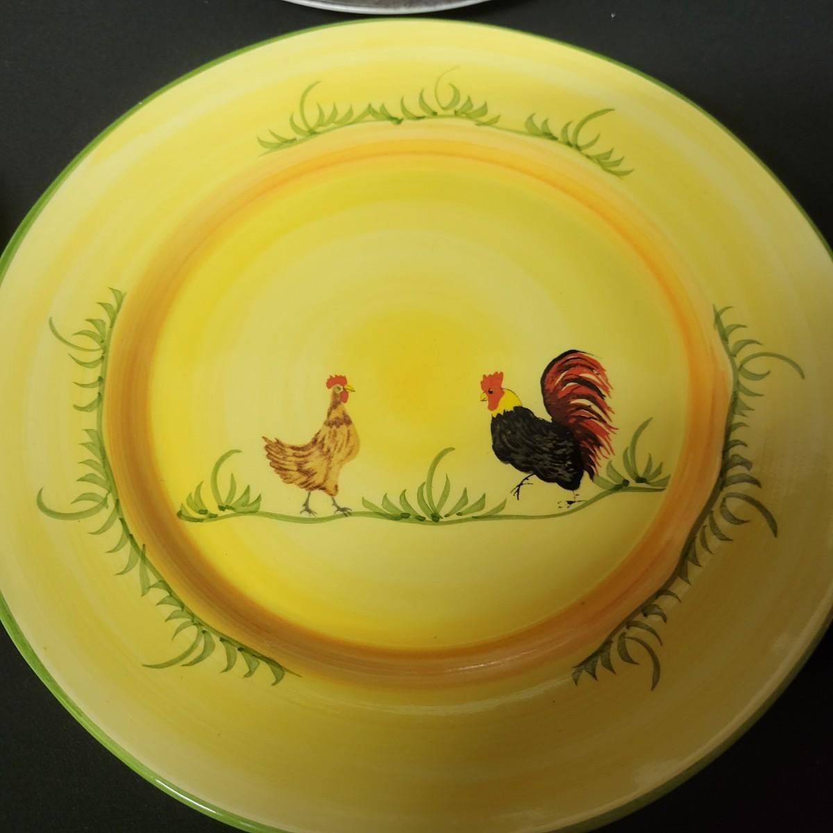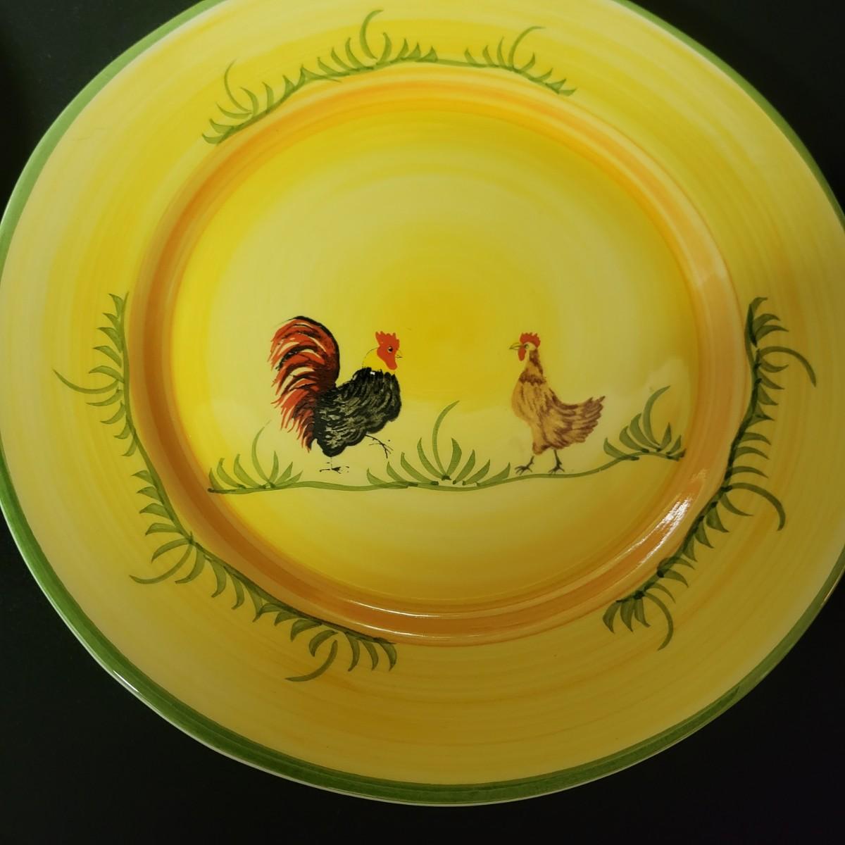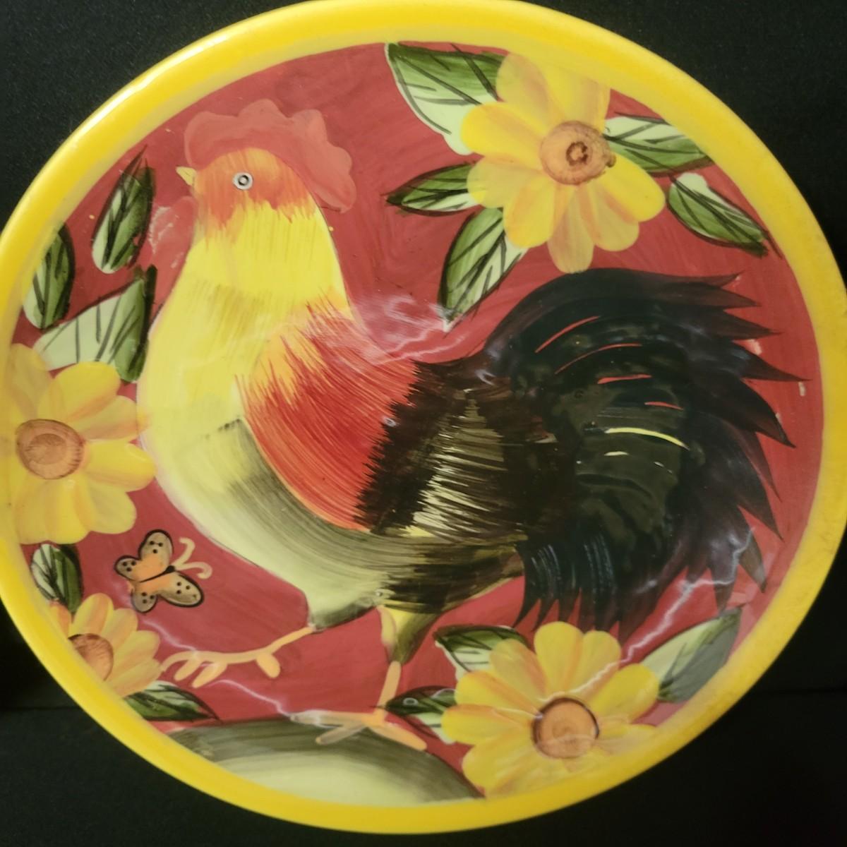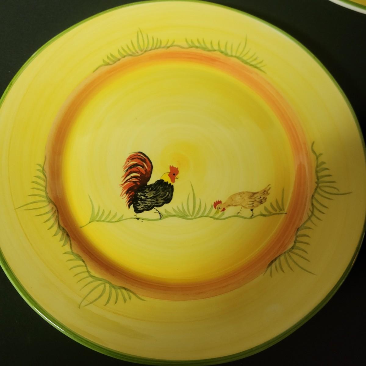 An assortment of 1r different plates with a chicken motif in excellent condition. The lot includes 3 small plates with a wrought-iron wall display, 3 printed plates, 4 plates from Cracker Barrel that mimic hand painting and 3 hand painted plate that were made in Portugal. Plates average measurements are 9.5" Shipping available. Shipping can be costly please call UPS store at 828-252-6930 for quote