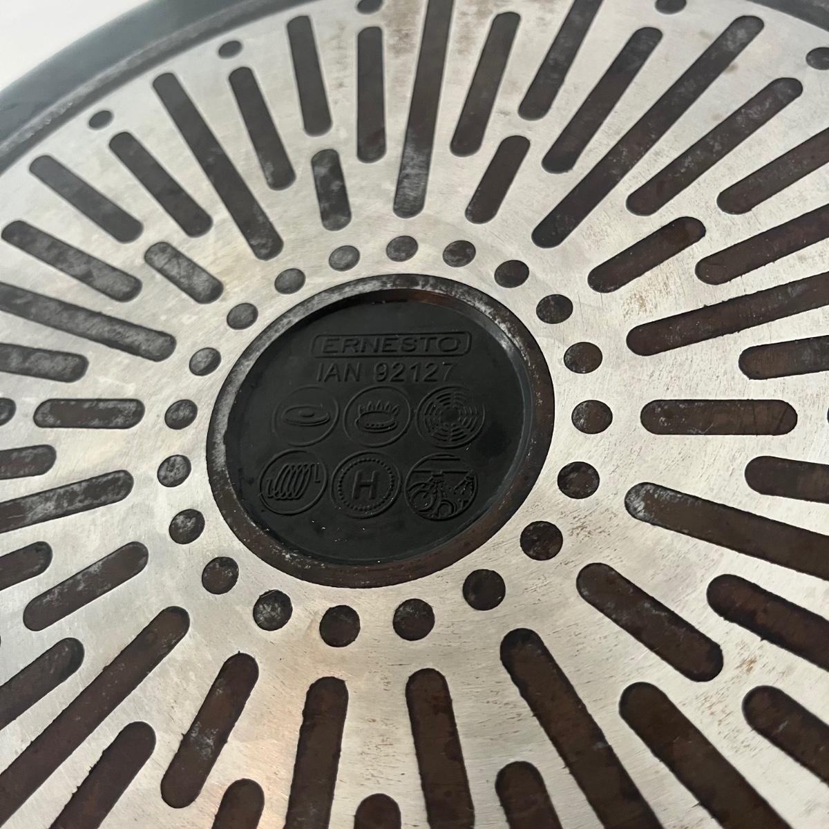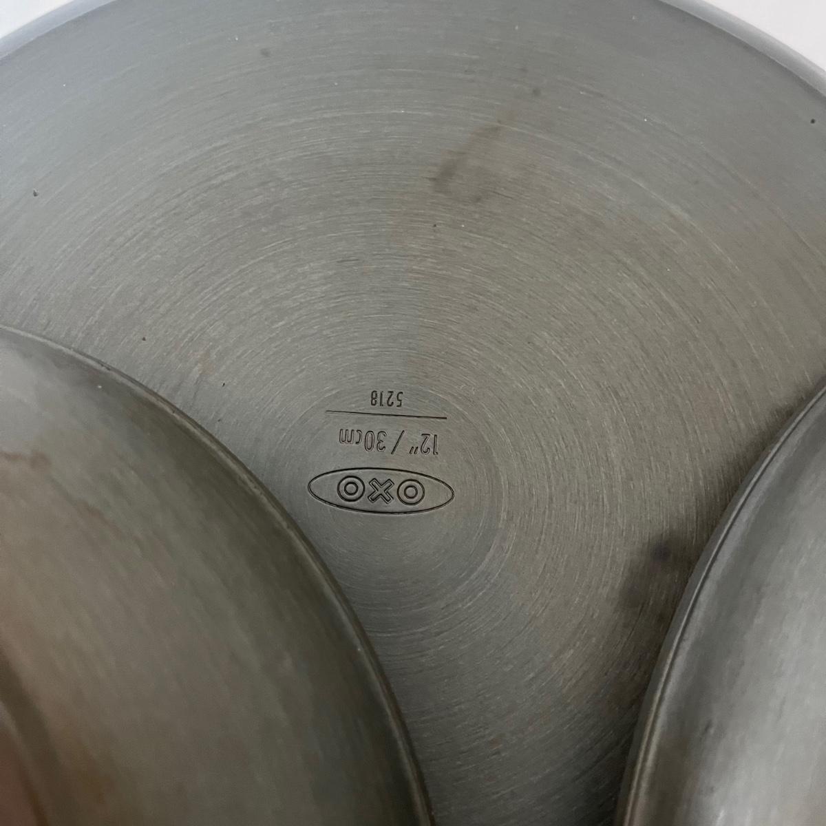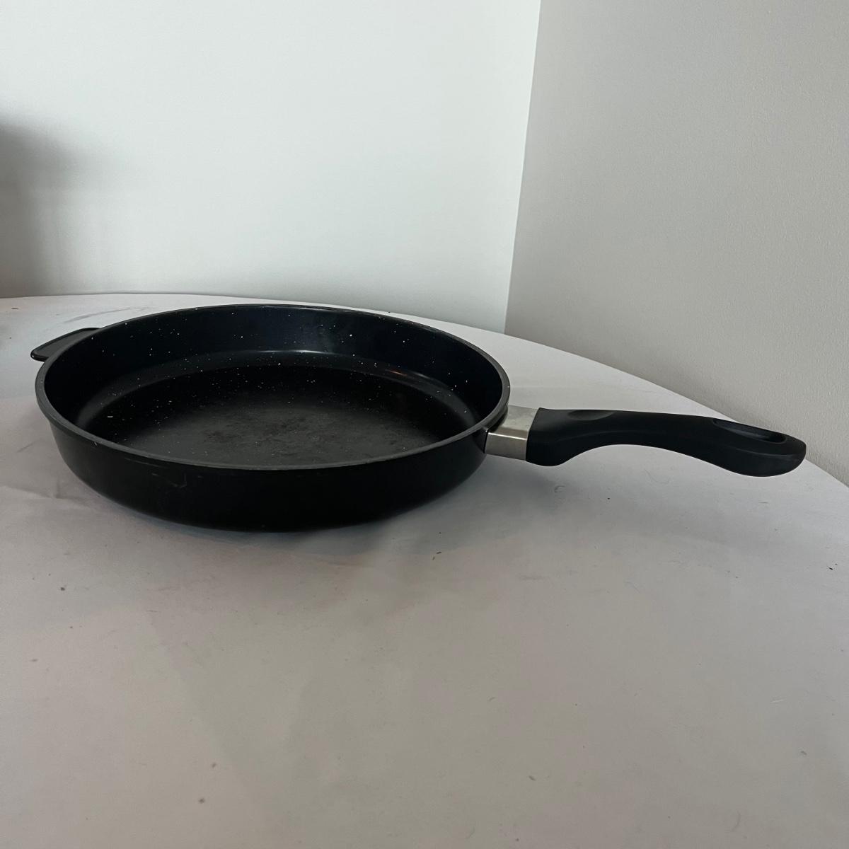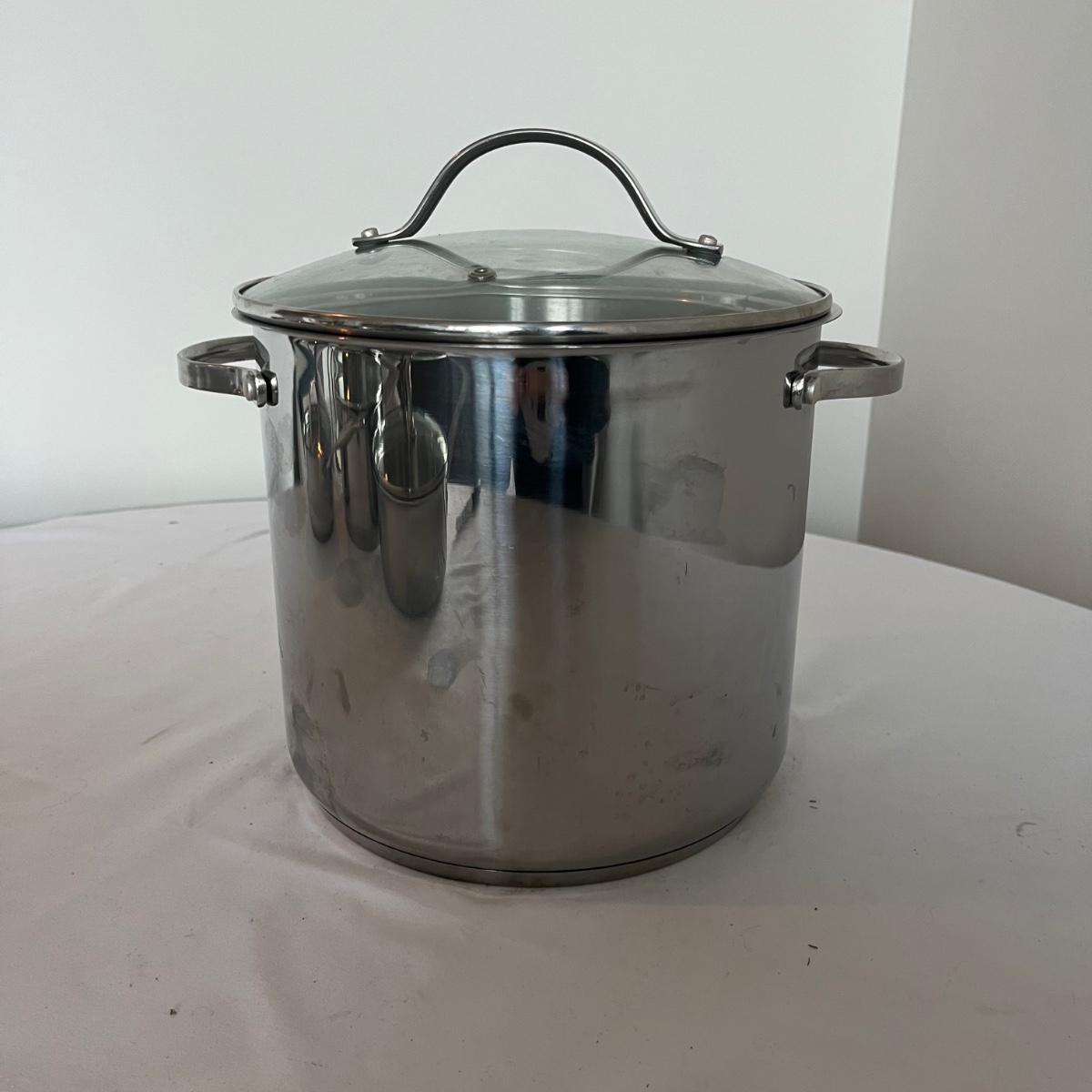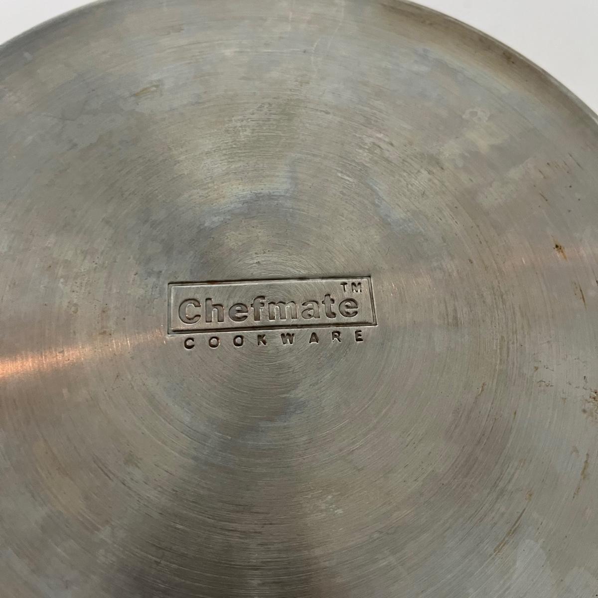 Lot includes three OXO frying pans, Ernesto 13” frying pan, Calphalon, Cuisinart and Wear-Ever pots with lids and a large Chefmate pot with lid.
