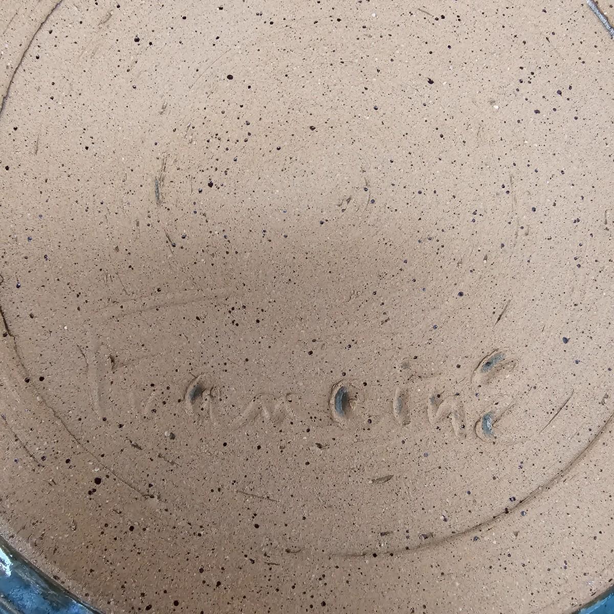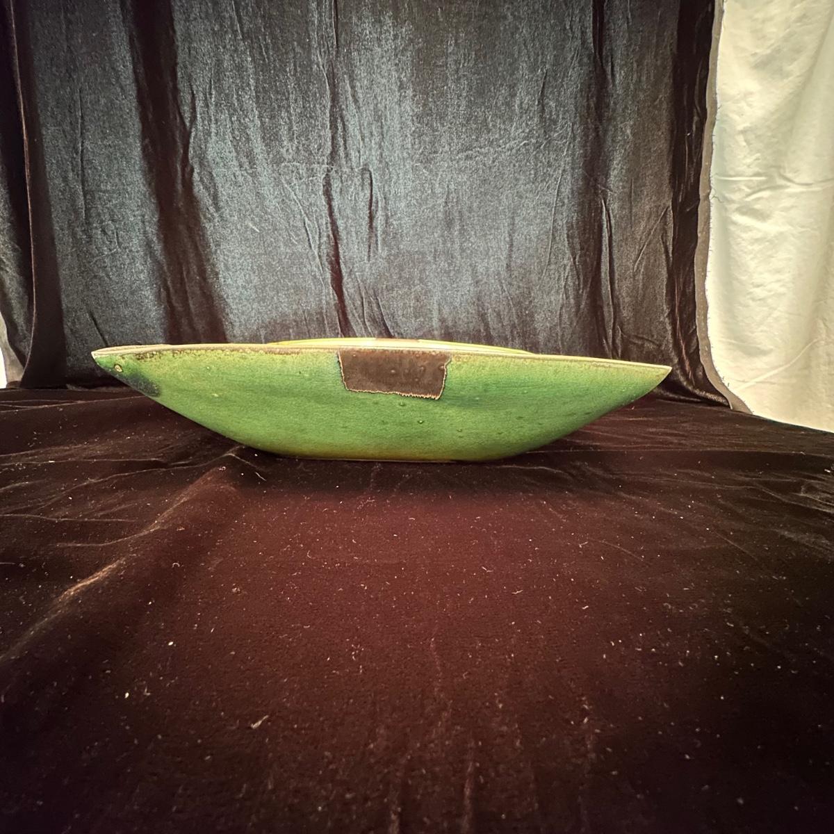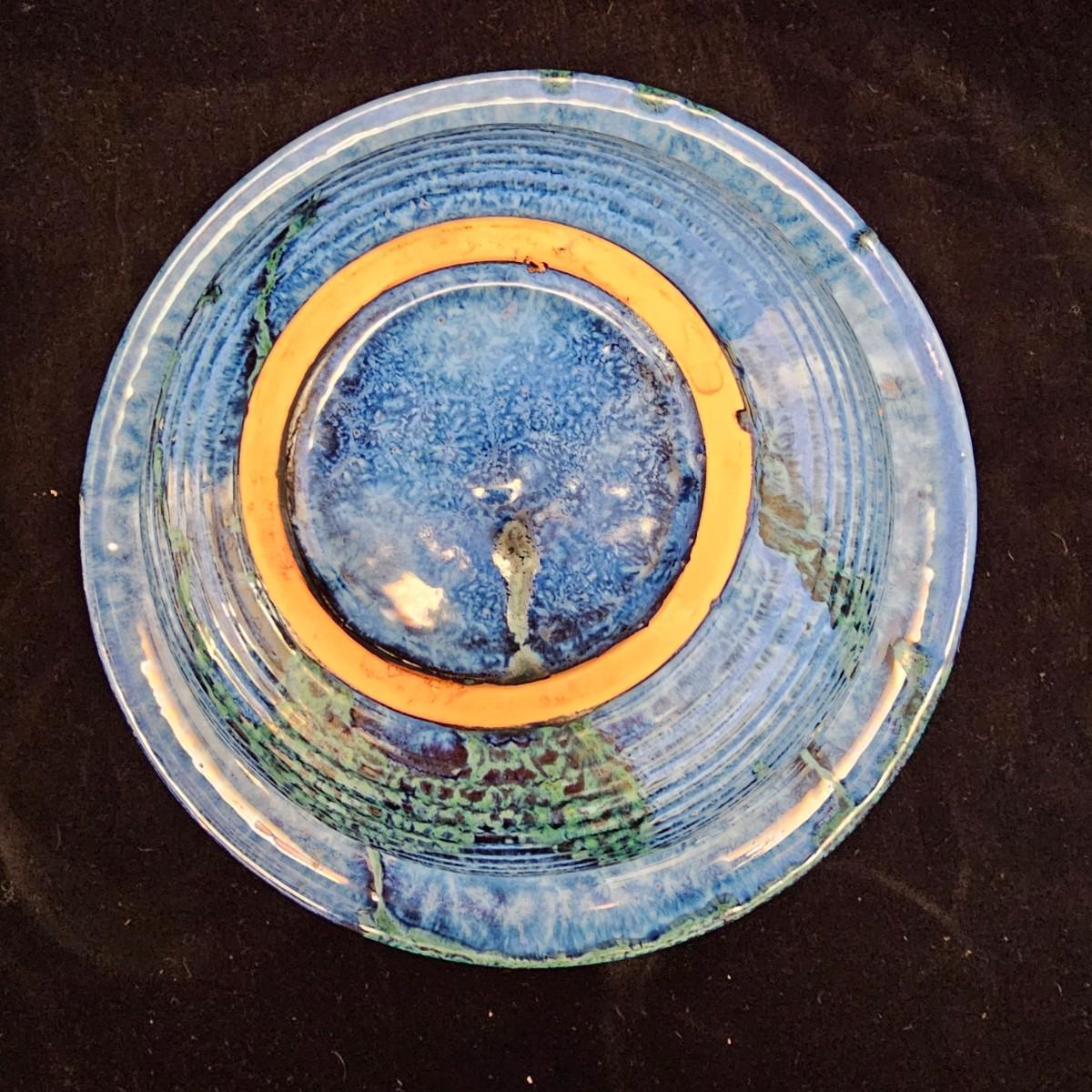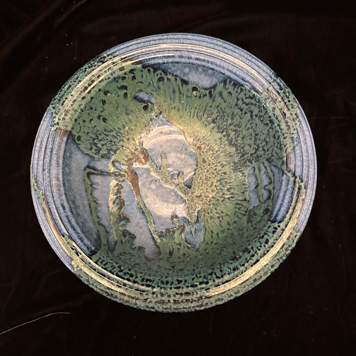Variety of pottery bowls in different colors and sizes from 9” to 14”. Square green plate measures 14” X 13”. Aqua, red and brown bowl measures 9”. Shipping available.