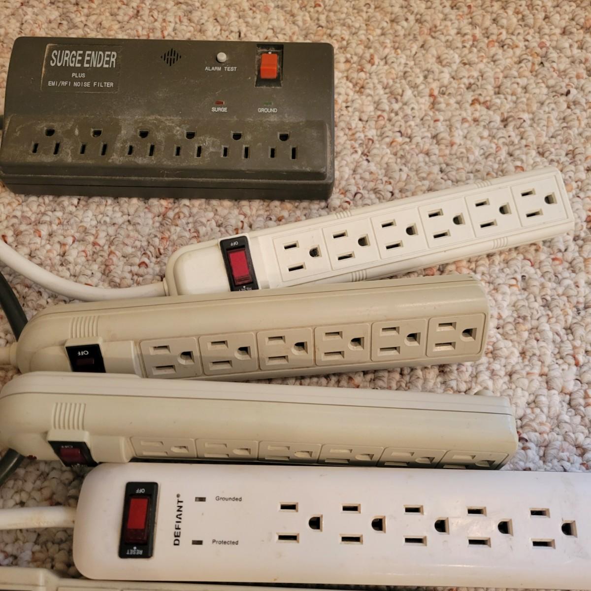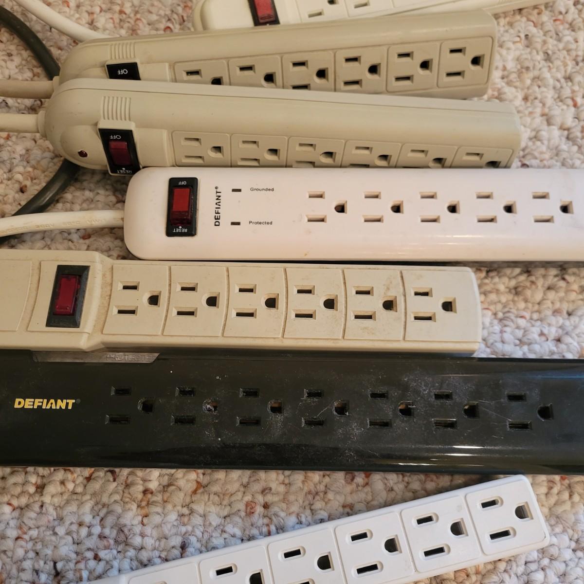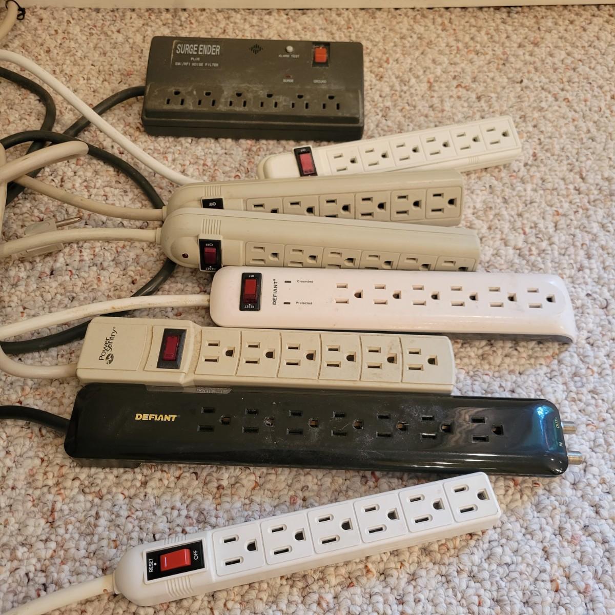 An assortment of eight power strips from a variety of manufacturers. Shipping available