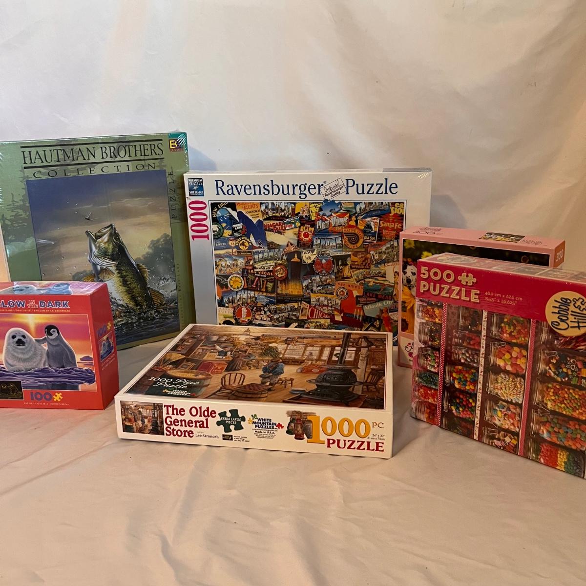 Four of these six puzzles are new and unopened. The two that are open have their contents shown in pics.