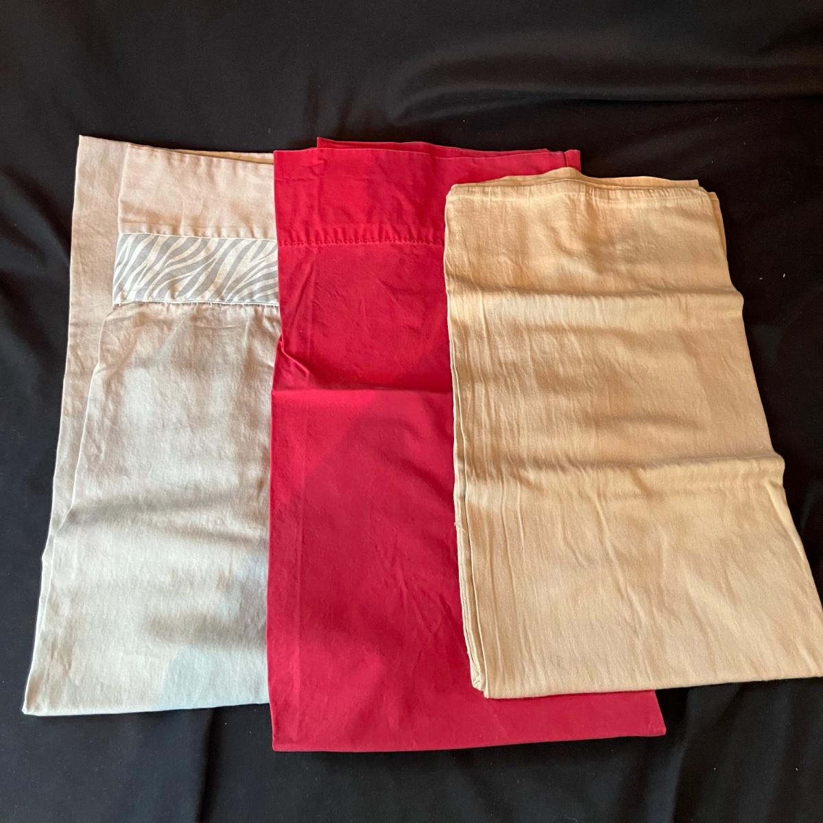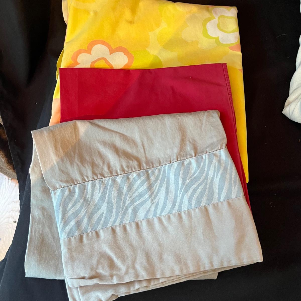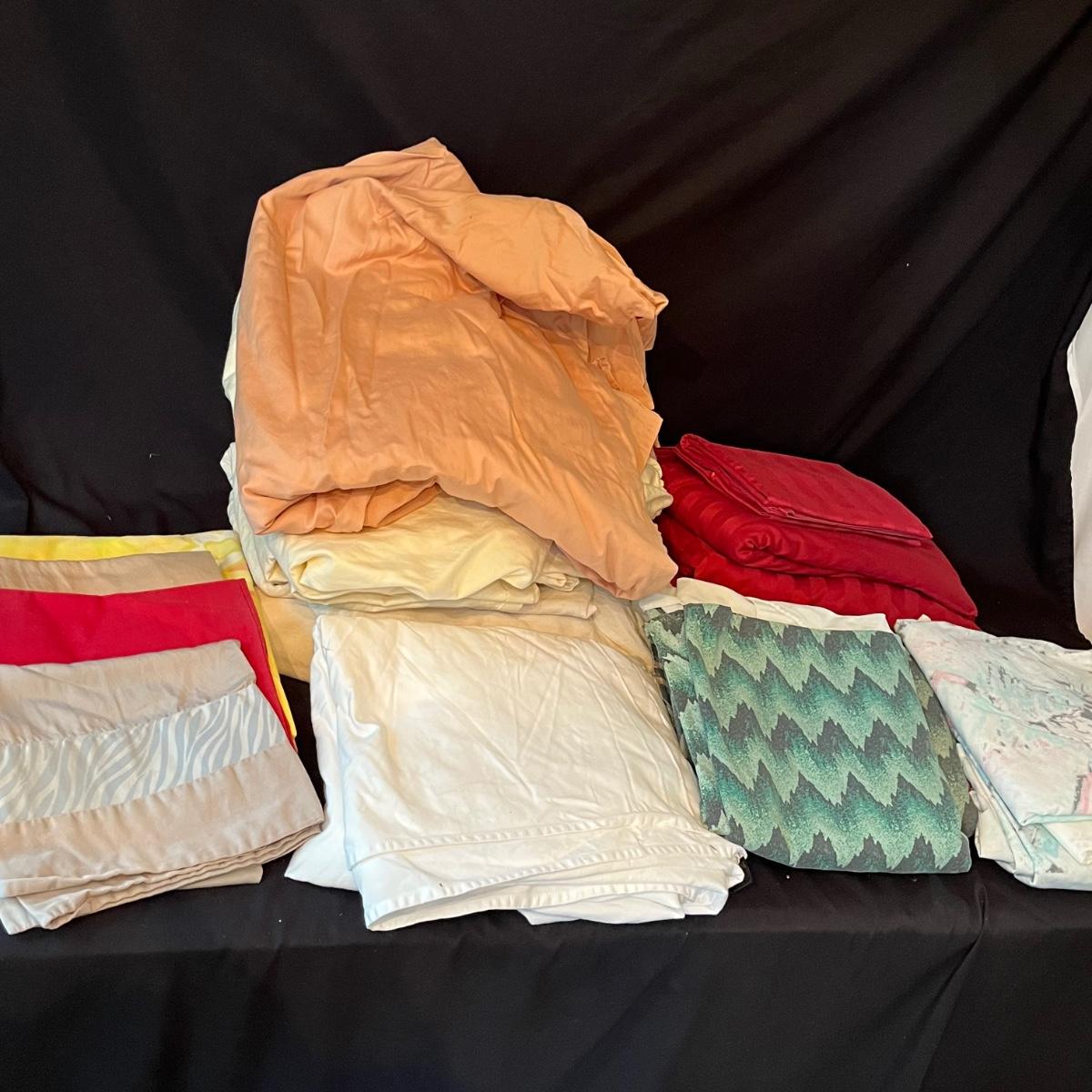 Lot includes an assortment of queen sheet sets in a variety of colors. Also includes at least one king sheet set and pillow cases.