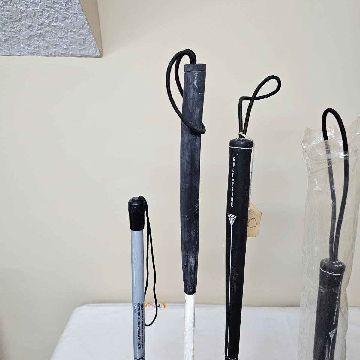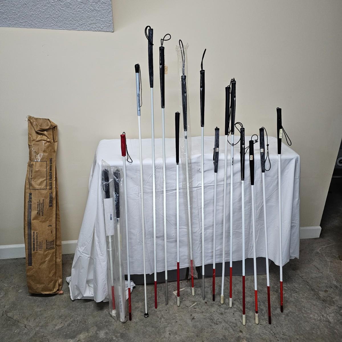 15+ new and used items by Ambutech, Lamkin and others. Canes have traditional red tips and soft grip handles with loops. They range from 36" to 61.5" long. See photos for details. Local pickup only.