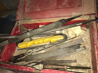 Assortment of Rivits, Files &Rivit Gun & Other Tools & Metal Box