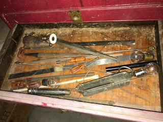 Assortment of Rivits, Files & Rivit Gun & Other Tools & Metal Box