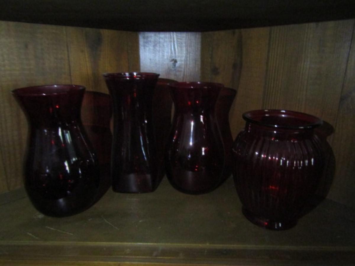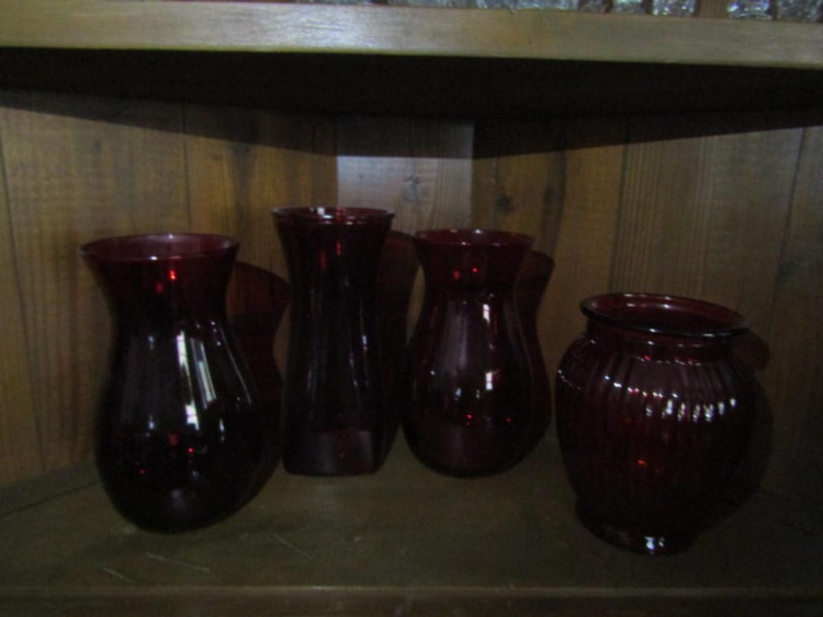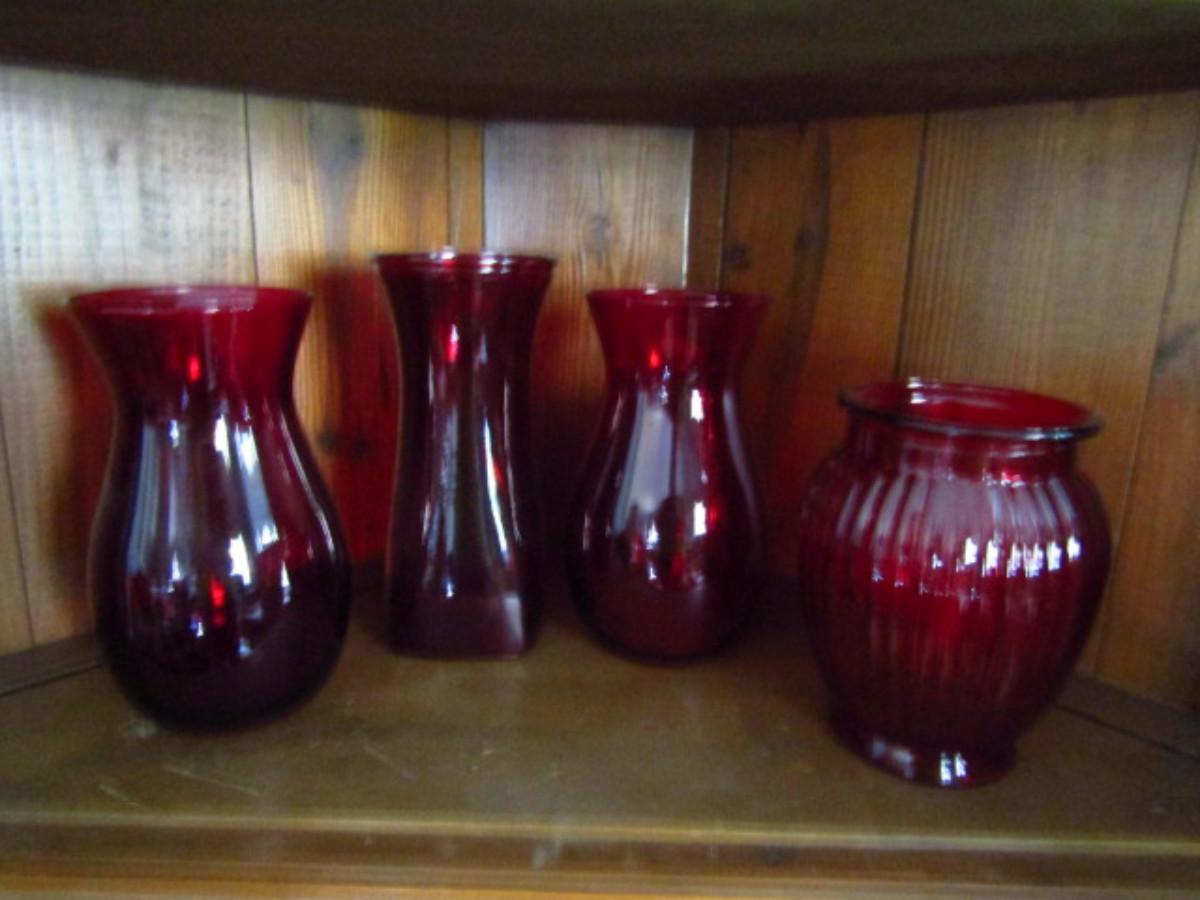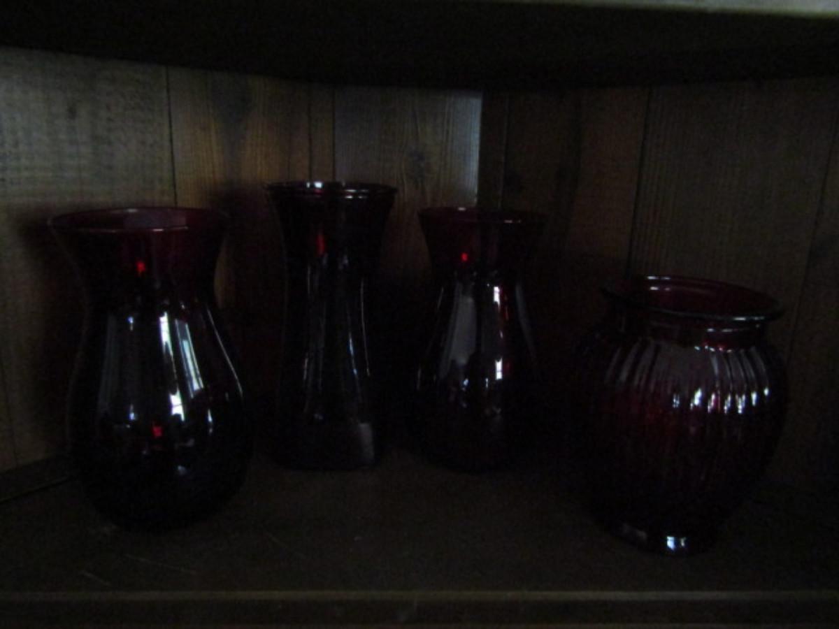 Assortment of Ruby Red Glass Vases- 4 Pieces (#191)