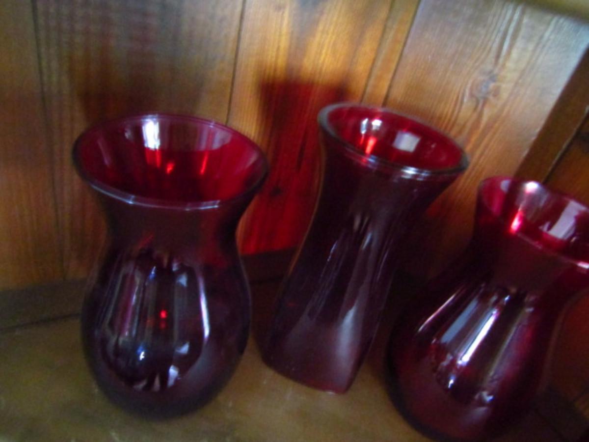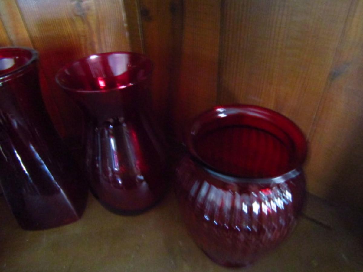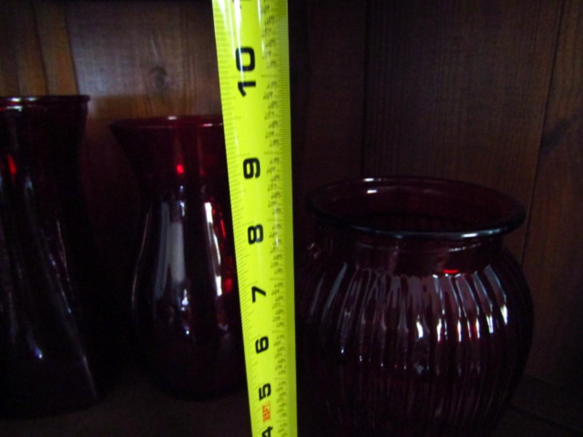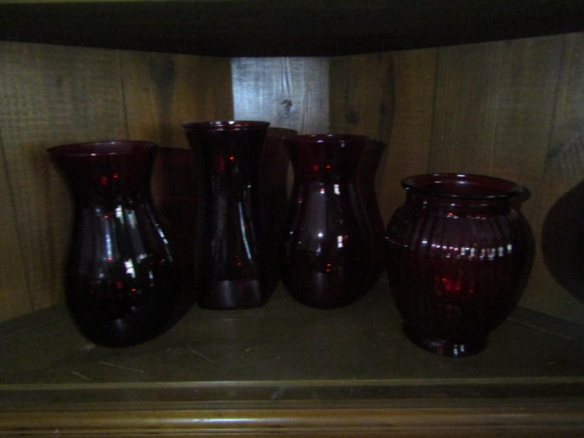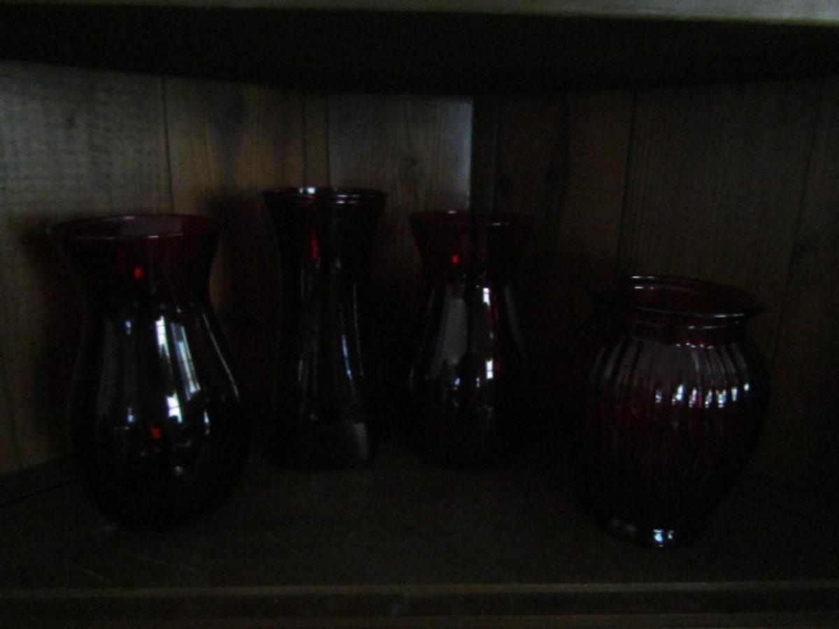 Assortment of Ruby Red Glass Vases- 4 Pieces (#191)