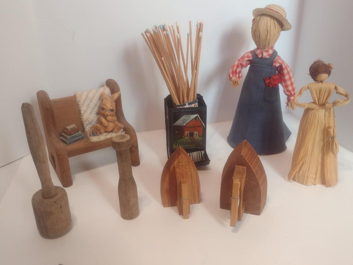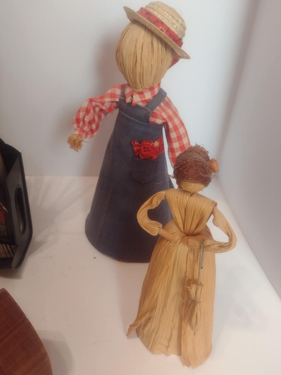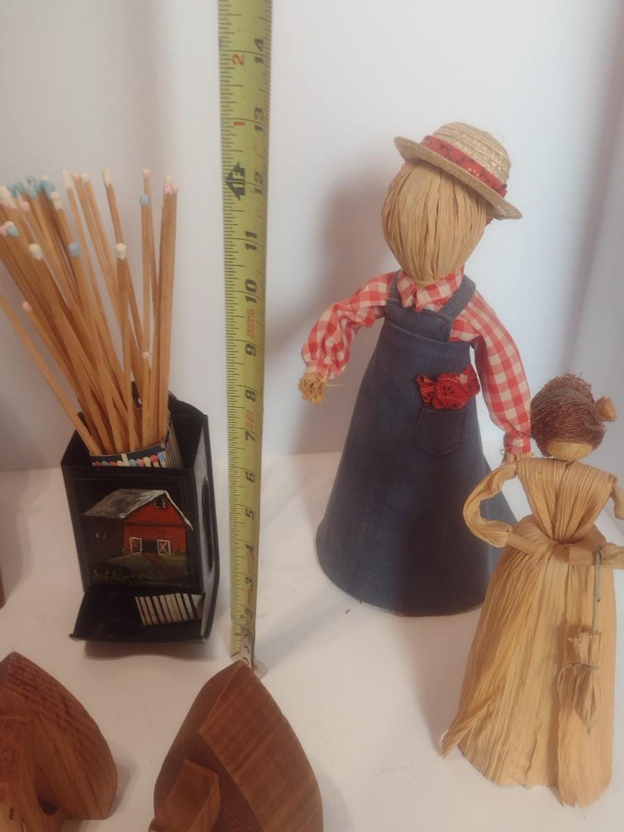 Assortment of Rustic Home Decor Items Includes Corn Husk Dolls and Other