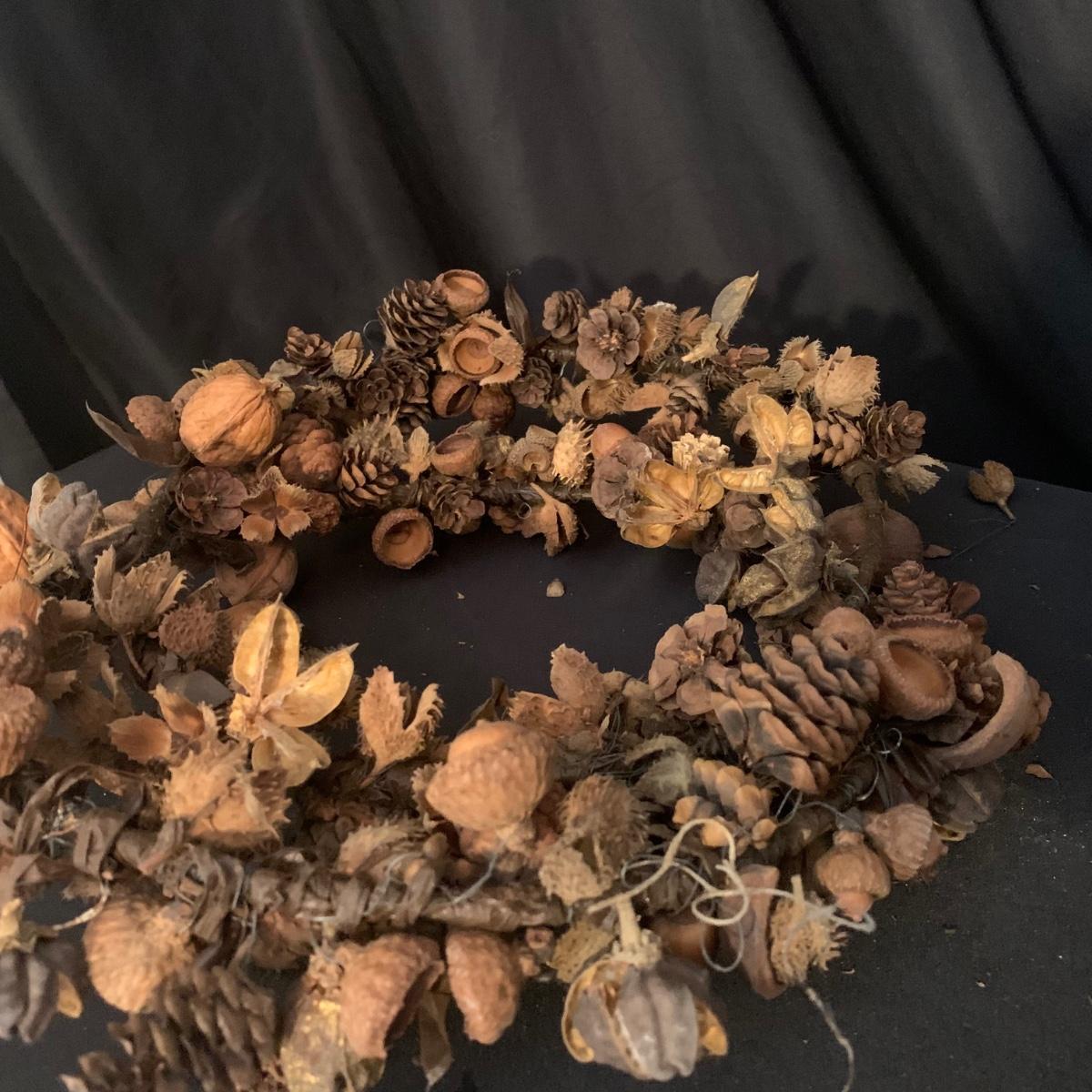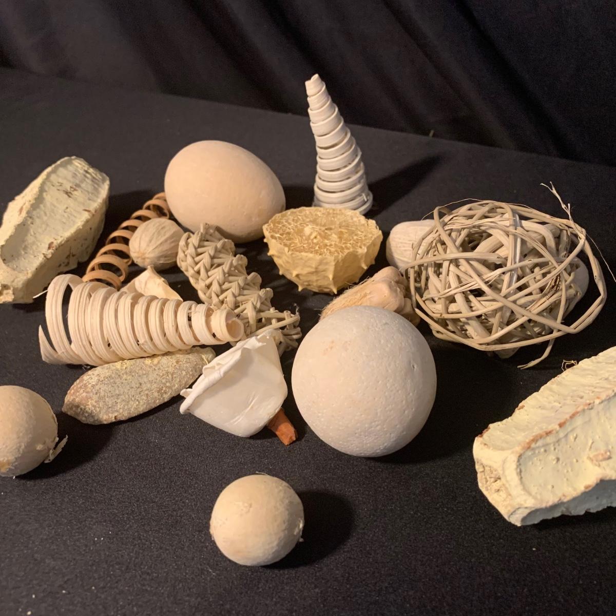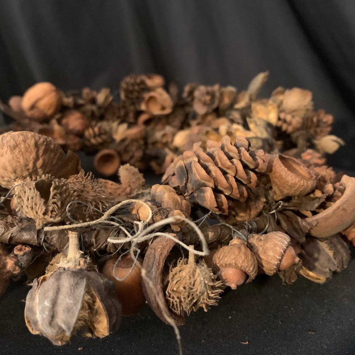 Large assortment of vase fillers. Includes pinecones, sand, pebbles, glass gems, glass marbles, various mosses, stones, various nuts, pot pourri, leaves, and more! Some items remain unopened, however most items come from nature and remain in their natural state and good condition. Lot also contains a wreath made of pinecones, dried flowers, etc. These items are useful for crafts, household decor, and more!