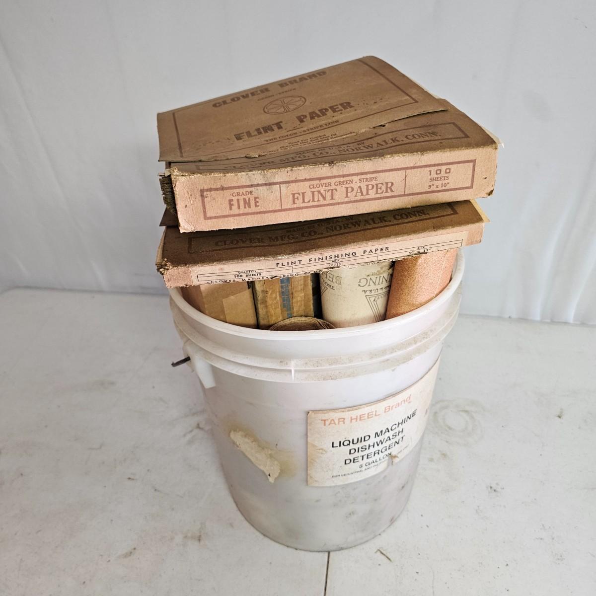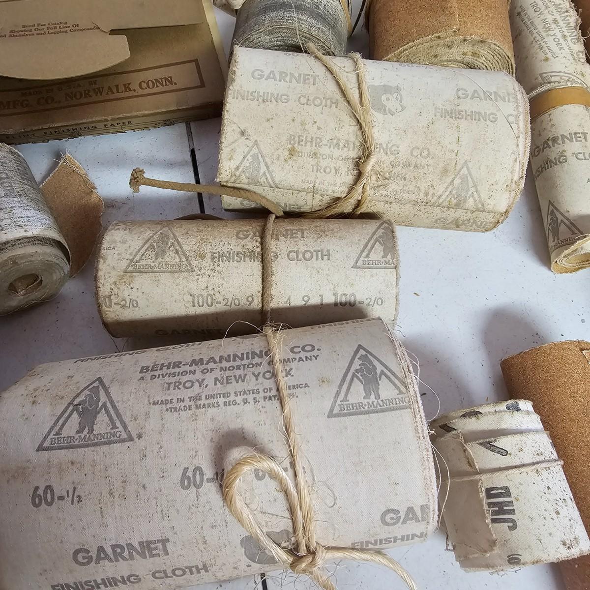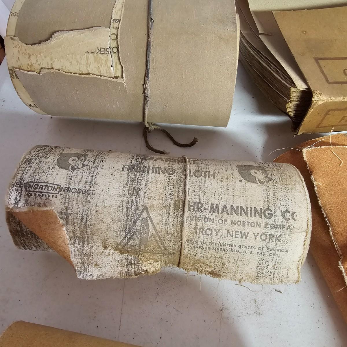 Several different grits, types of sanding paper, cloth & rolls. Grits range from 60 to 500, lots of finish items here. Roll size is 2.5" to 15" in width, no determination on length of items. Over 15 pieces plus boxes. See photos for details. Shipping available.