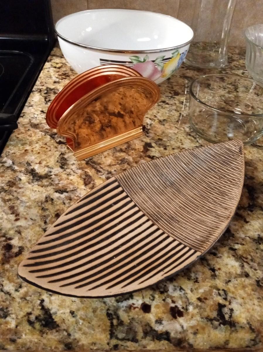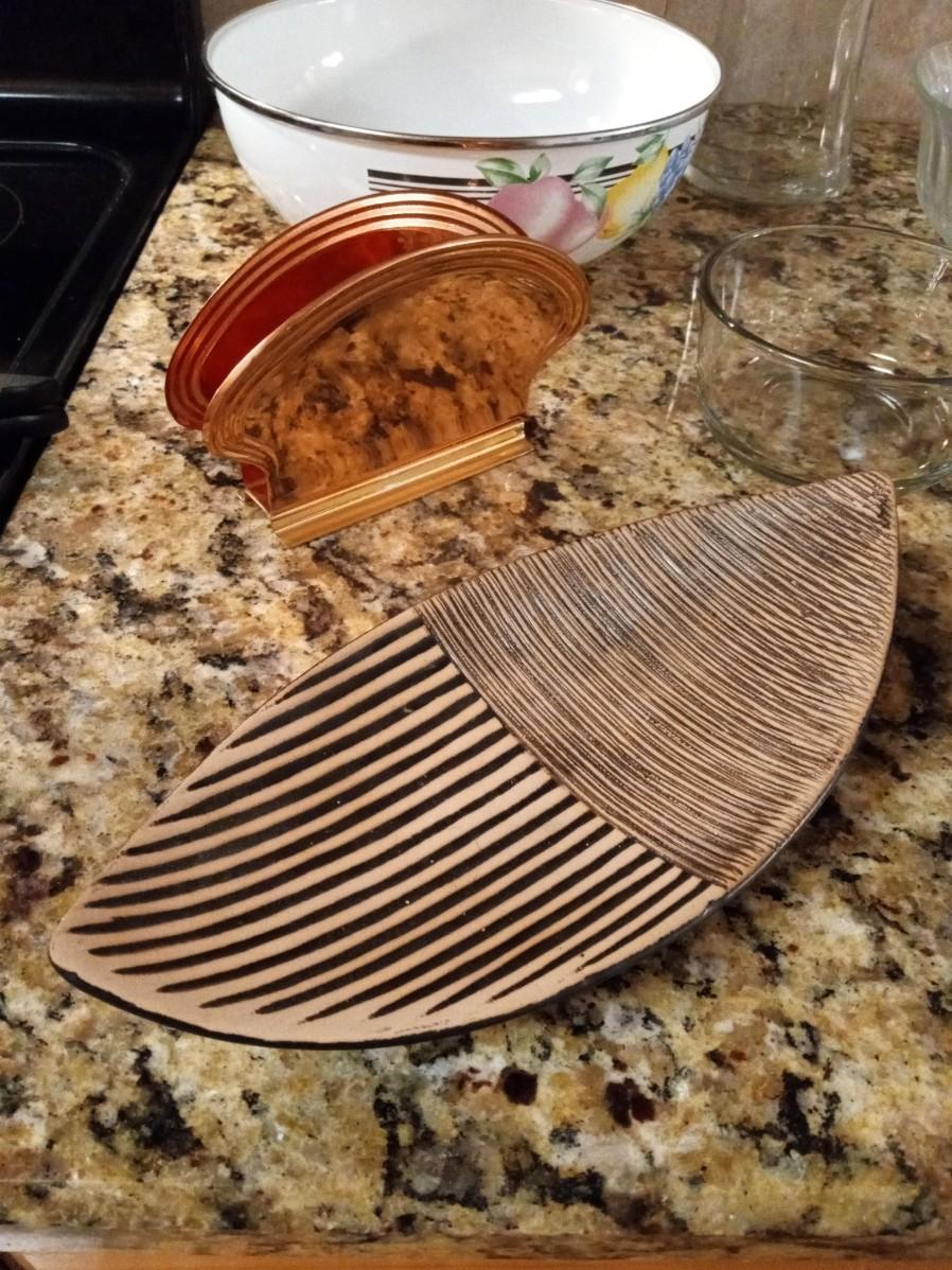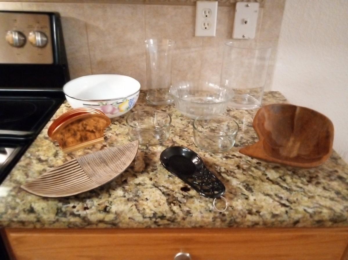 ASSORTMENT OF SERVING DISHES AND CAST IRON SPOON REST