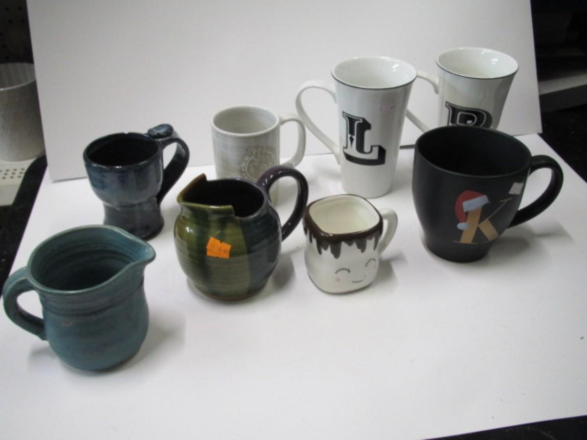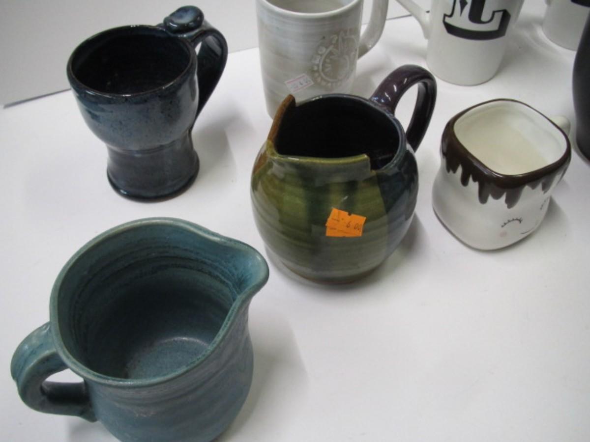 Assortment Of Signed Ceramic & Pottery Stoneware Mugs Creamers