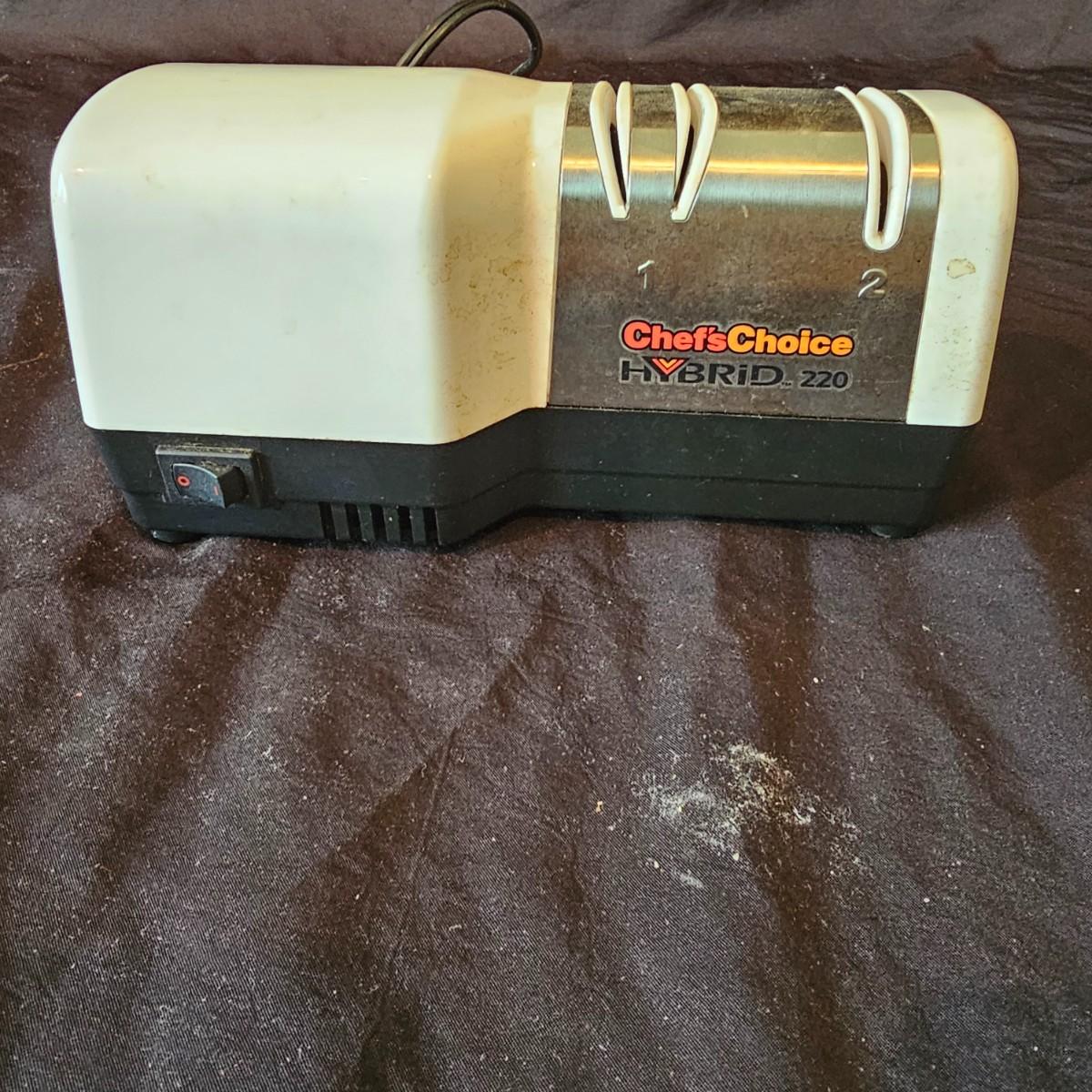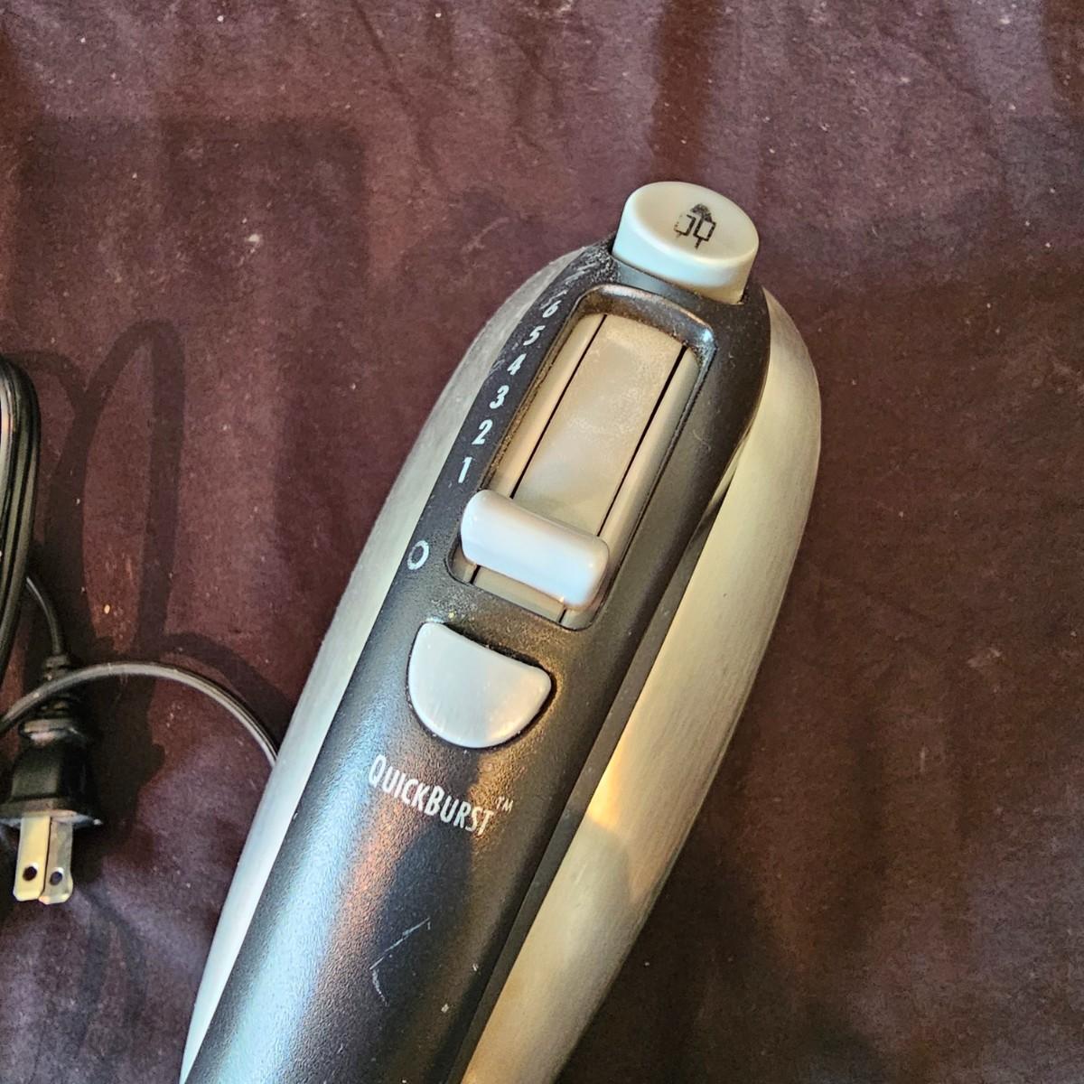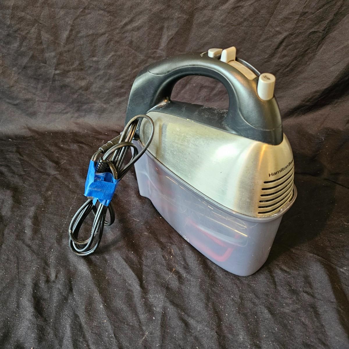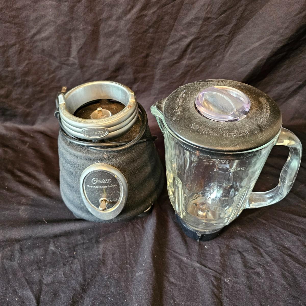 Several handy small appliances for kitchen use. A blender, coffee mill, knife sharpener, hand mixer and more. Oster blender is 7.5"D x 15.5"H, knife sharpener is 7.25" x 3" x 3.5"H. Black & Decker can opener/knife sharpener is 5" x 6" x 9"H. All items powered on when plugged in. See photos for details. Shipping available.