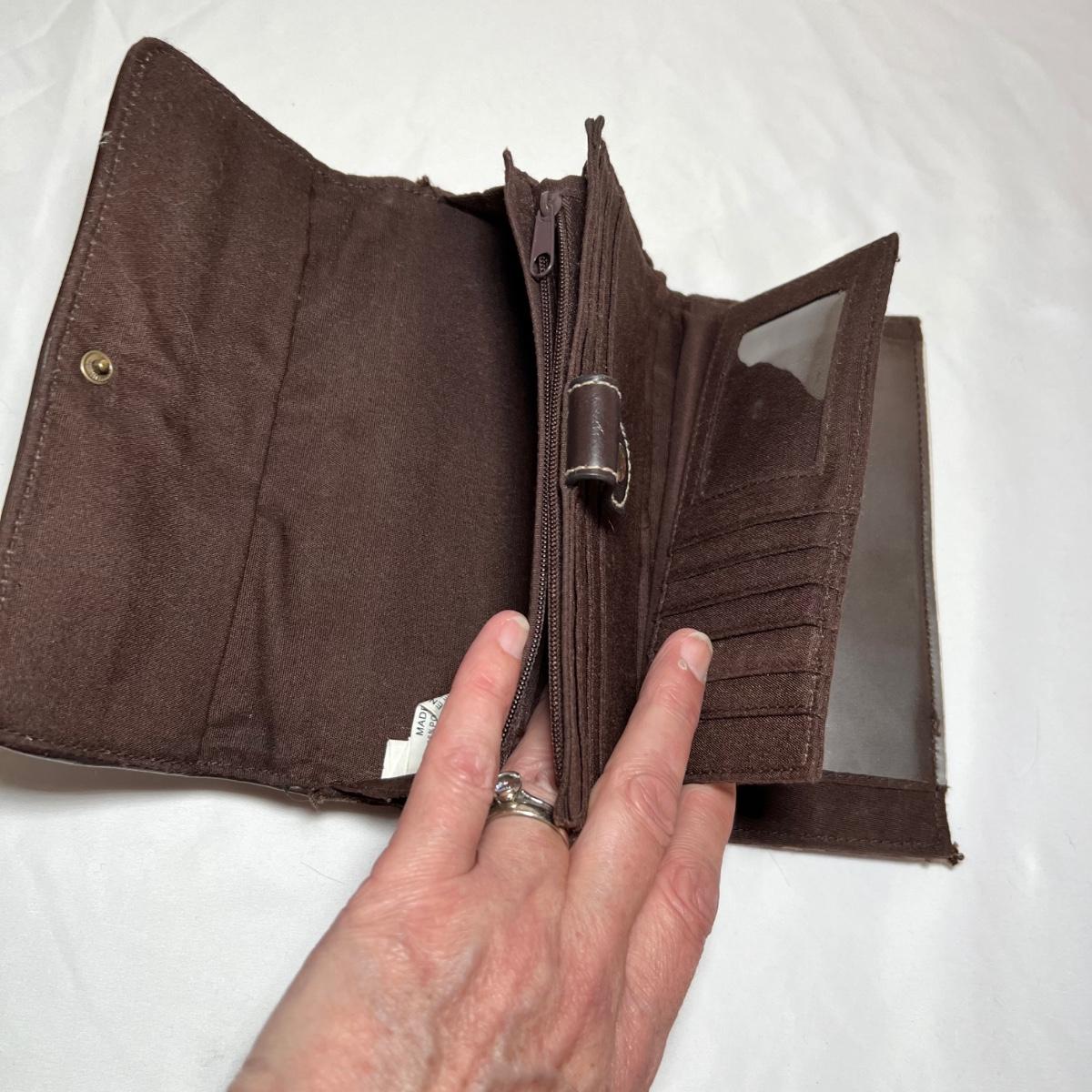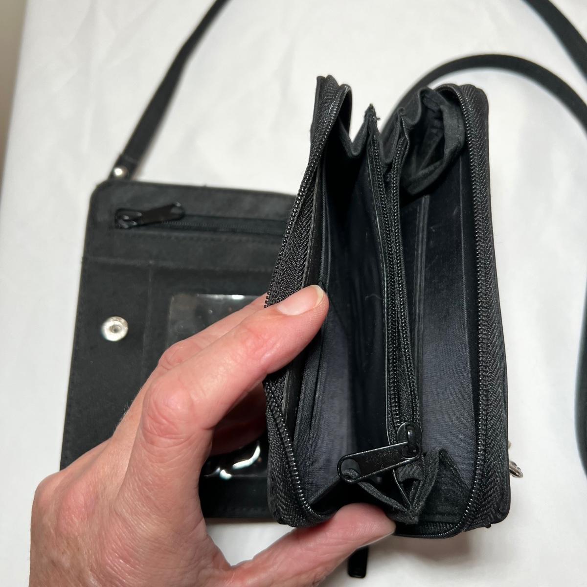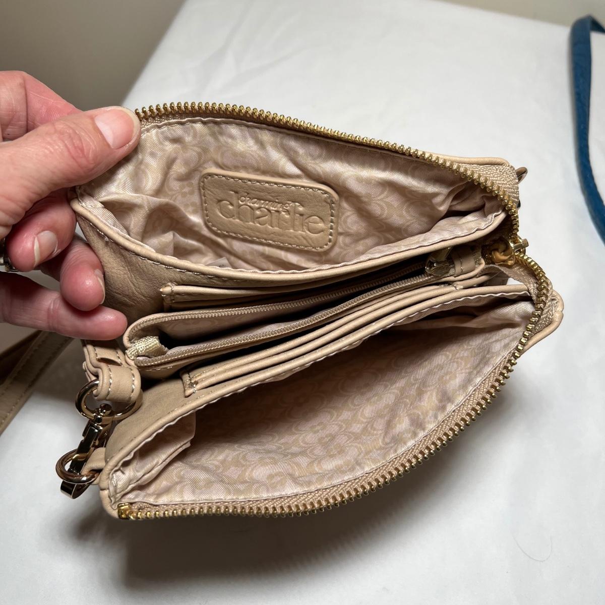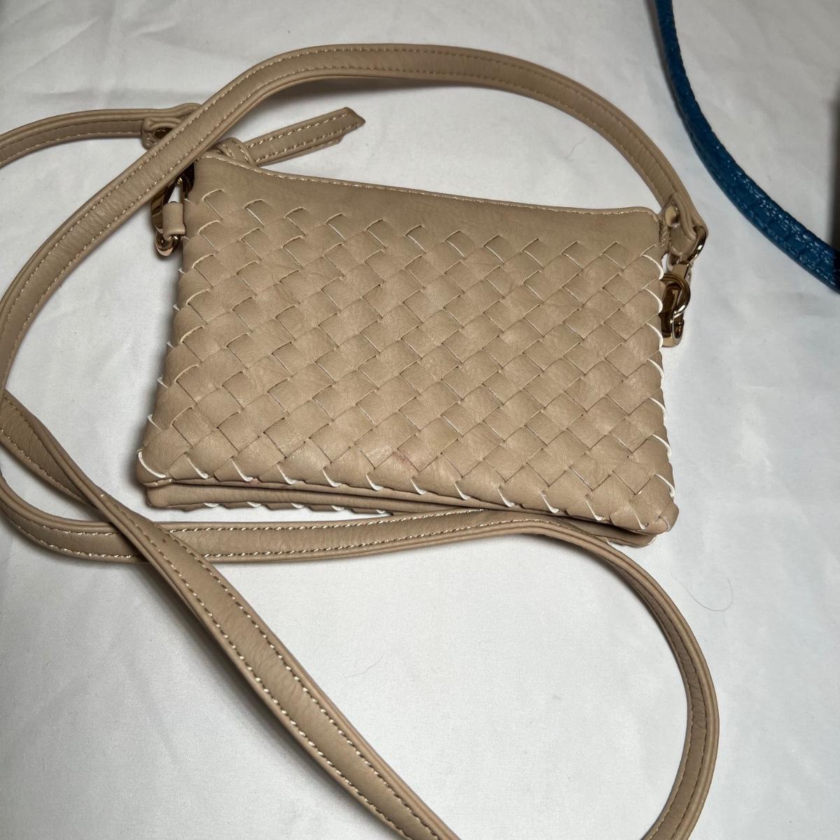 These 4 small shoulder purses are ideal to carry your essentials in, most of which have wallets built into them for easy organization. The tan and grey purses are Charming Charlie, black one is Buxton, blue is unmarked and the brown wallet is from Target.
