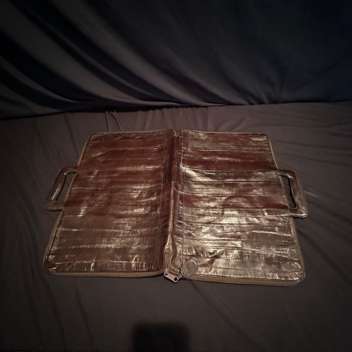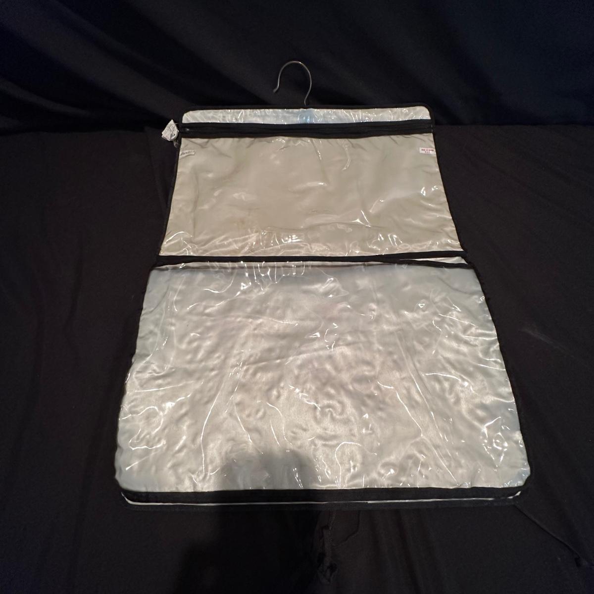 Sturdy Size Ormand Protection Portfolio measures 16” X 5” X 13”H and stylish Joy Mangano weekend and carry on bags and a Gucci tote. Slim zip up carrying case appears to be leather with suede lining. Casual Saks 5th Avenue bagand hanging lingerie carrier. Shipping available.