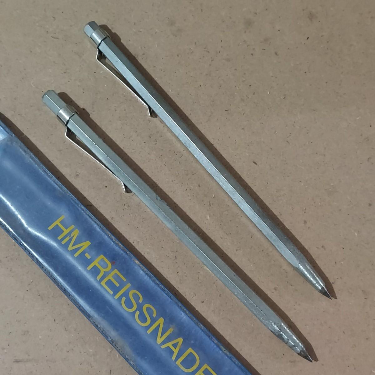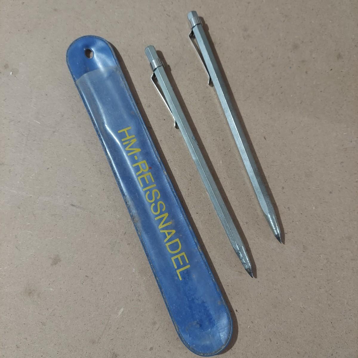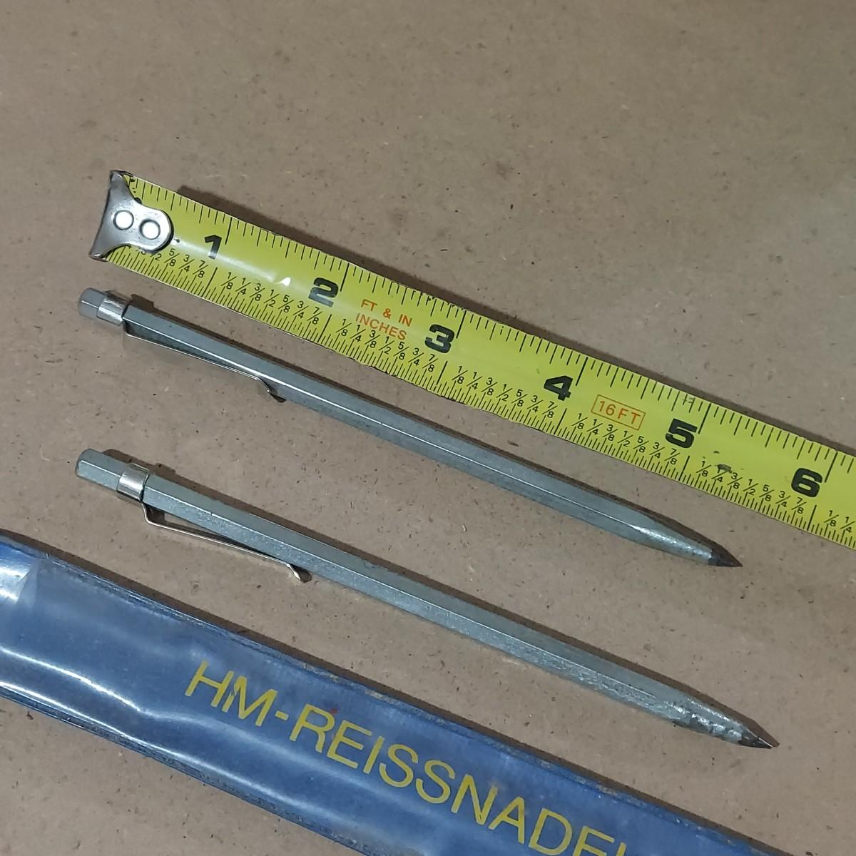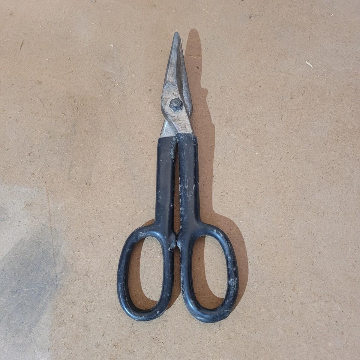 Assortment of 4 different tin snips, a "pop" rivet tool and two metal scribes. Brands include Workpro and USM. Snips range in size from 9" to 10". Scribes are approximately 6" long.