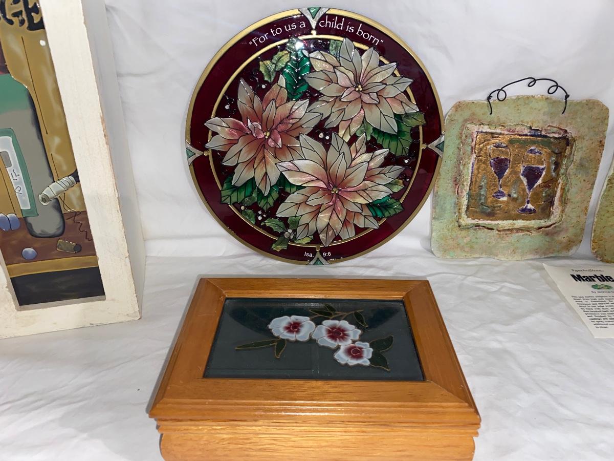Assortment of Stained Glass, Wall Art, and Home Decor. All preowned and sold as is