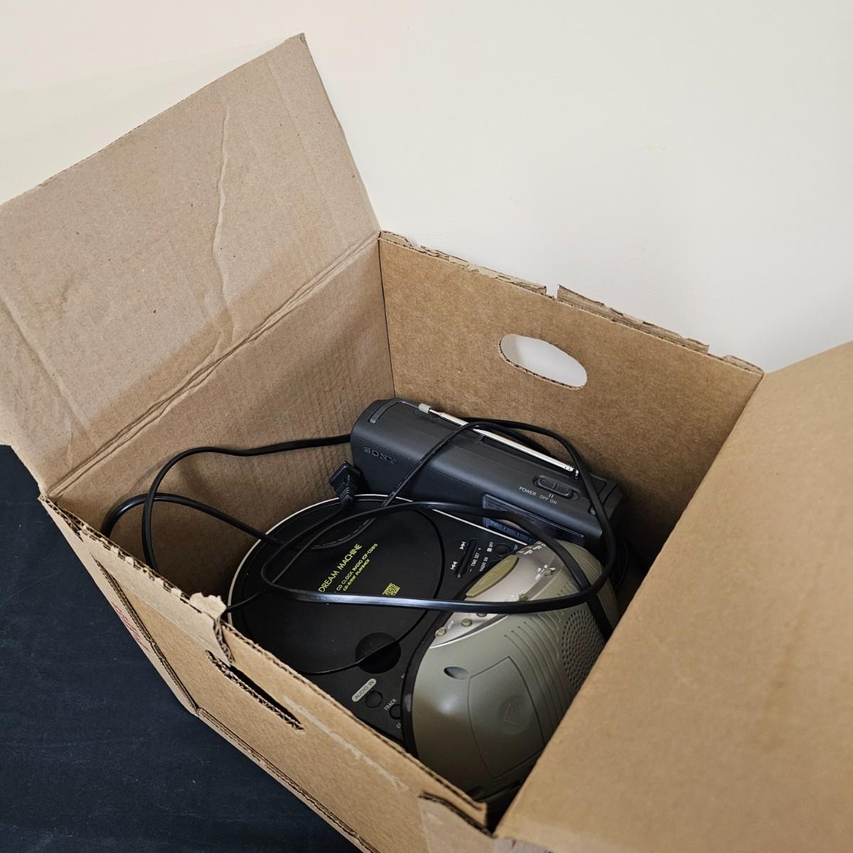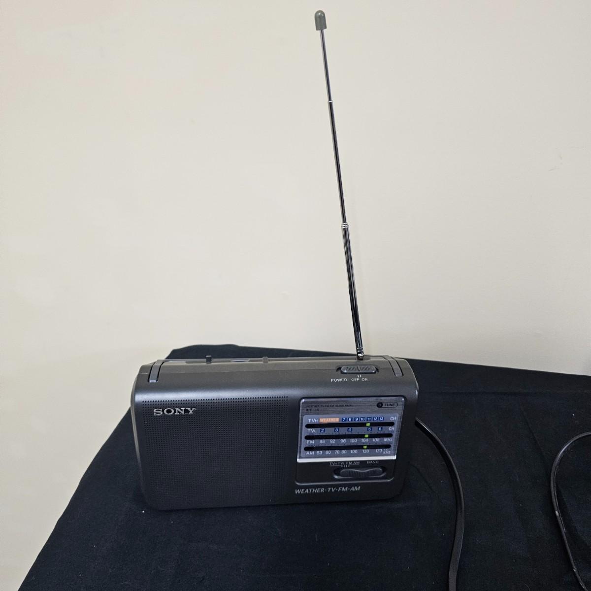 Two Sony and one Magnavox small click radios/weather station and more. Large Sony iyem measures 8" x 9" x 4"H, has AM-FM CD player and alarm settings. Sony weather radio is 9" x 2.5" x 5"H, does AM-FM and TV bands. Also battery power, not tested. Magnavox clock radio is 9" x 3" x 4.5"H, will also run on battery, not tested. All electric items powered on when plugged in. CD player not functional. See photos for details. Shipping available.