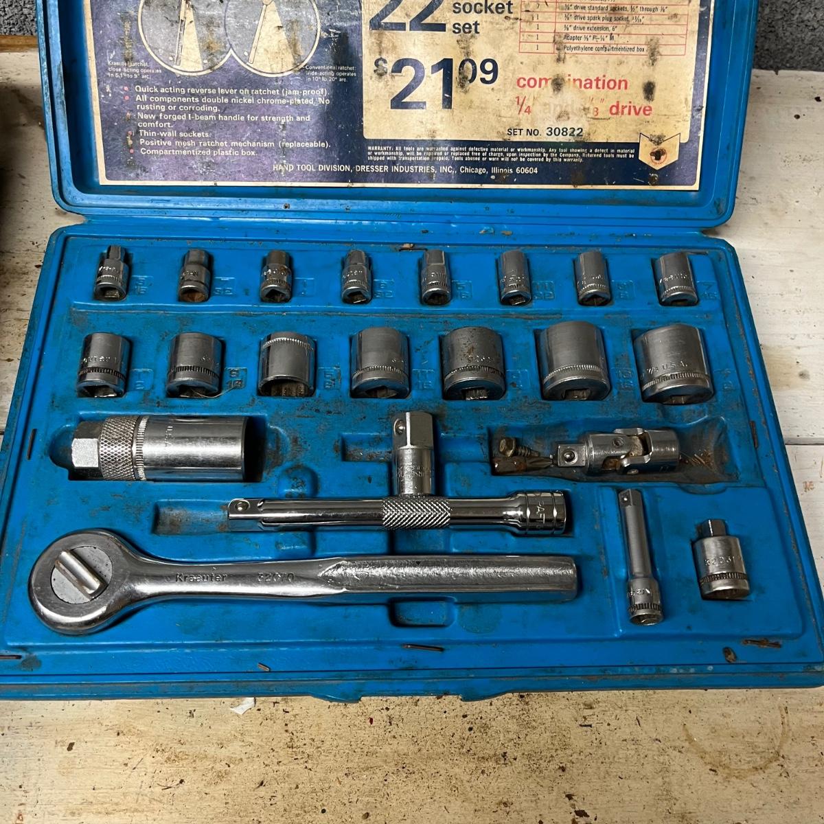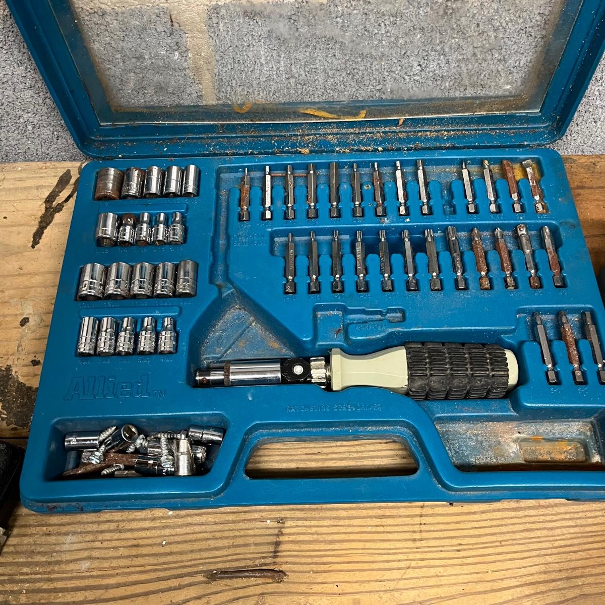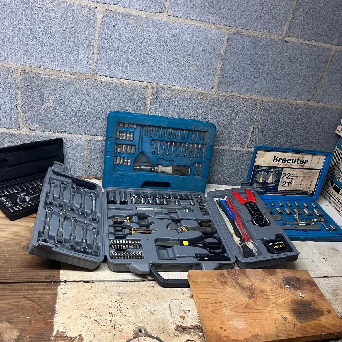 Lot includes a 69 piece tool set, 22 piece tool set, 40 piece socket set and a 53 piece ratcheting screwdriver set. Some sets missing one or two pieces.