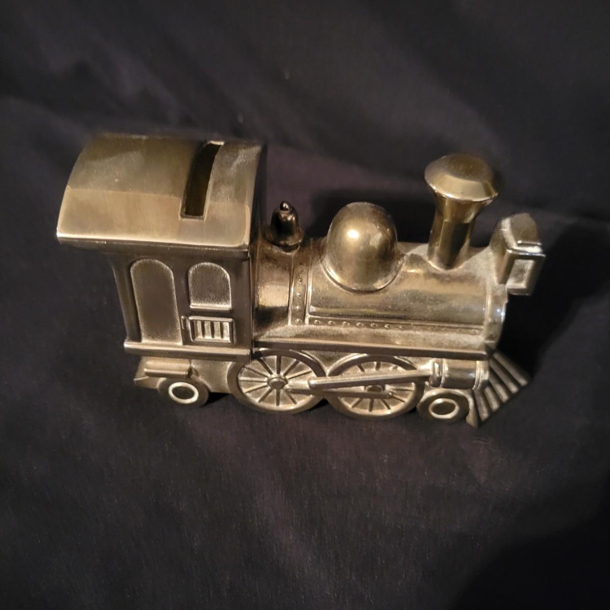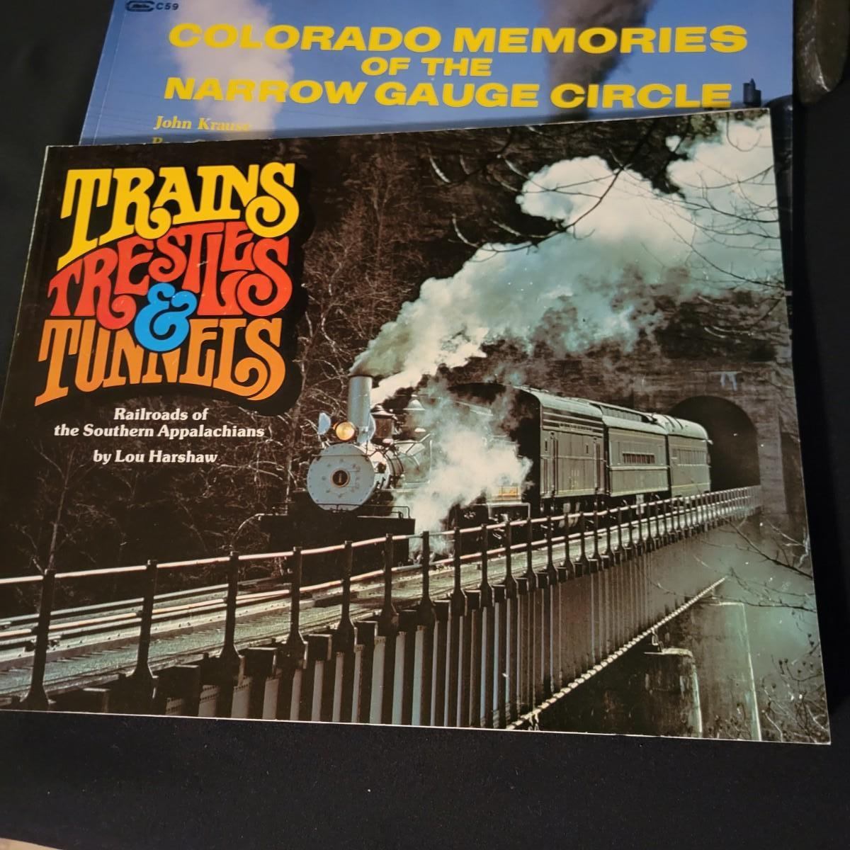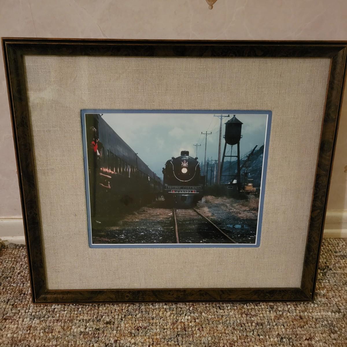 An assortment of train books and decor items. Included are seven books on a variety of train subjects, a steel rail spike, a metal locomotive bank, a train clock and a framed train print. The clock will need new batteries. The framed print has a double mat and wooden frame with a dark stain and measures approximately 17" x 15"H. Shipping available. Shipping can be costly. We suggest contacting our preferred local shipping provider, Postage Express, with dimensions and getting an estimate before bidding: (828) 670-5501 or postageexpress@yahoo.com.