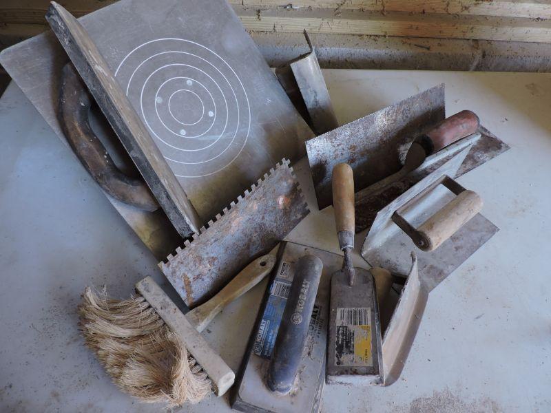 Assortment of Trowels. Please read Terms and Conditions before placing a bid. Pick up is Friday, October 25th between 4 and 7, and Saturday, October 26th between 9 and 1. Please bring boxes, tools, and muscle to help move your items. Props included in photos are not included in listing. All measurements are approximate.