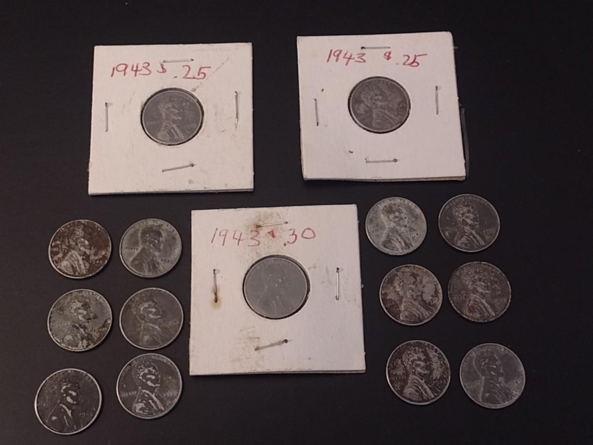 Assortment of U.S. Mint 1943 Steel Lincoln Pennies Circulated (#35)