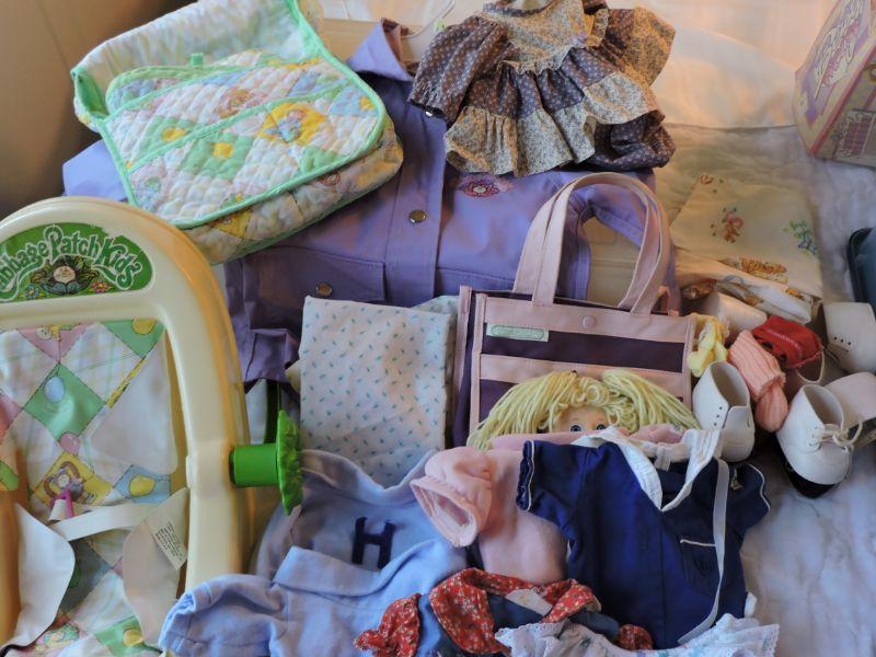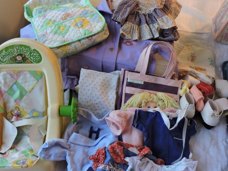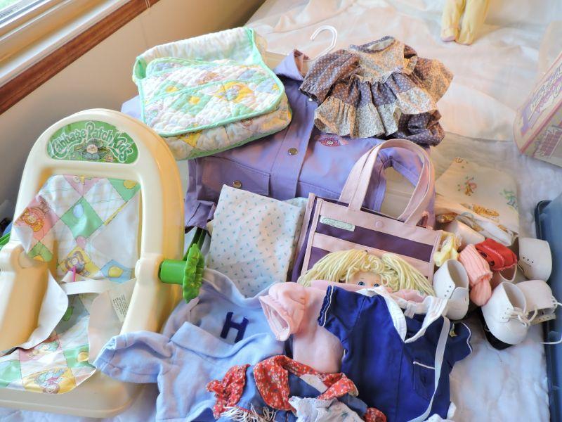 Assortment of Vintage Cabbage Patch accessories. **Please read Terms and Conditions before placing a bid. Pick up is Sunday, September 15, 2019 from 11am to 4pm and Tuesday, September 17 from 4pm-7pm in Sicklerville. All sales are final. All sales are as is, where is. Please review all photos. Any props included in photos are not included in listing. All measurements are approximate.