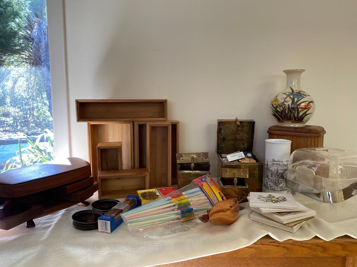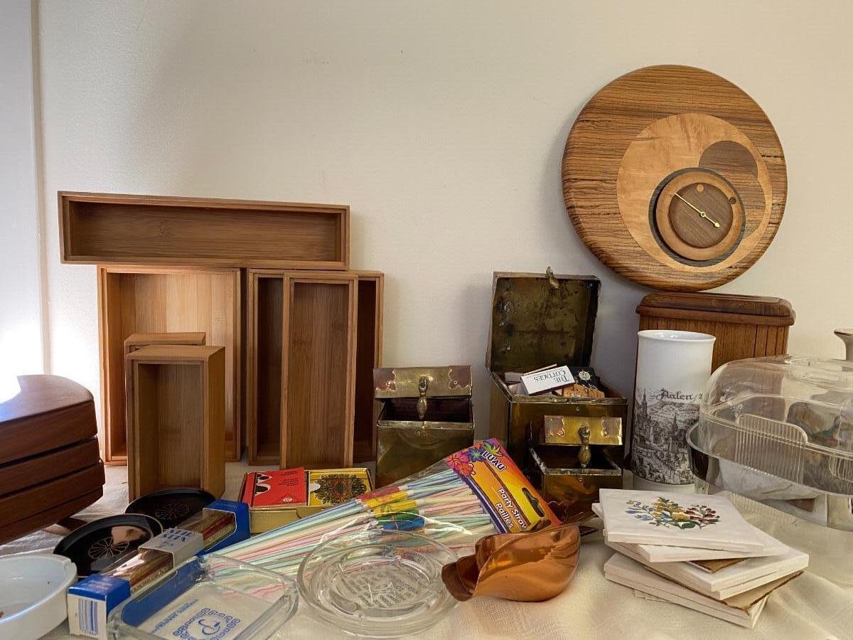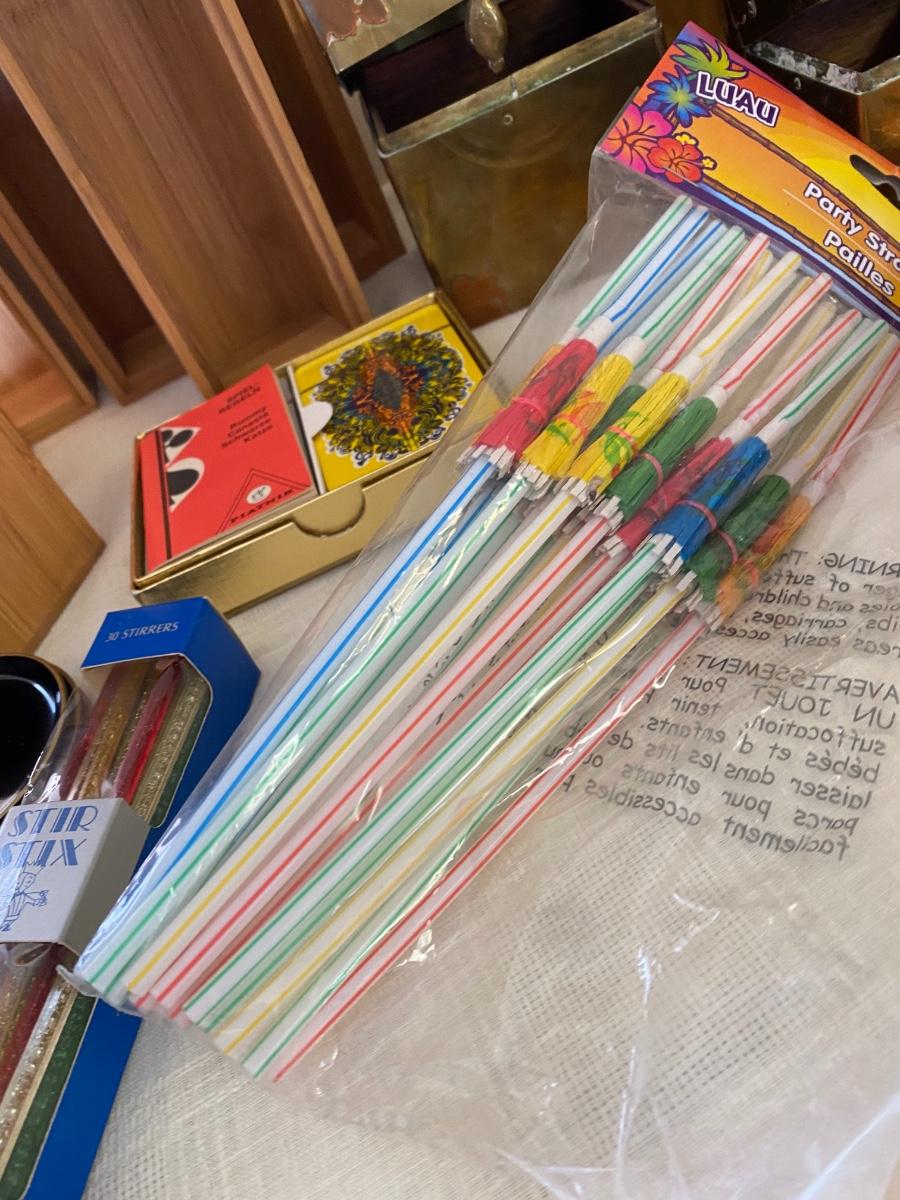 Includes Vintage Club, ice buckets, coasters, vintage ashtrays, playing cards anymore. In kitchen in big box under island.