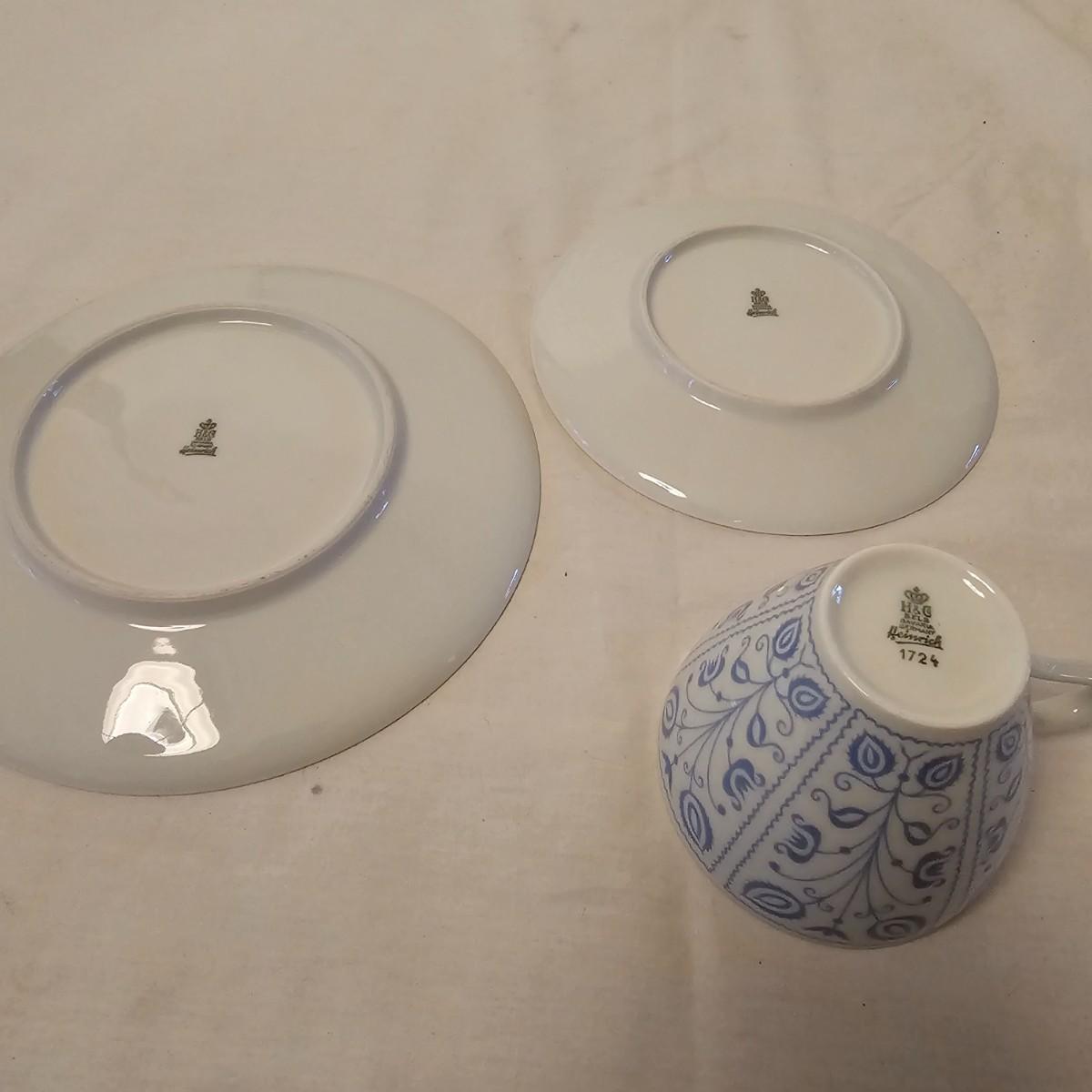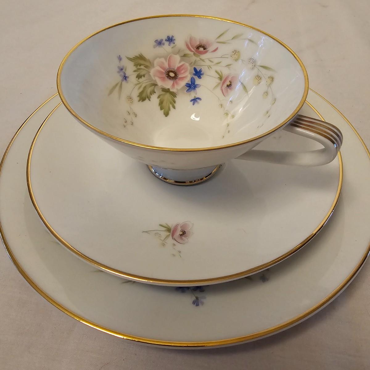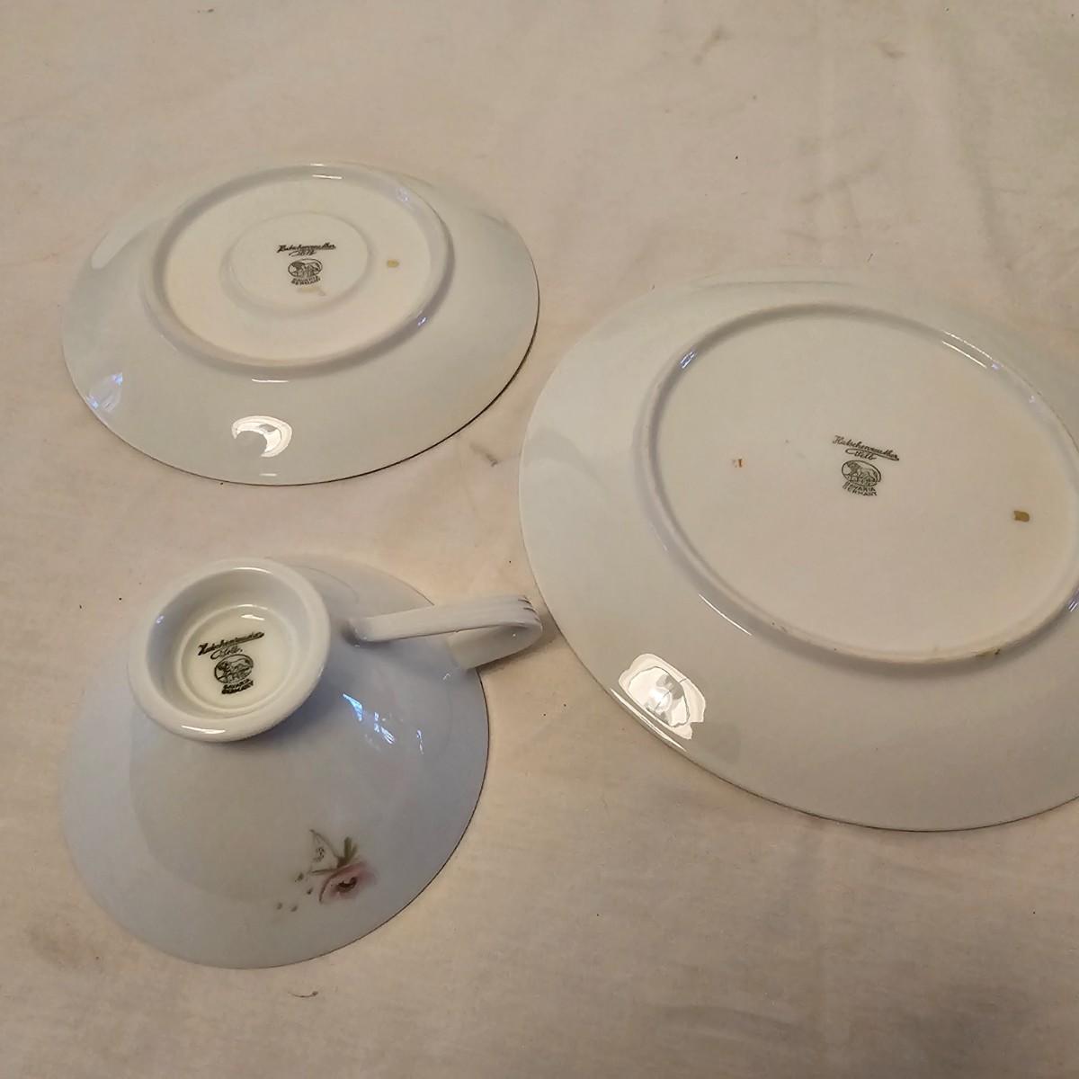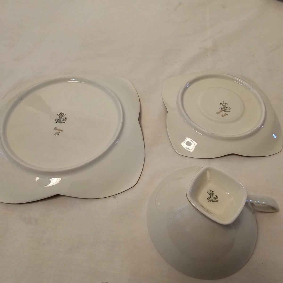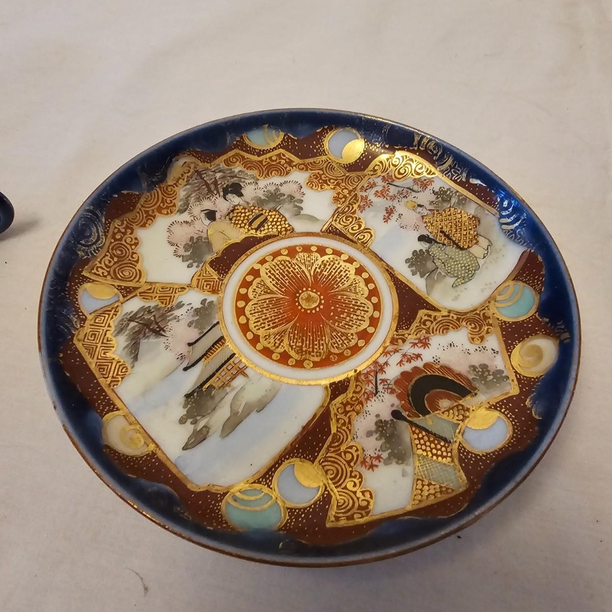 Eleven delightful combos of cup & saucers. Most items hand painted, many from Bavaria and England. Saucer diameters range from 3.5" to 7.5". Small petite cups and handles in numerous patterns and colors. Some slight cracks and other blemishes visible upon close look. Also includes four display stands for cups and saucers. See photos for details. Shipping available.