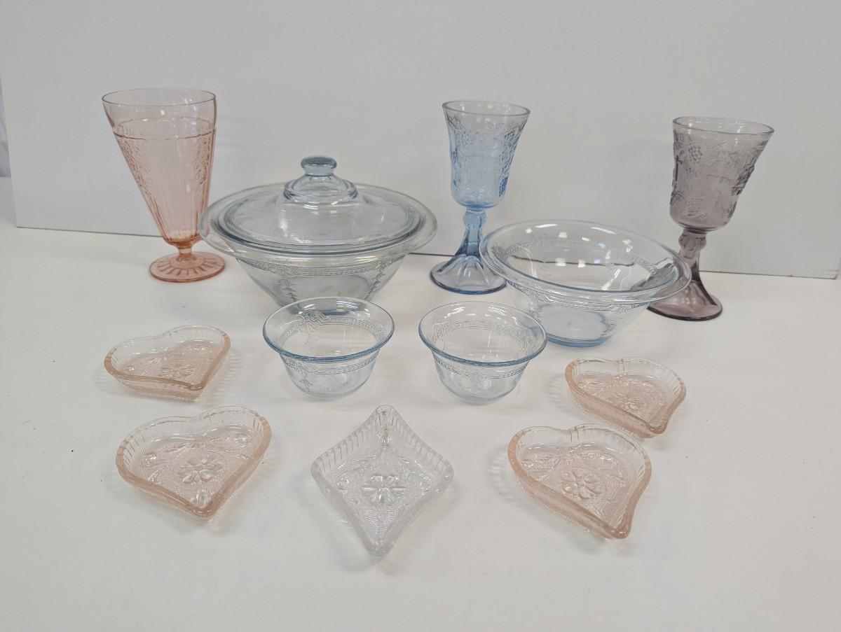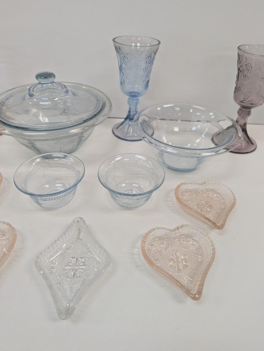 Assortment Of Vintage Depression Glass Fire King Last Supper Glasses Tiara Glass